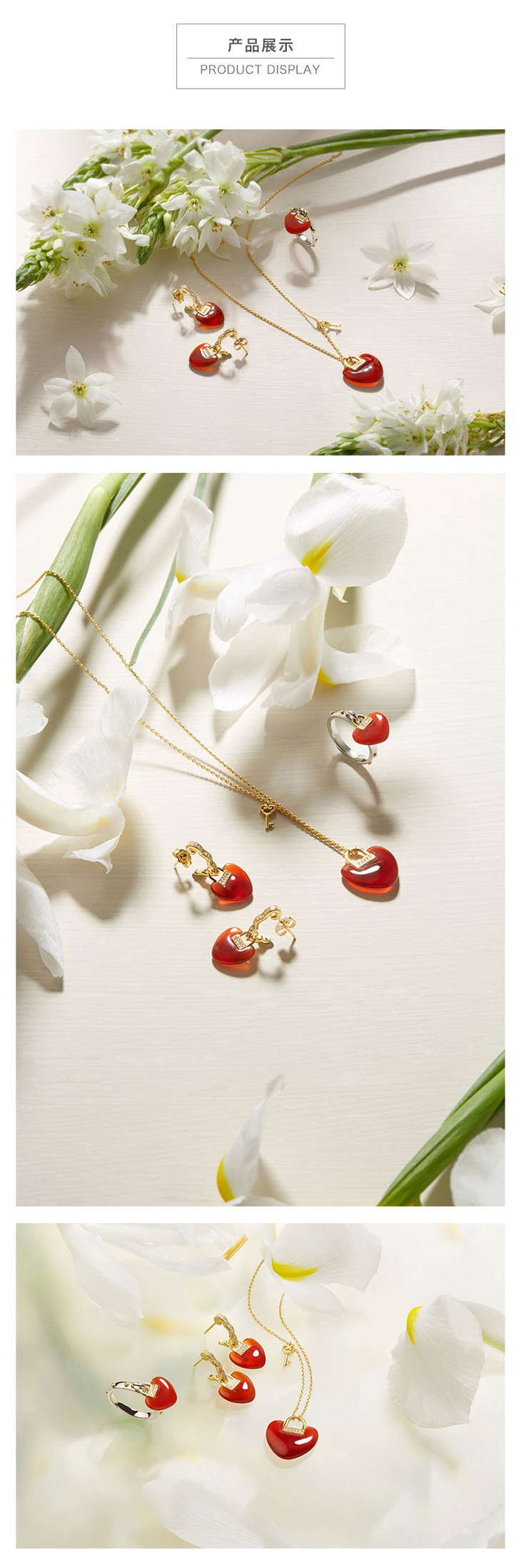 材质:925银镀金、红玛瑙、5A级白锆石
