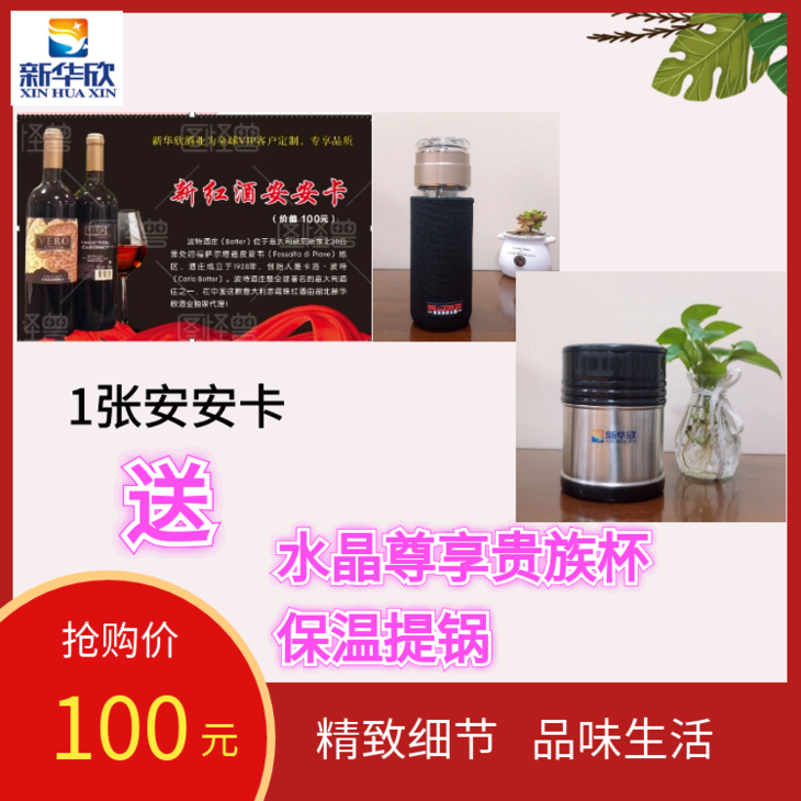 商品详情:1张安安卡送水晶尊享贵族杯,保温提锅!