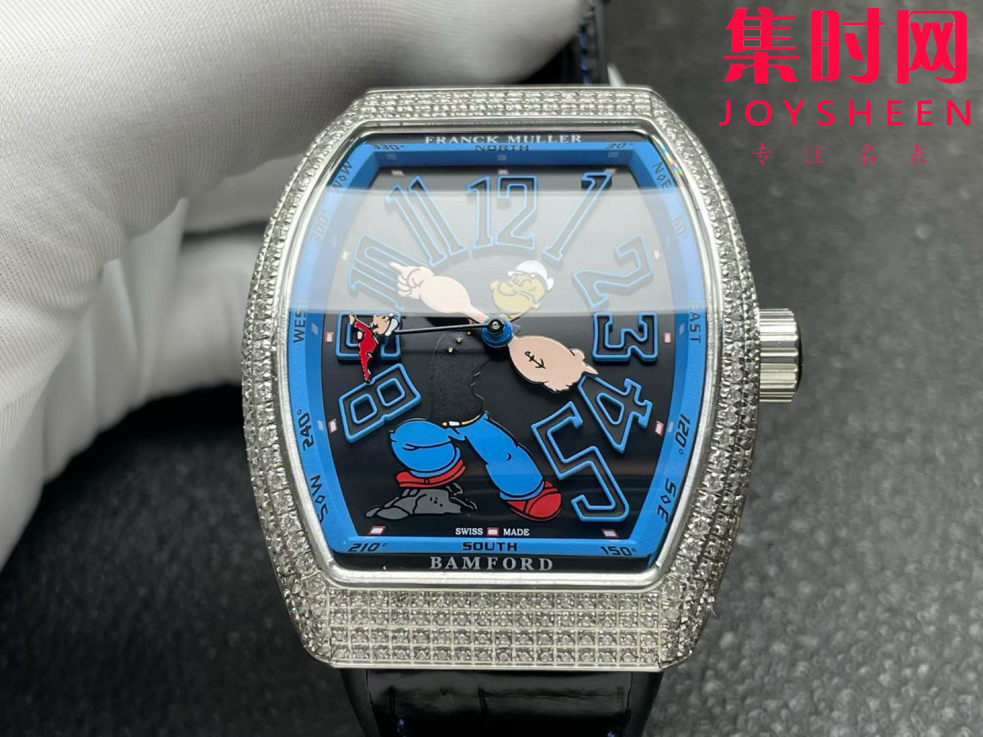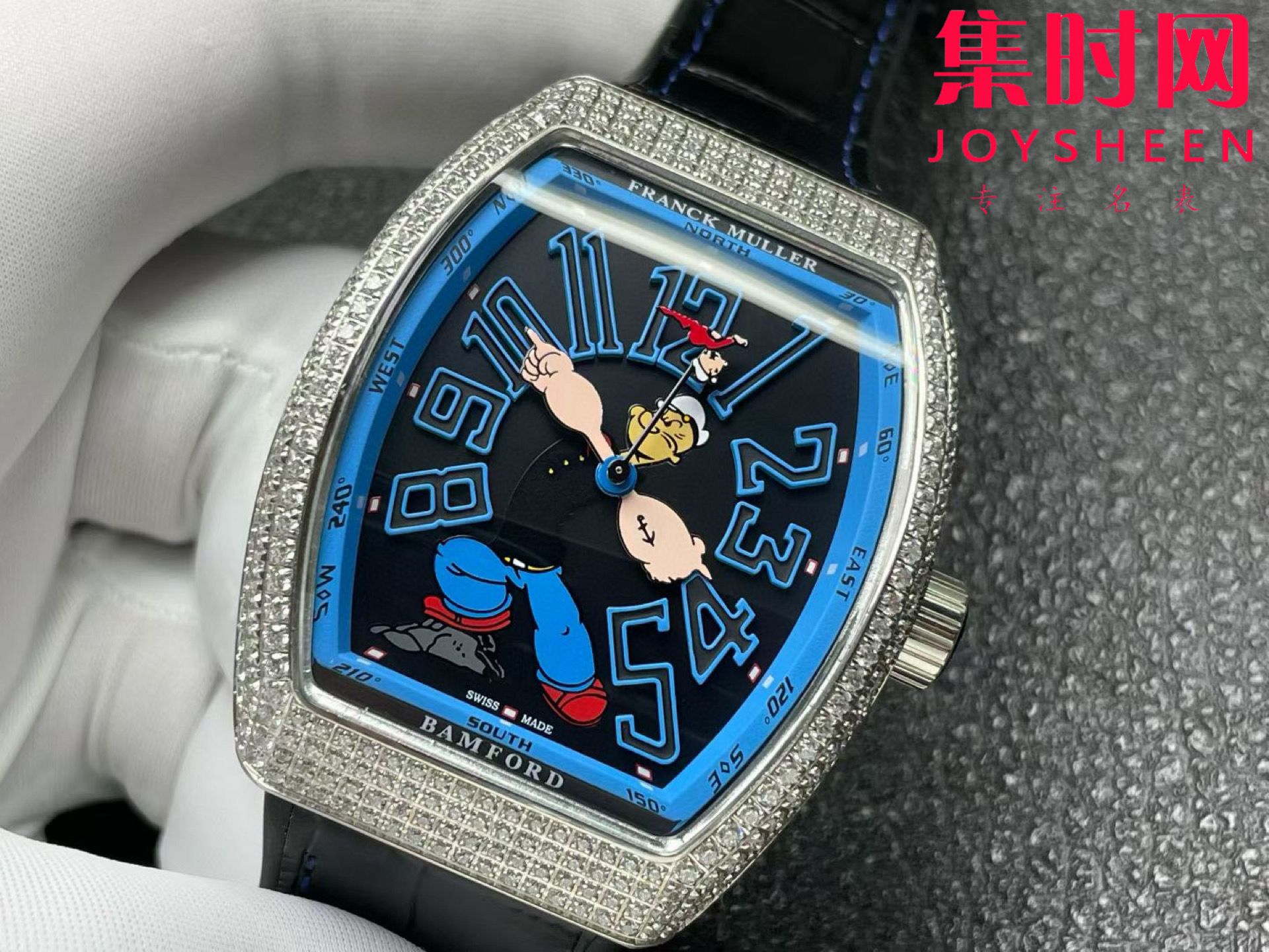 ABF法兰克穆勒 法穆兰 新款Vanguard系列 V45游艇系列"大力水手"男士腕表 以大力水手波派的强壮双臂充当时分指针,以波派和奥利弗的儿子贝比作为秒针,在表盘上"爬动",简洁和创新的美感,超凡脱俗。