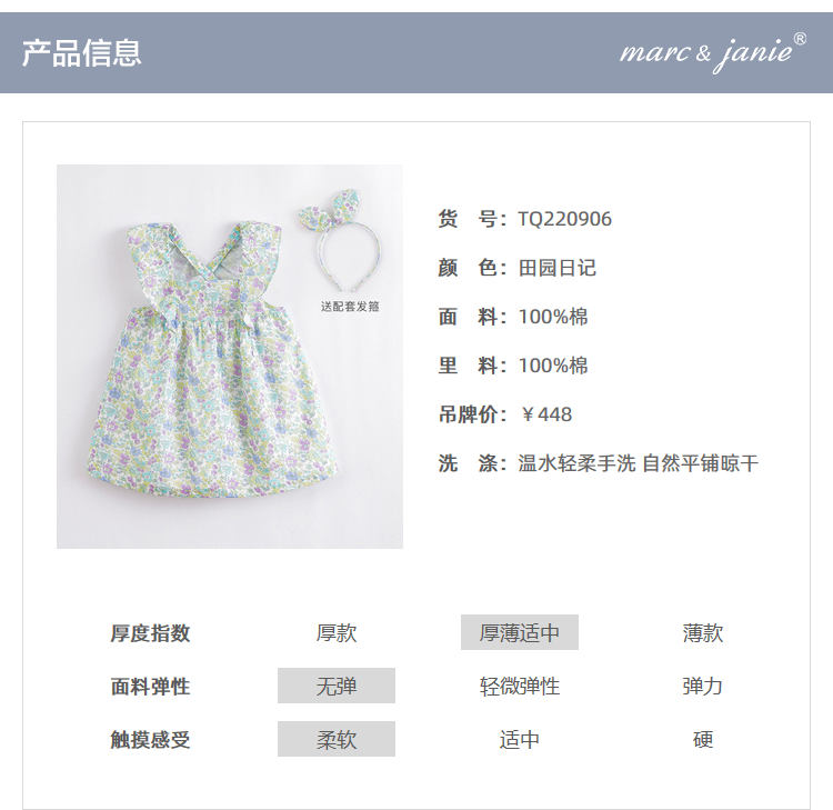 马克珍妮夏装新款 女童舒适全棉田园印花吊带裙220906