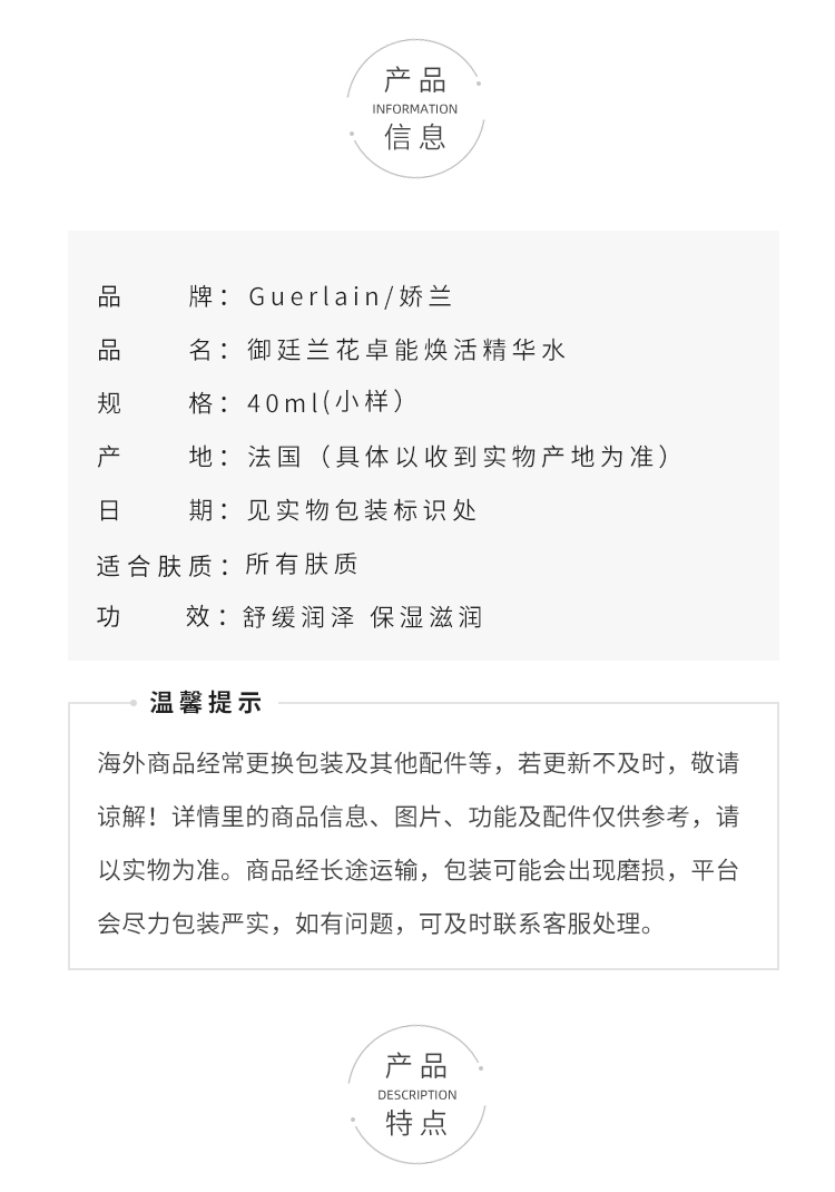 娇兰御廷兰花卓能焕活精粹水 保湿滋润提亮肤色 兰花水40ml中小样