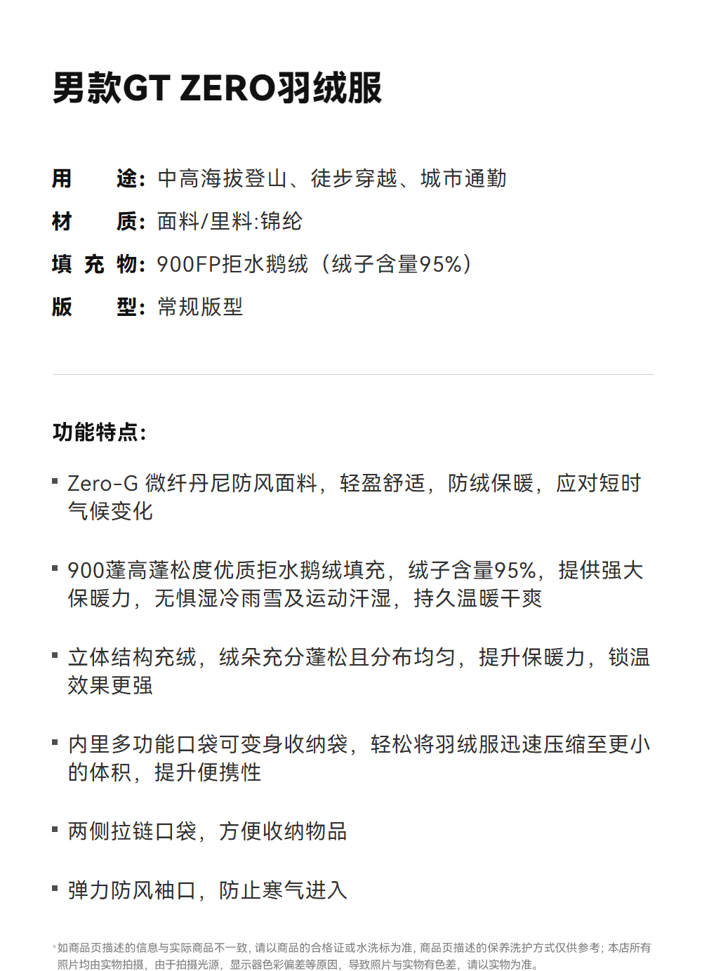 KAILAS凯乐石 户外运动 男款GT ZERO羽绒服 KG2443138【Z】