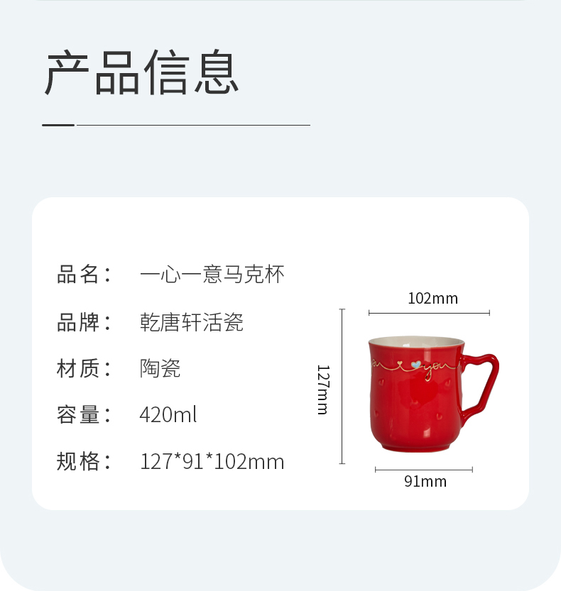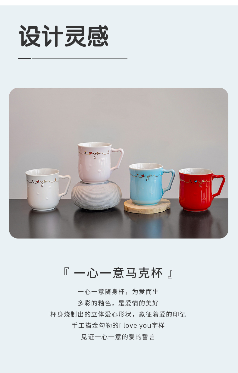 一心一意马克杯420ml情人节七夕节送礼礼品带礼盒