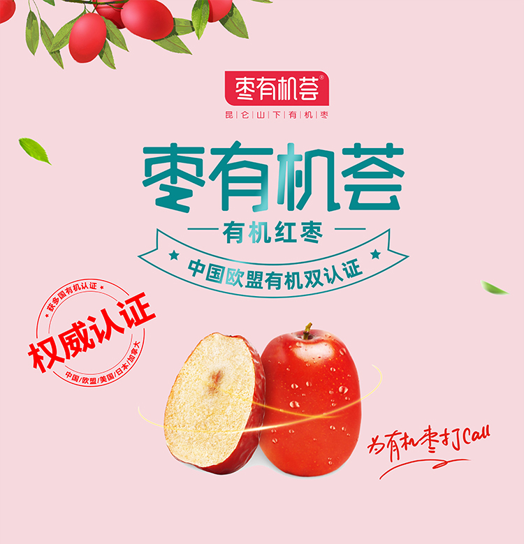 臻如意枣有机荟||有机红枣208g免洗一级红枣吊干灰枣即食超甜有机认证食品