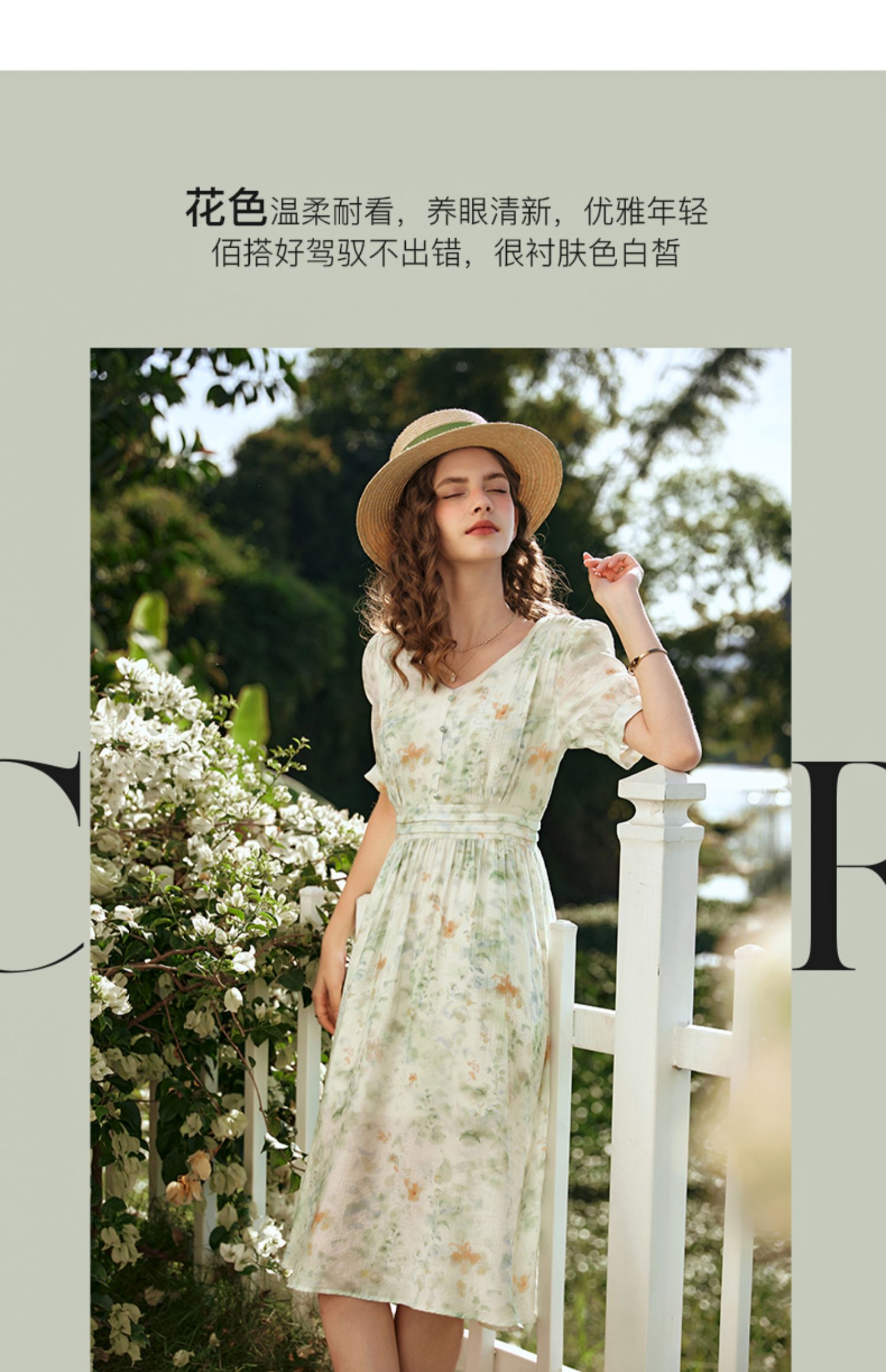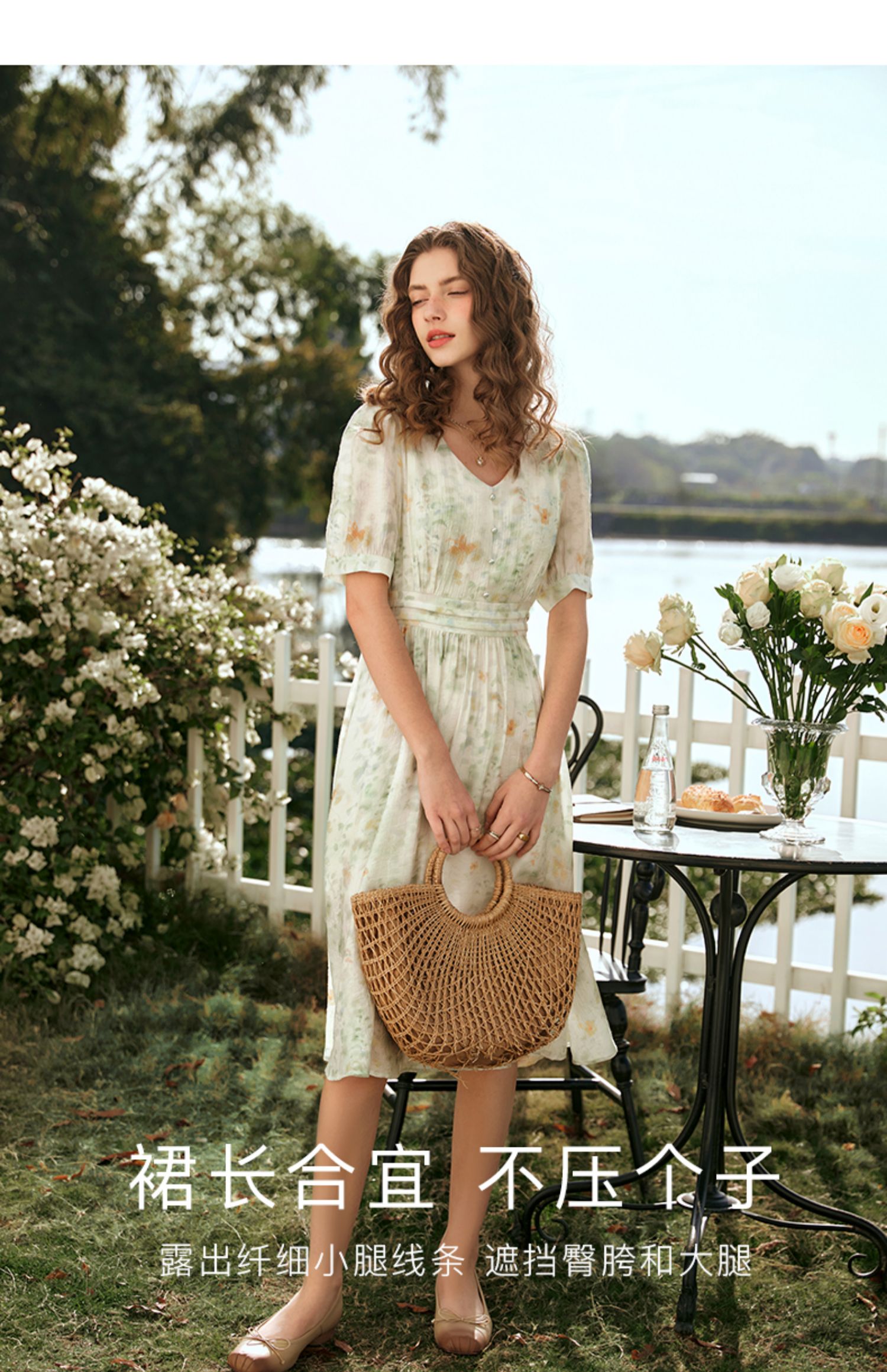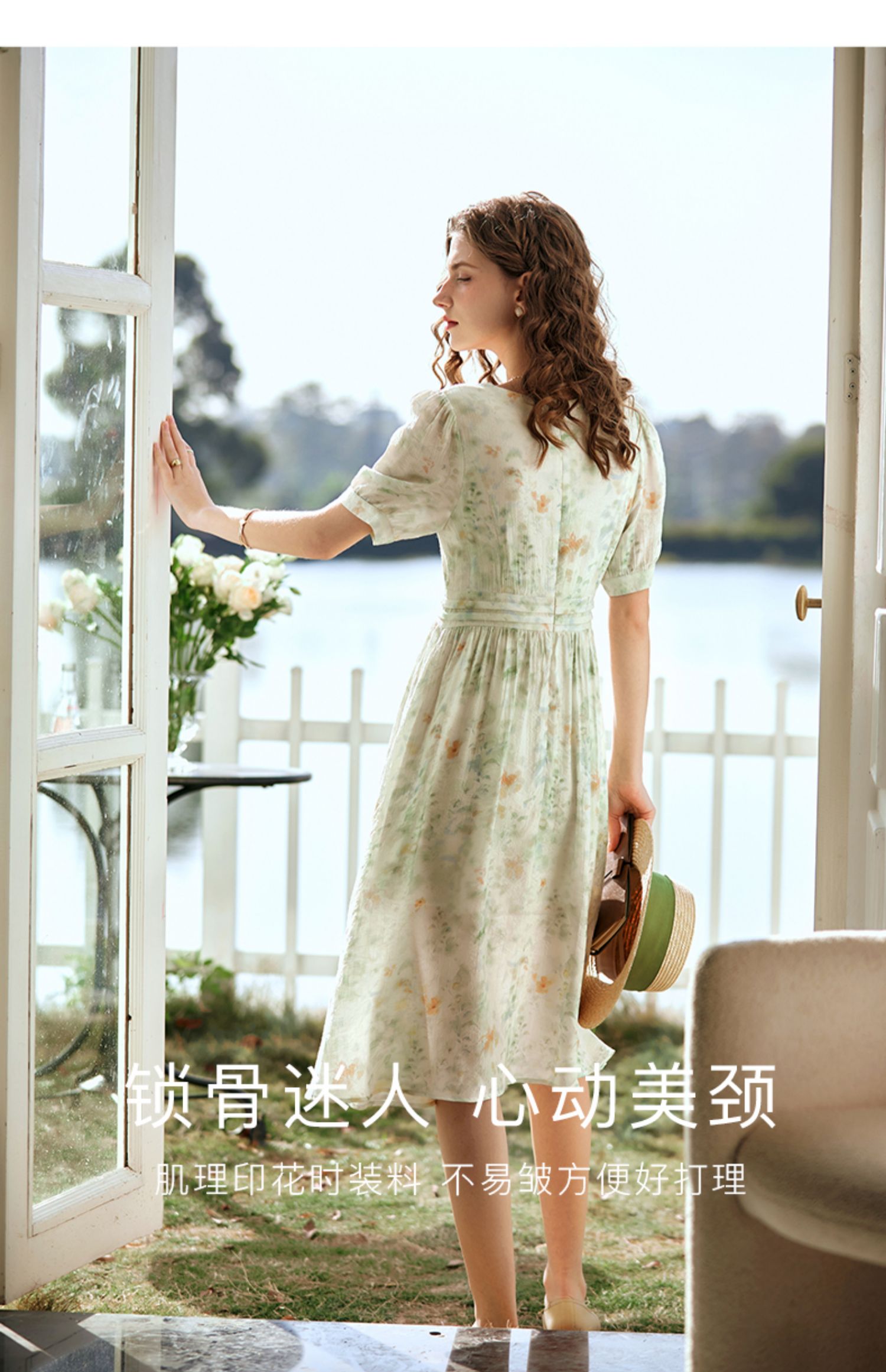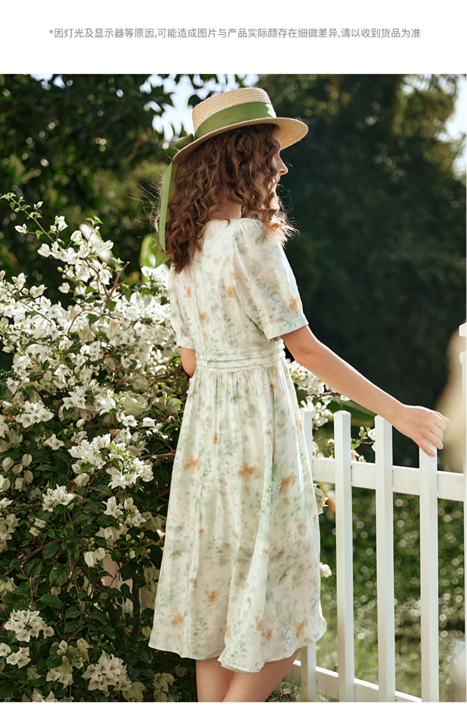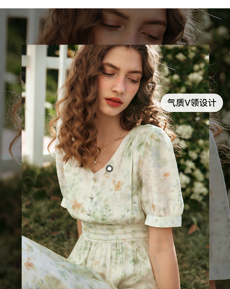 OLrain欧芮儿法式碎花连衣裙女早春2024年新款小清新显瘦收腰长裙