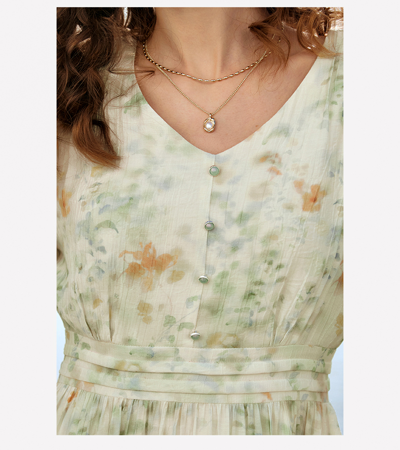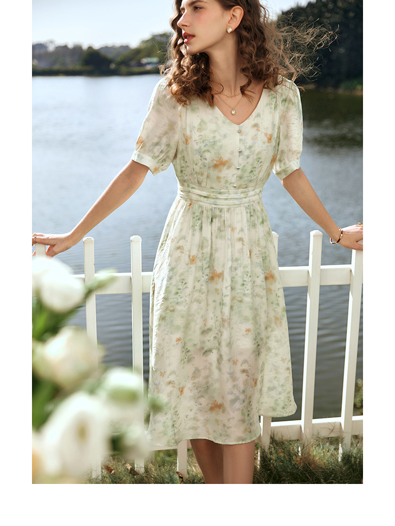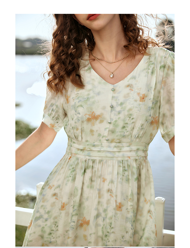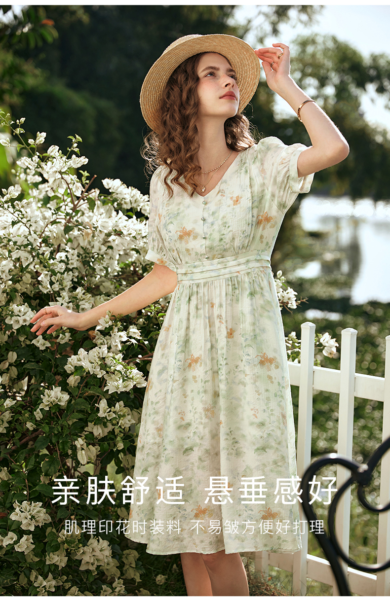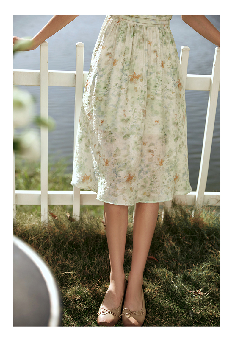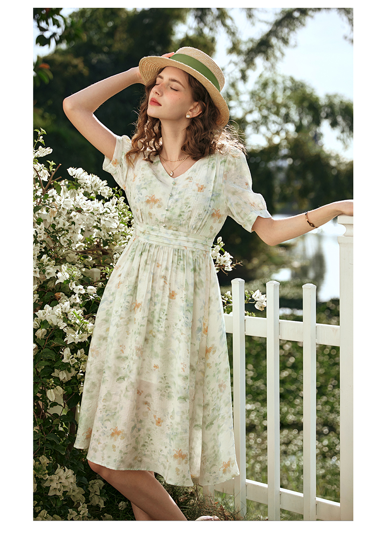 OLrain欧芮儿法式碎花连衣裙女早春2024年新款小清新显瘦收腰长裙