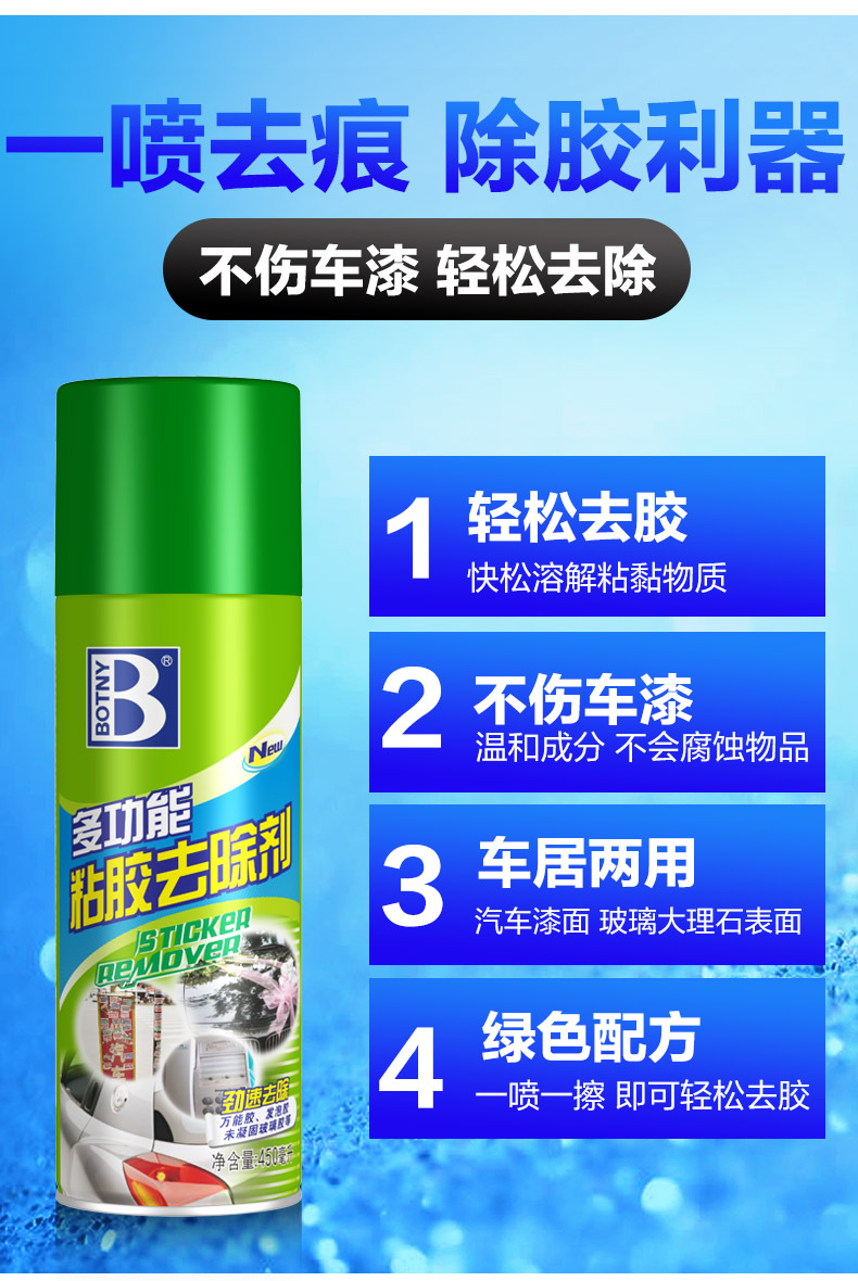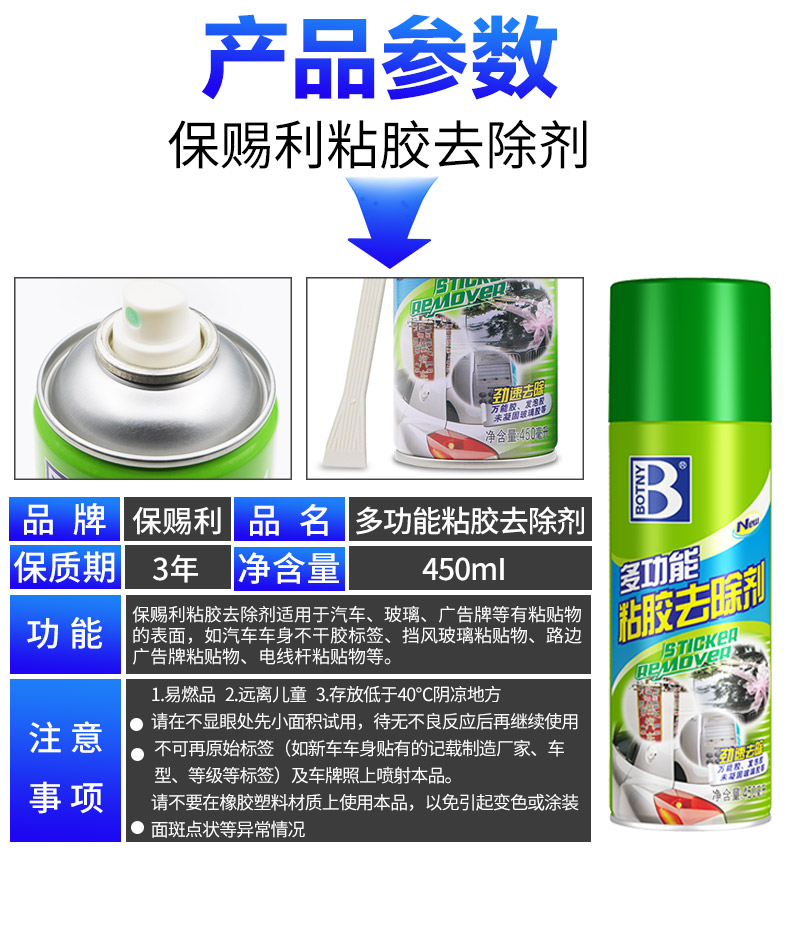 保赐利多功能强力除胶剂 家用 玻璃贴纸粘胶清洁去除剂 汽车不干胶胶带双面胶胶水黏胶脱胶神器 450ML