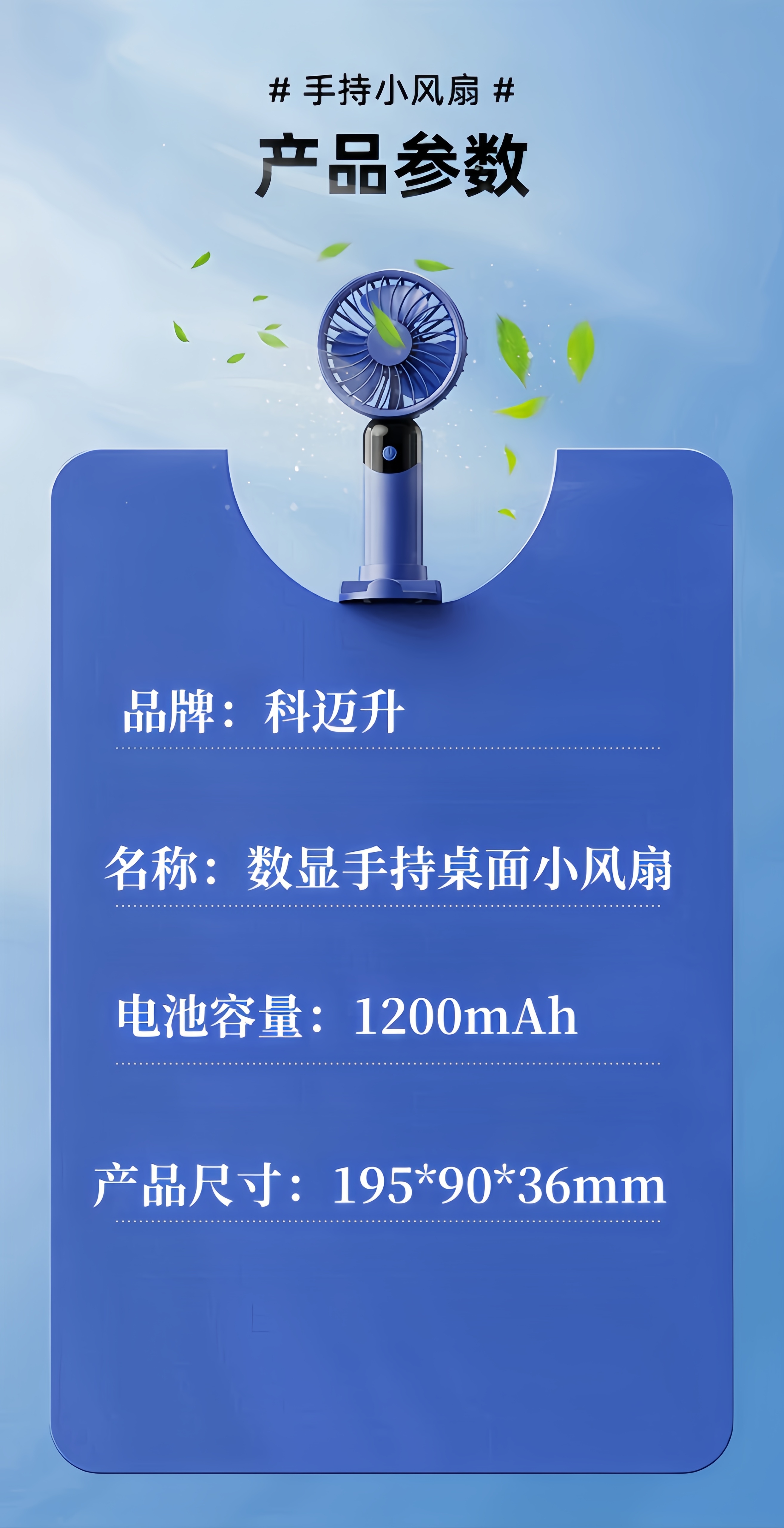 科迈升 数显手持桌面小风扇YM-F22