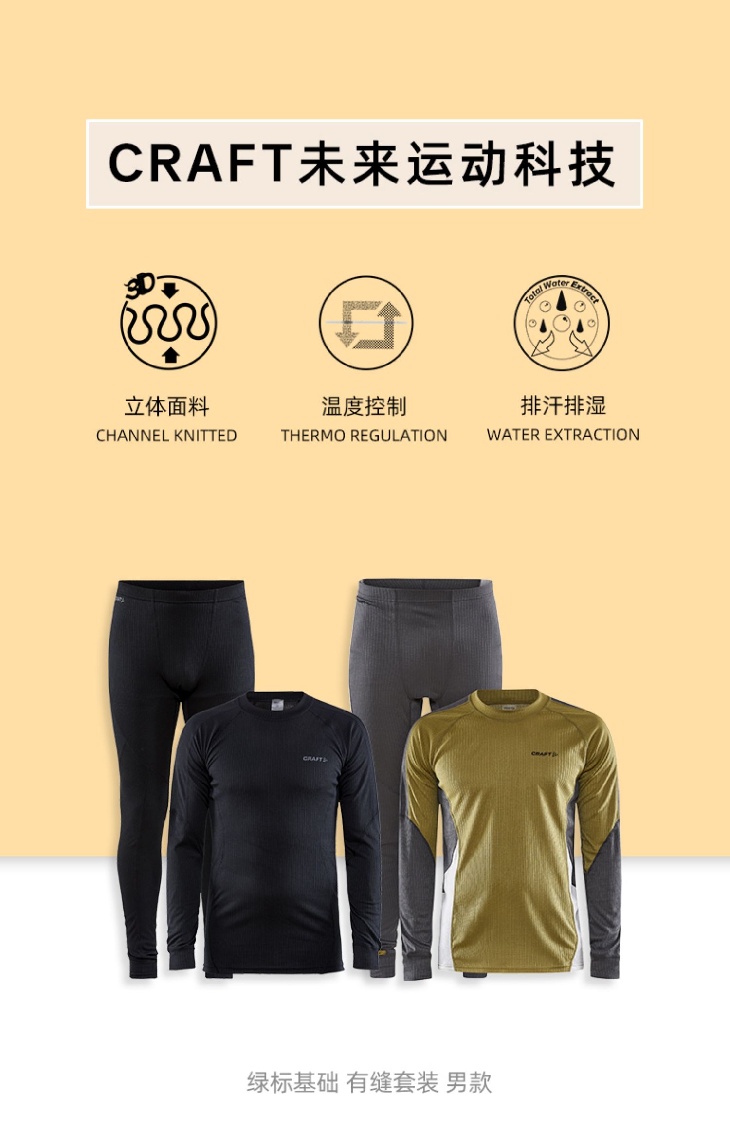 【特价产品不支持退换】CRAFT 夸夫特 男女款绿标有缝套装 欧码偏大,建议小一码购买