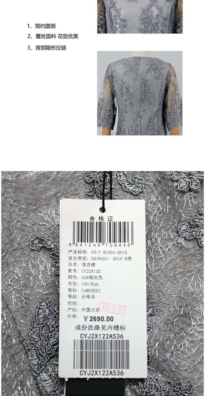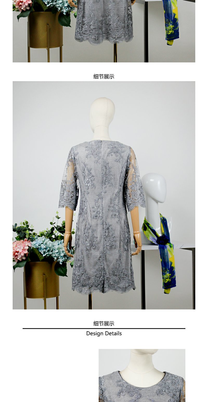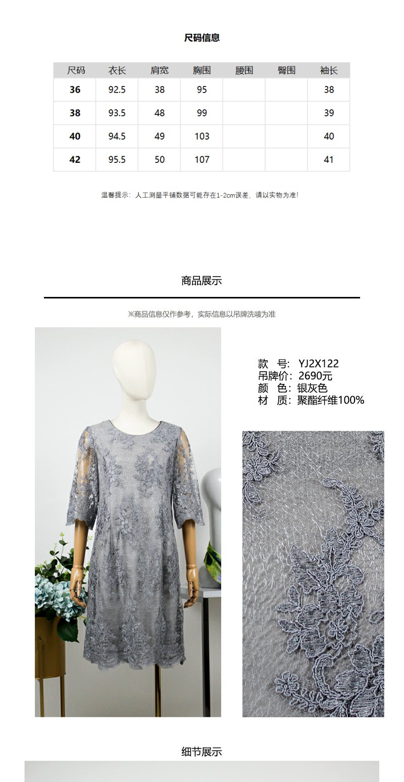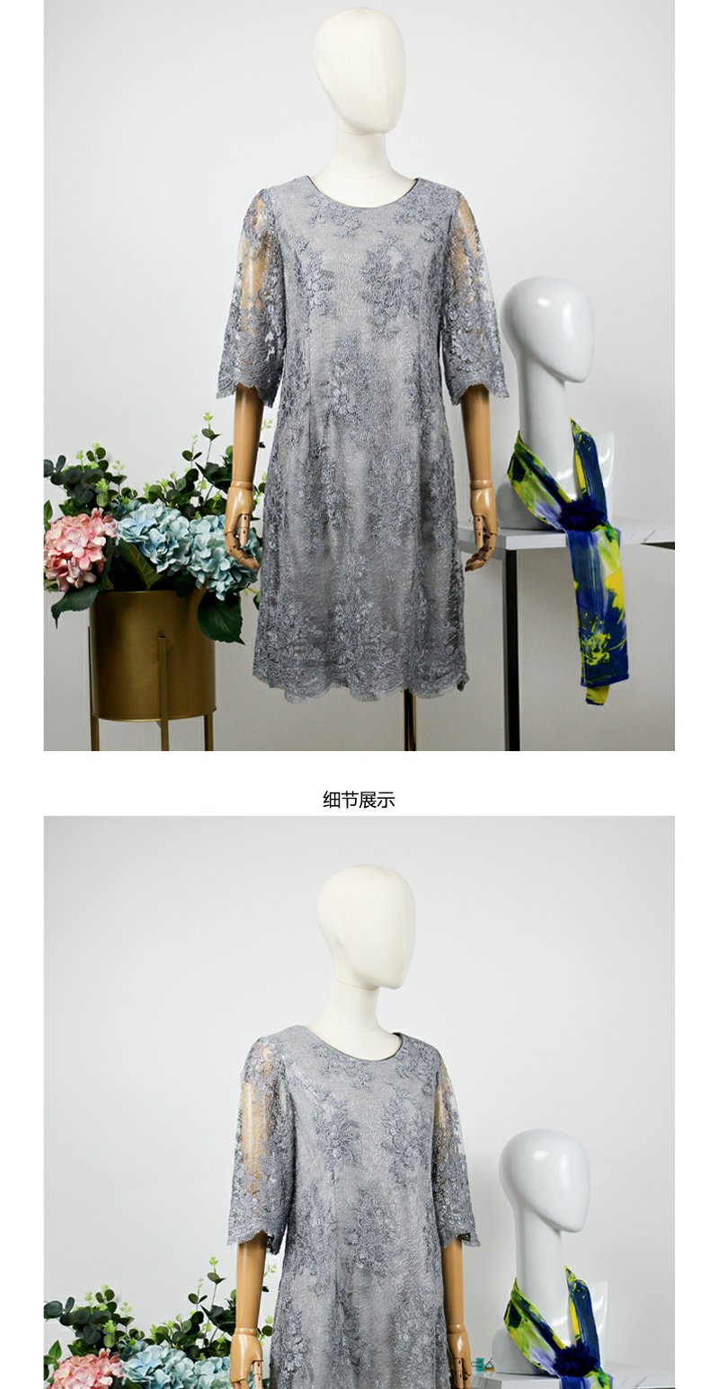FOCALS福柯斯秋季蕾丝圆领五分袖修身A字裙连衣裙FYJ2X122A5