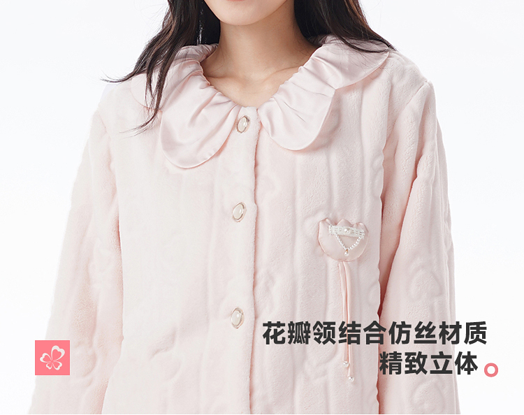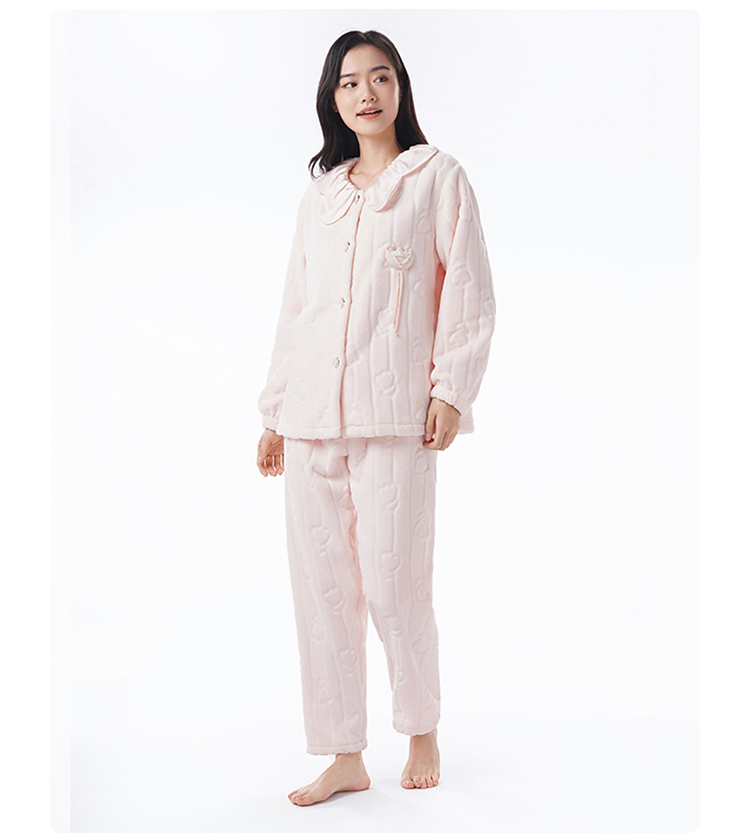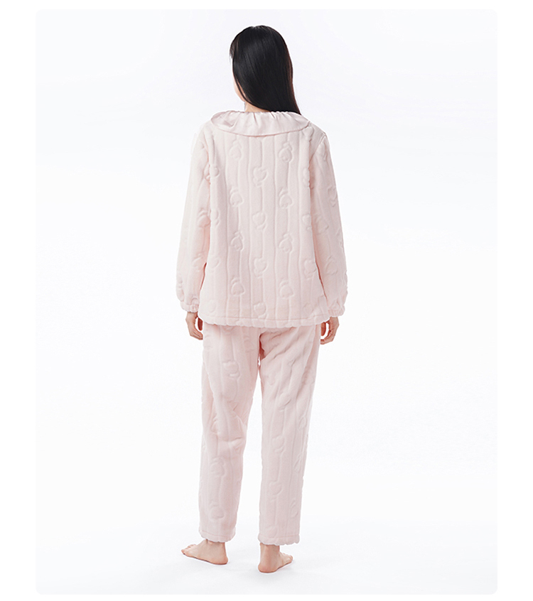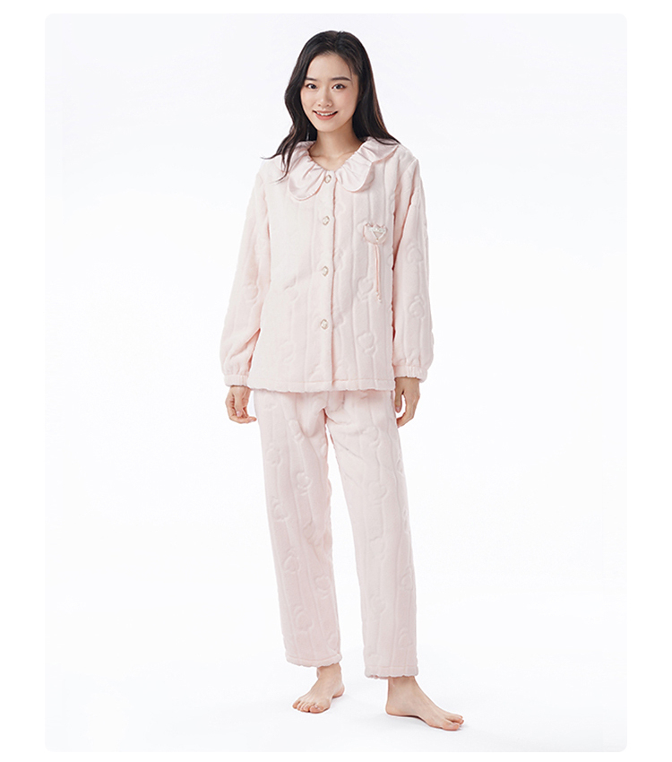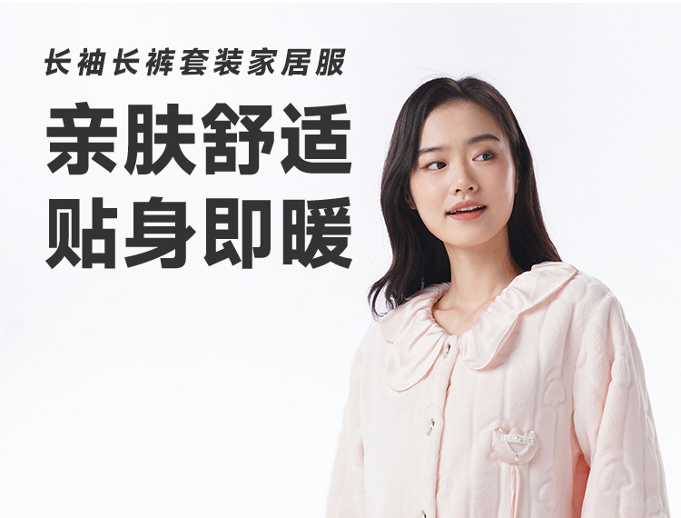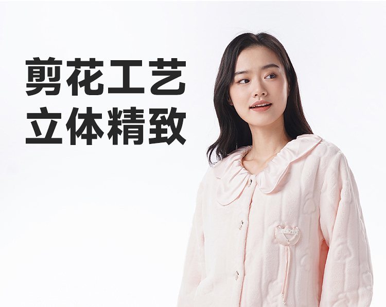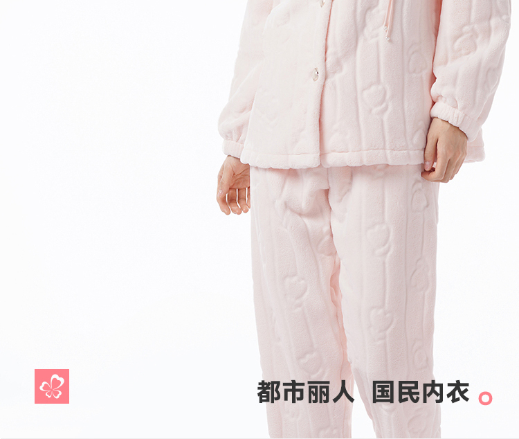都市丽人睡衣女装法兰绒剪花女士家居服长袖长裤法兰绒套装LHH9D3