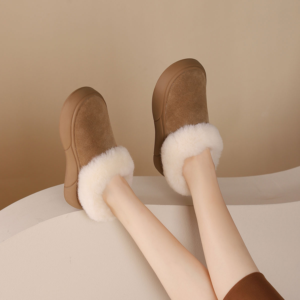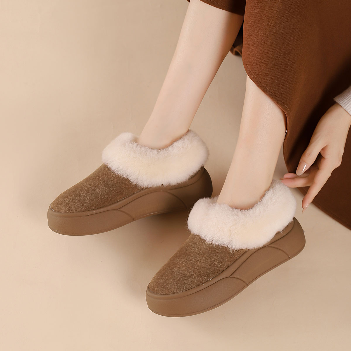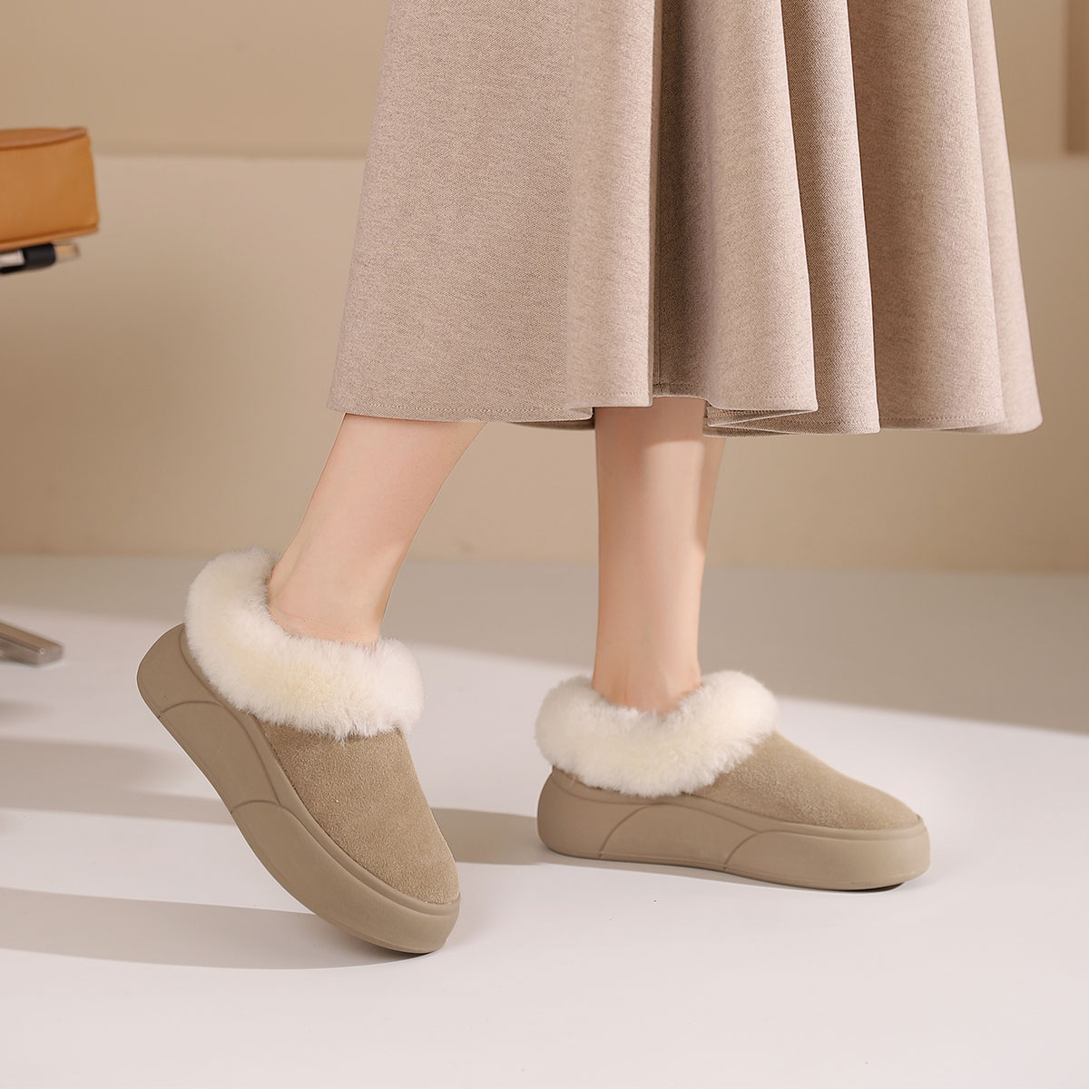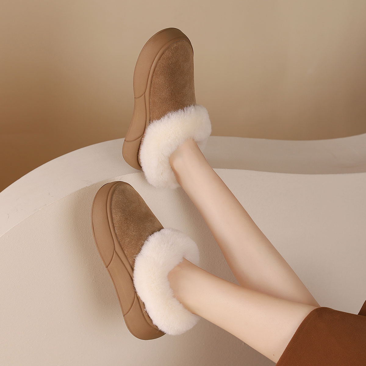 西村名物2024年冬季新款厚底防滑系带舒适保暖低帮毛毛鞋T24DM47051