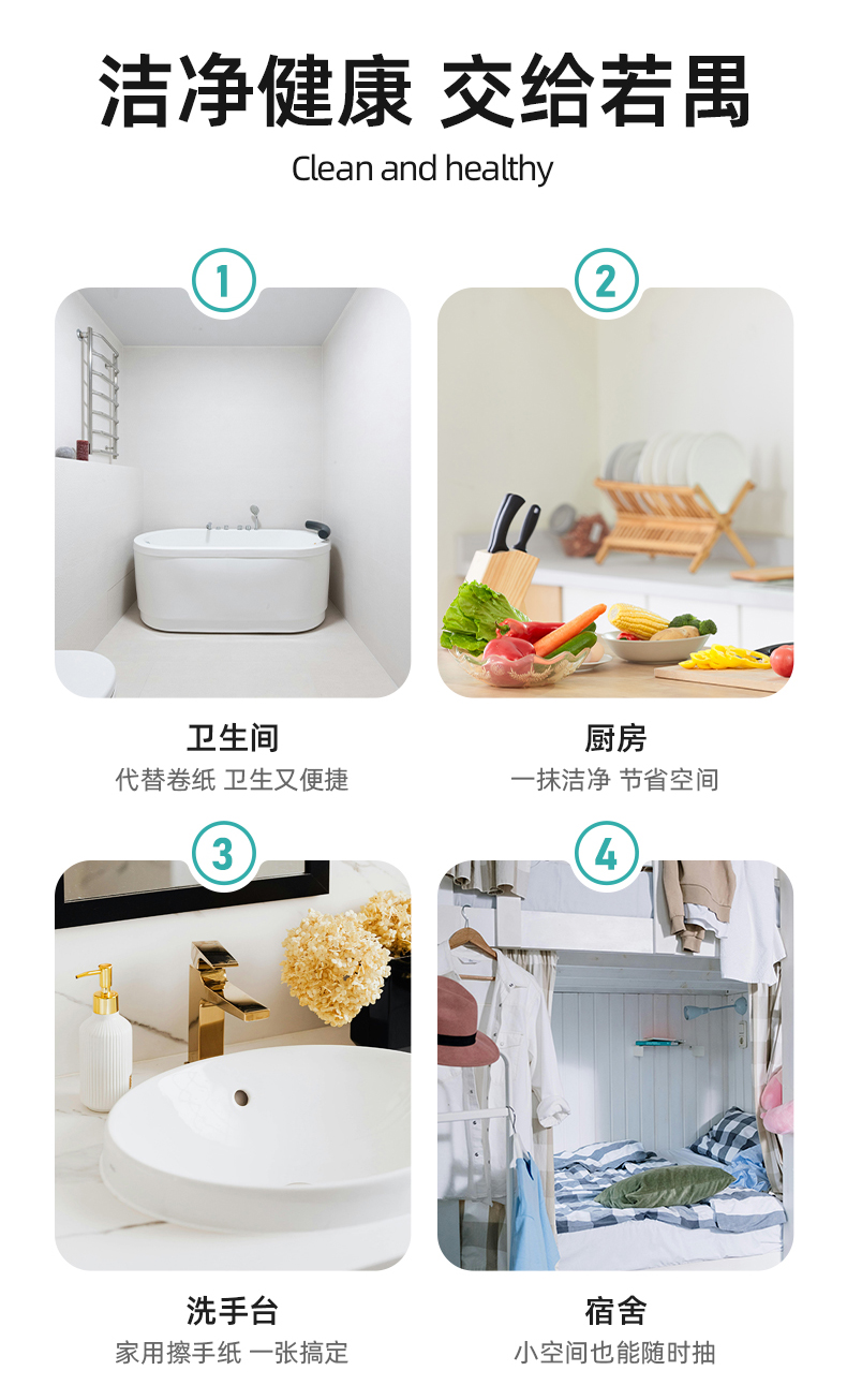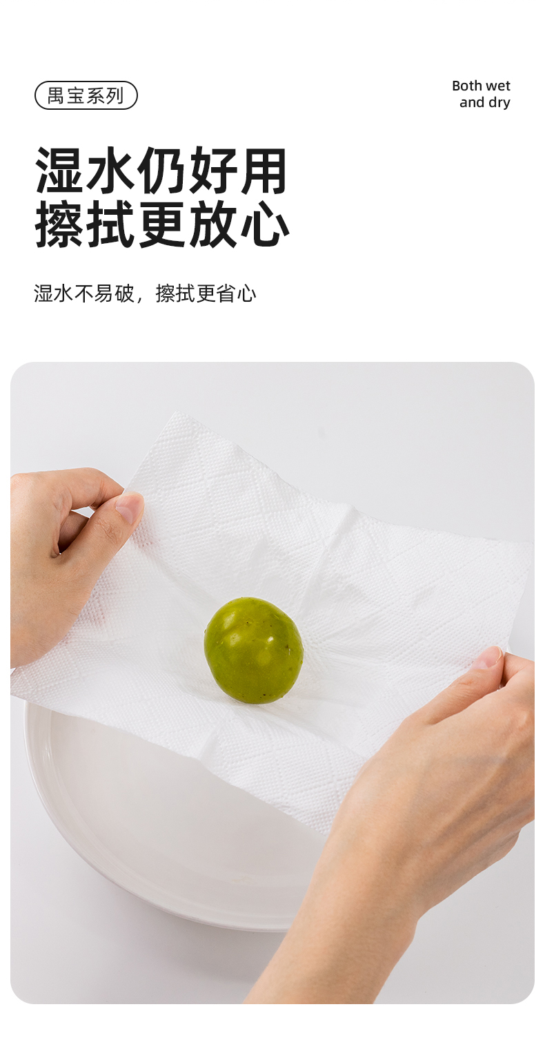 若禺RoyoPanda厨房纸双层加大加厚400张/提便捷挂式装原生竹浆吸油吸水1件4提RK1902