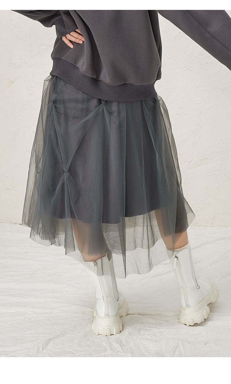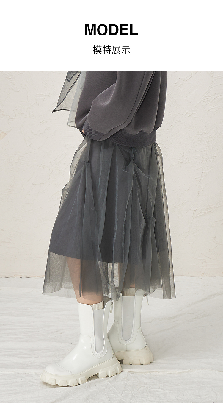 NUTS灰色设计感小众百搭气质显瘦中长款半身裙女343061121