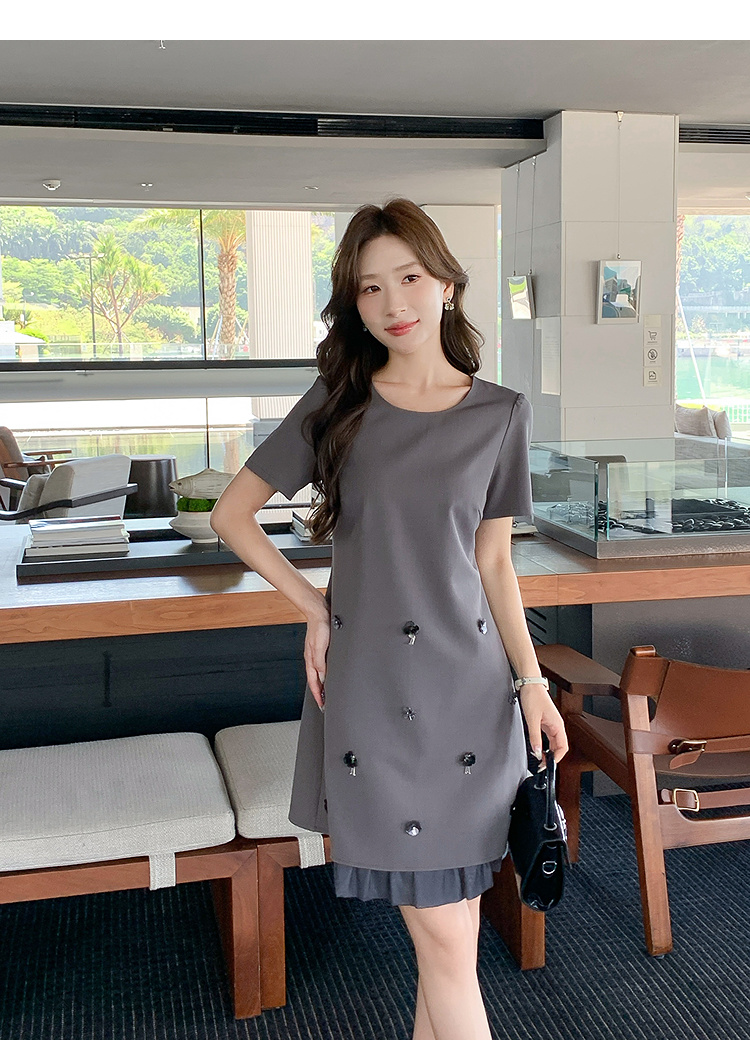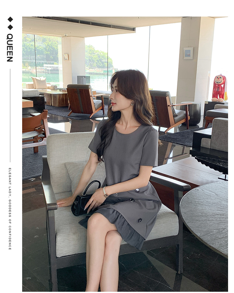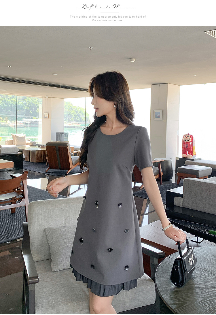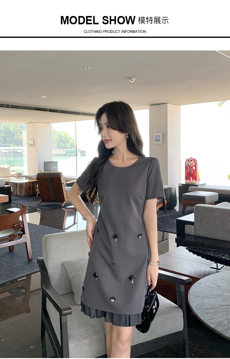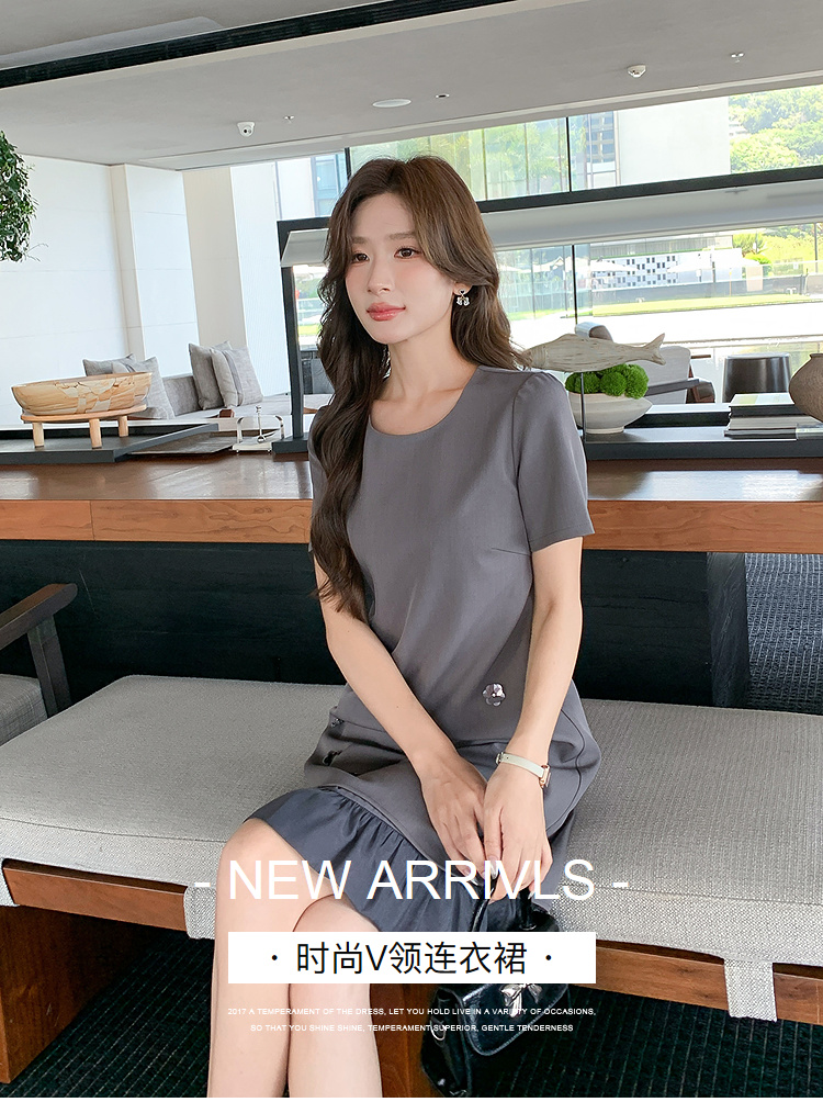 奢姿大码女装2025夏季花朵立体装饰设计连衣裙胖妹妹V领气质裙子9952869752【1】