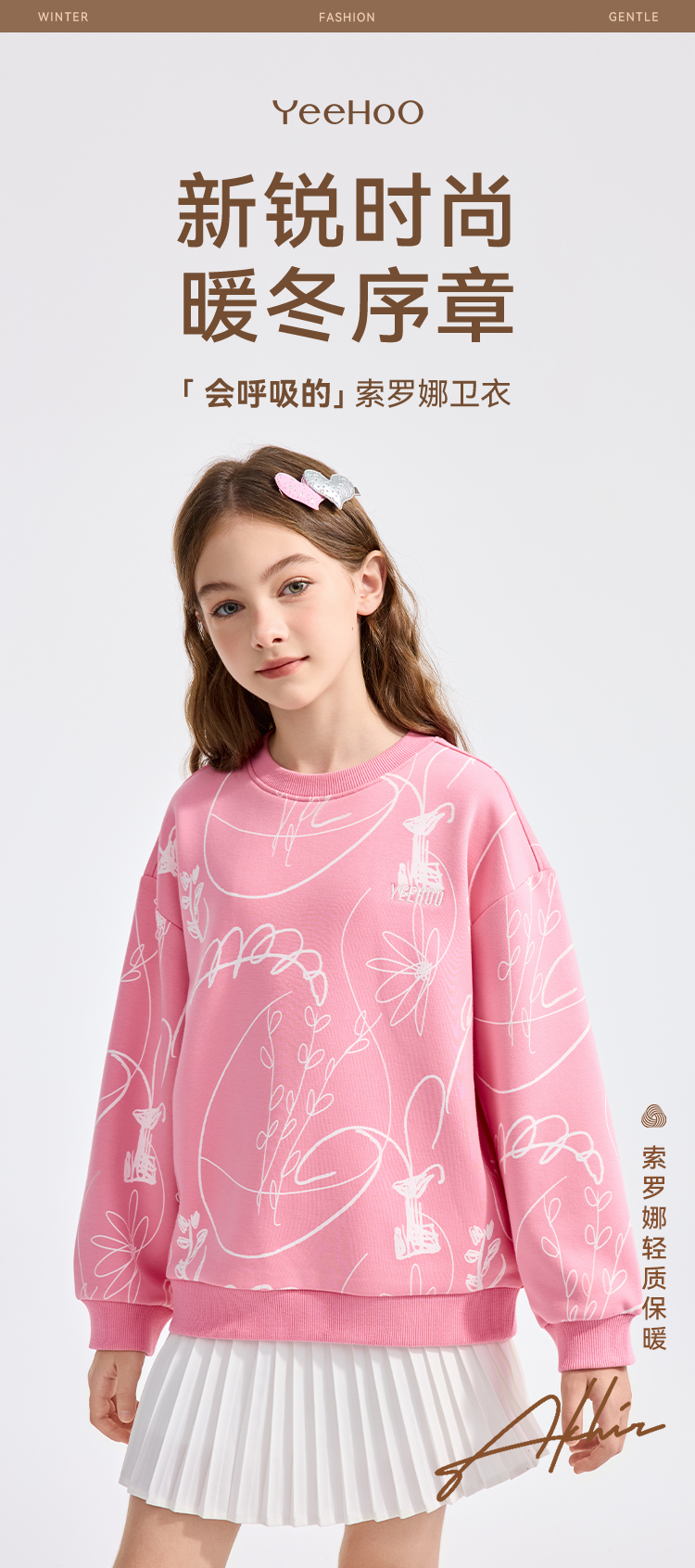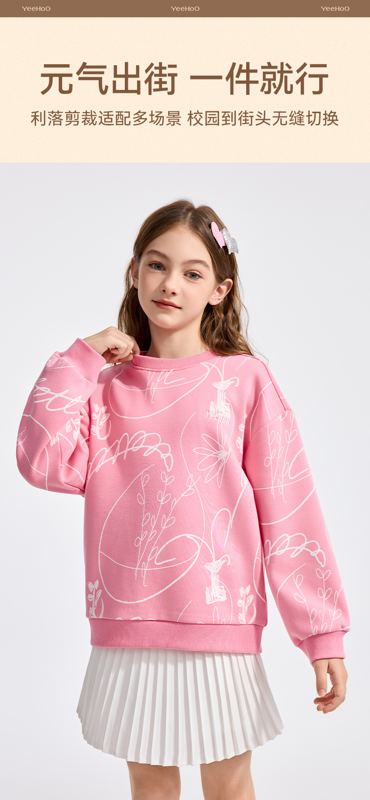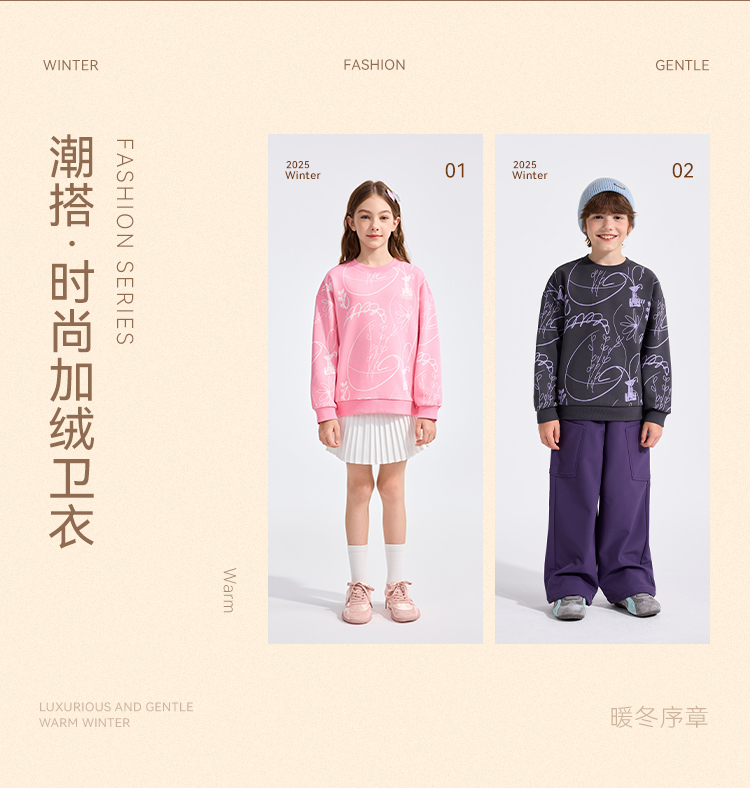 【英氏】【加绒】【110-160】男女童圆领卫衣