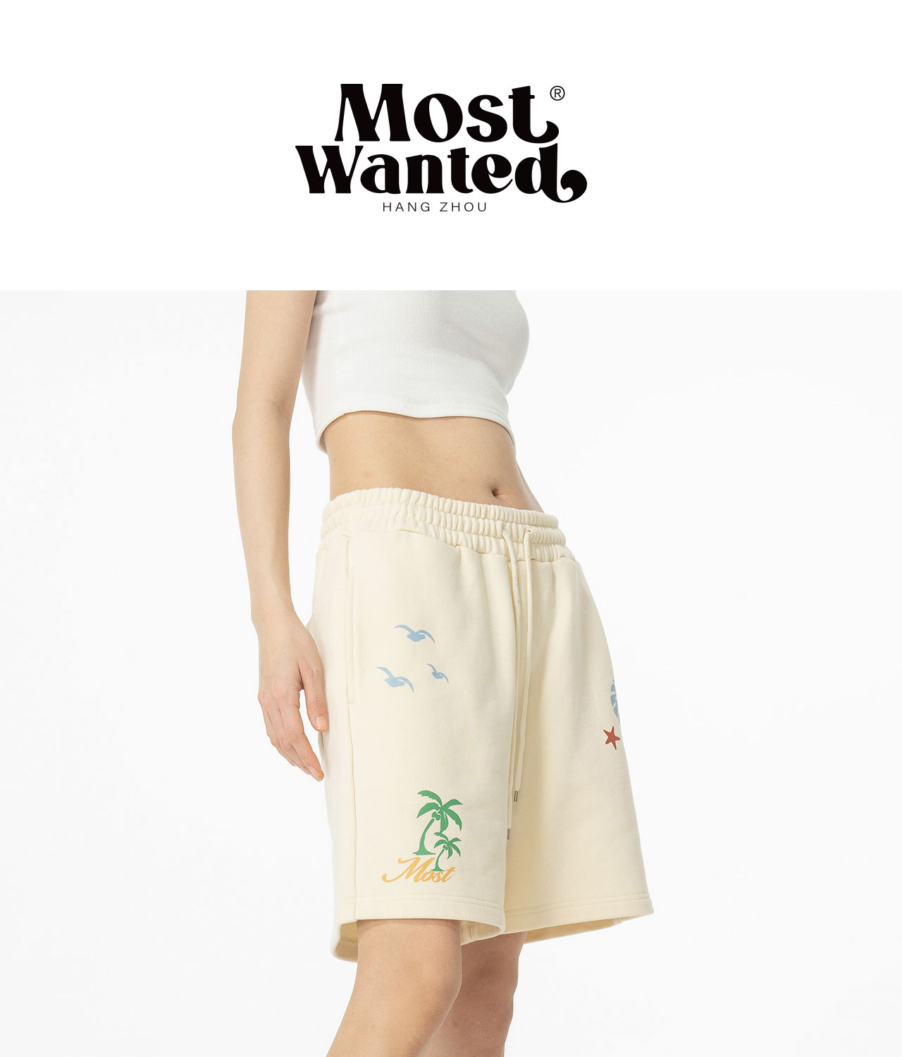 mostwantedlab彩虹/MWL-2312103/沙滩元素印花短卫裤