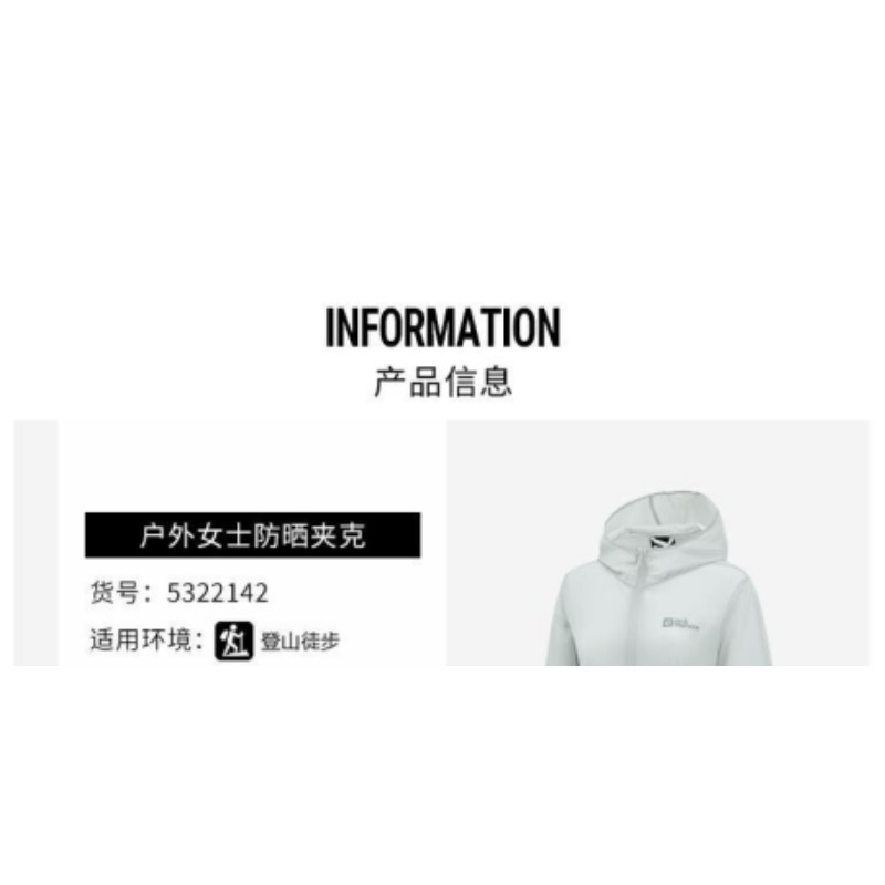 JackWolfskin夏季透气轻薄女士UPF40皮肤衣防晒夹克5322142