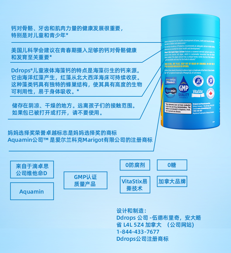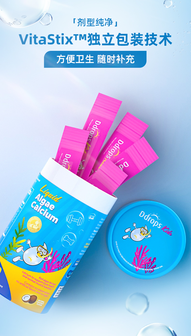 【跨境进口】Ddrops滴卓思宝宝液体钙镁锌专利红藻钙 30条/罐 SC 6月+ | 报关后不支持退换货,介意慎拍