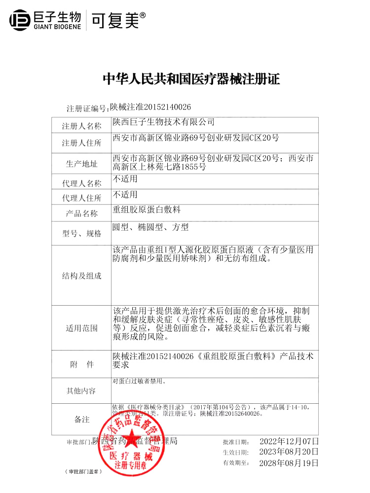 可复美重组胶原蛋白敷料敏感性肌肤医用敷料敷贴片非面膜5片/盒