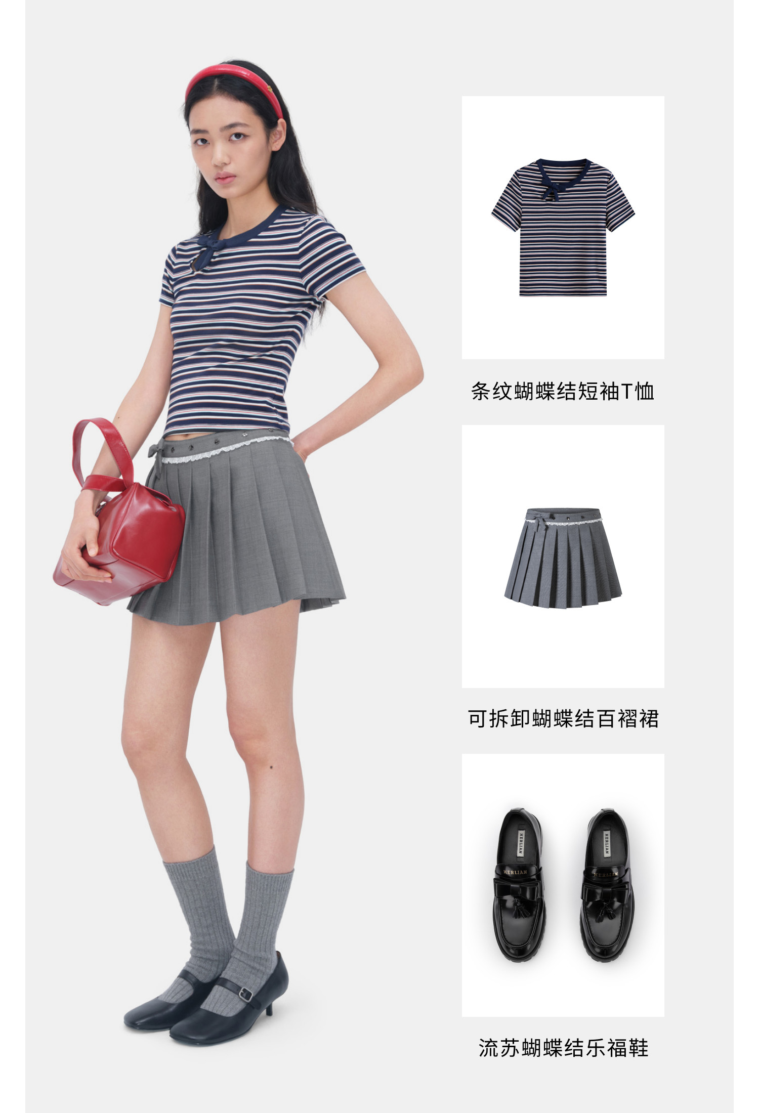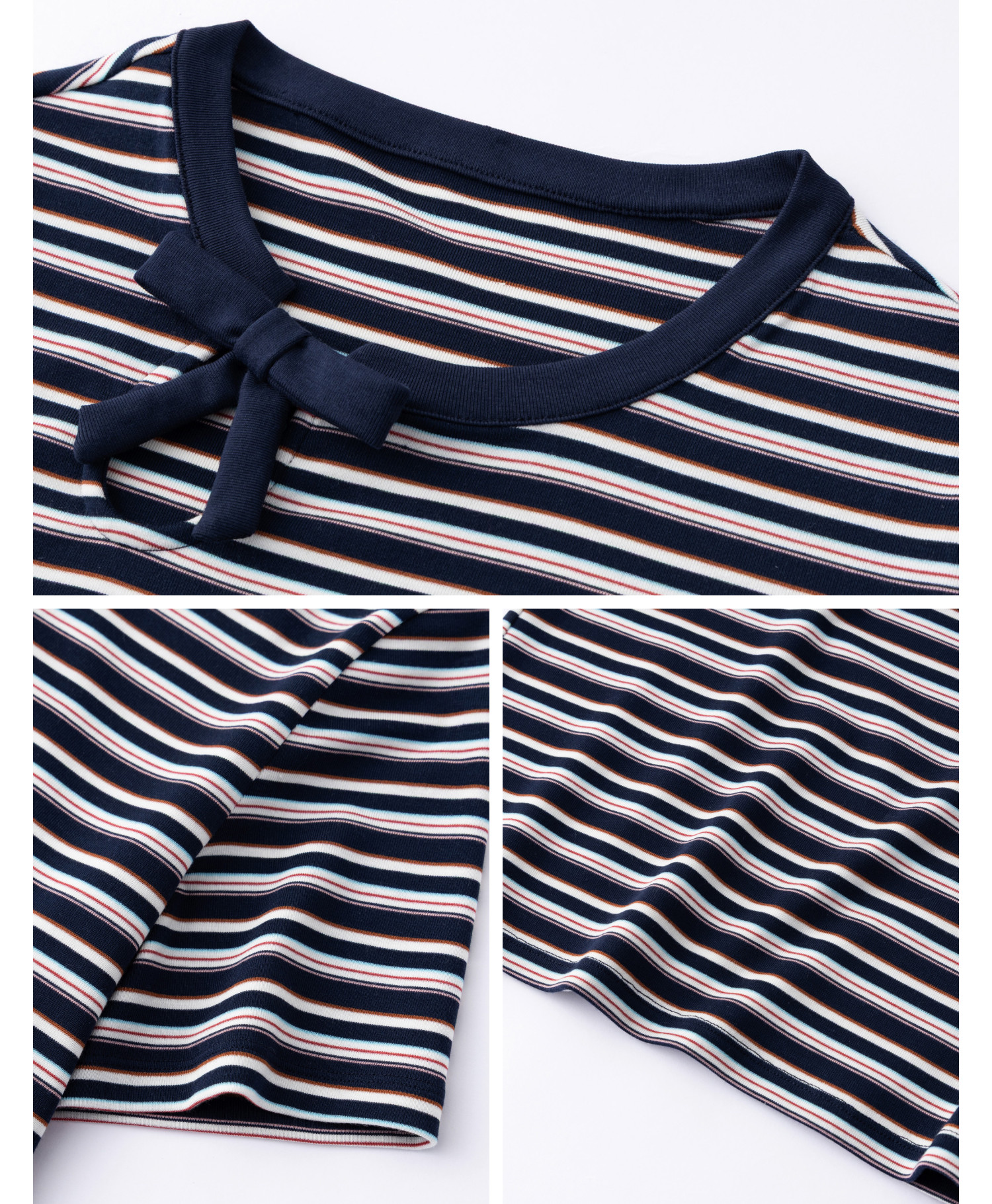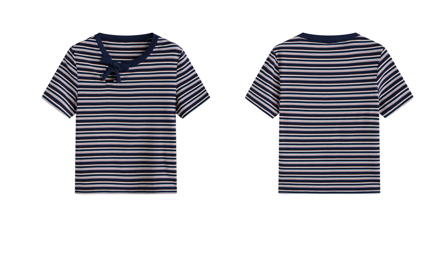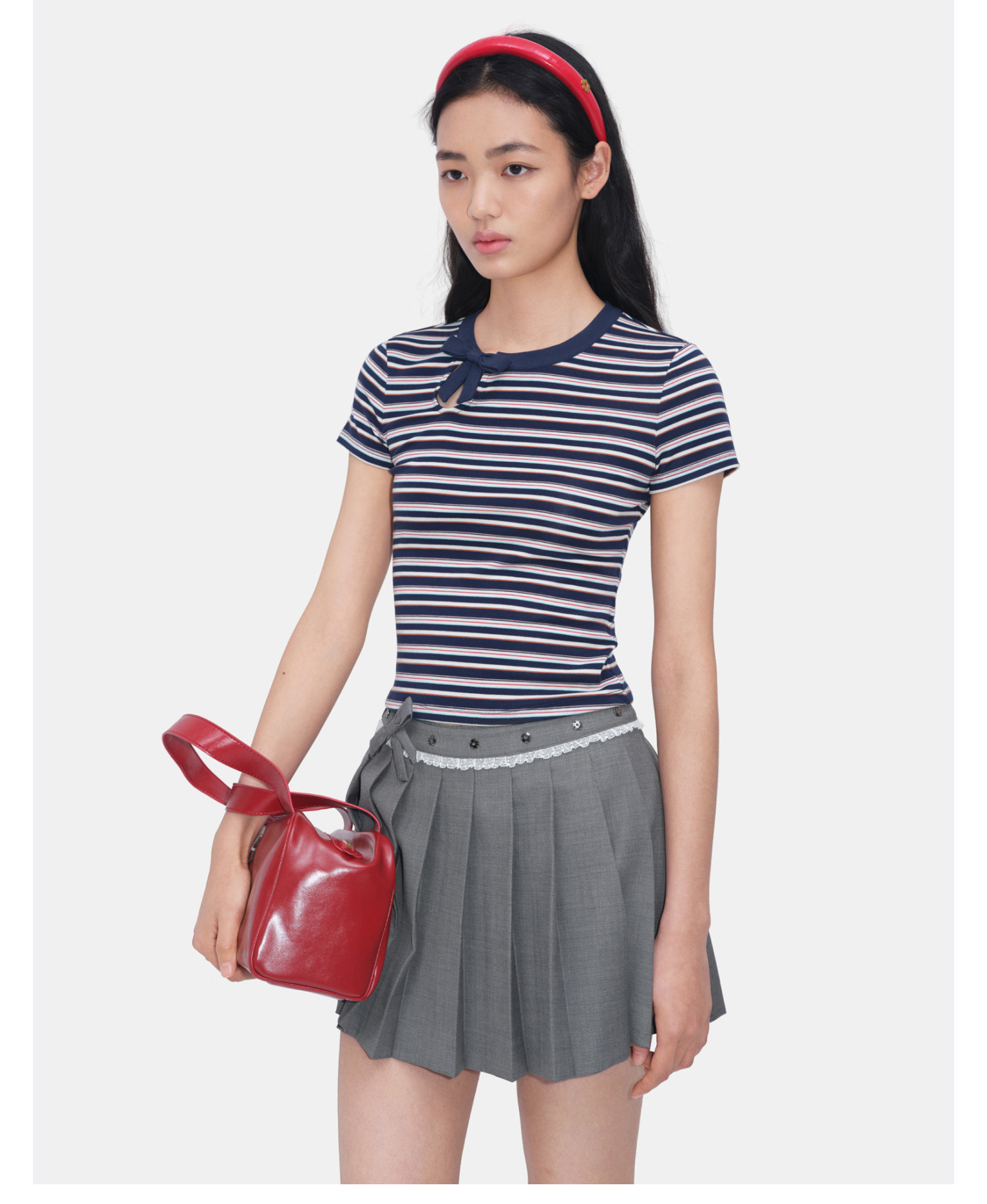 HERLIAN 2026年夏季新品条纹蝴蝶结女士修身百搭短袖T恤
