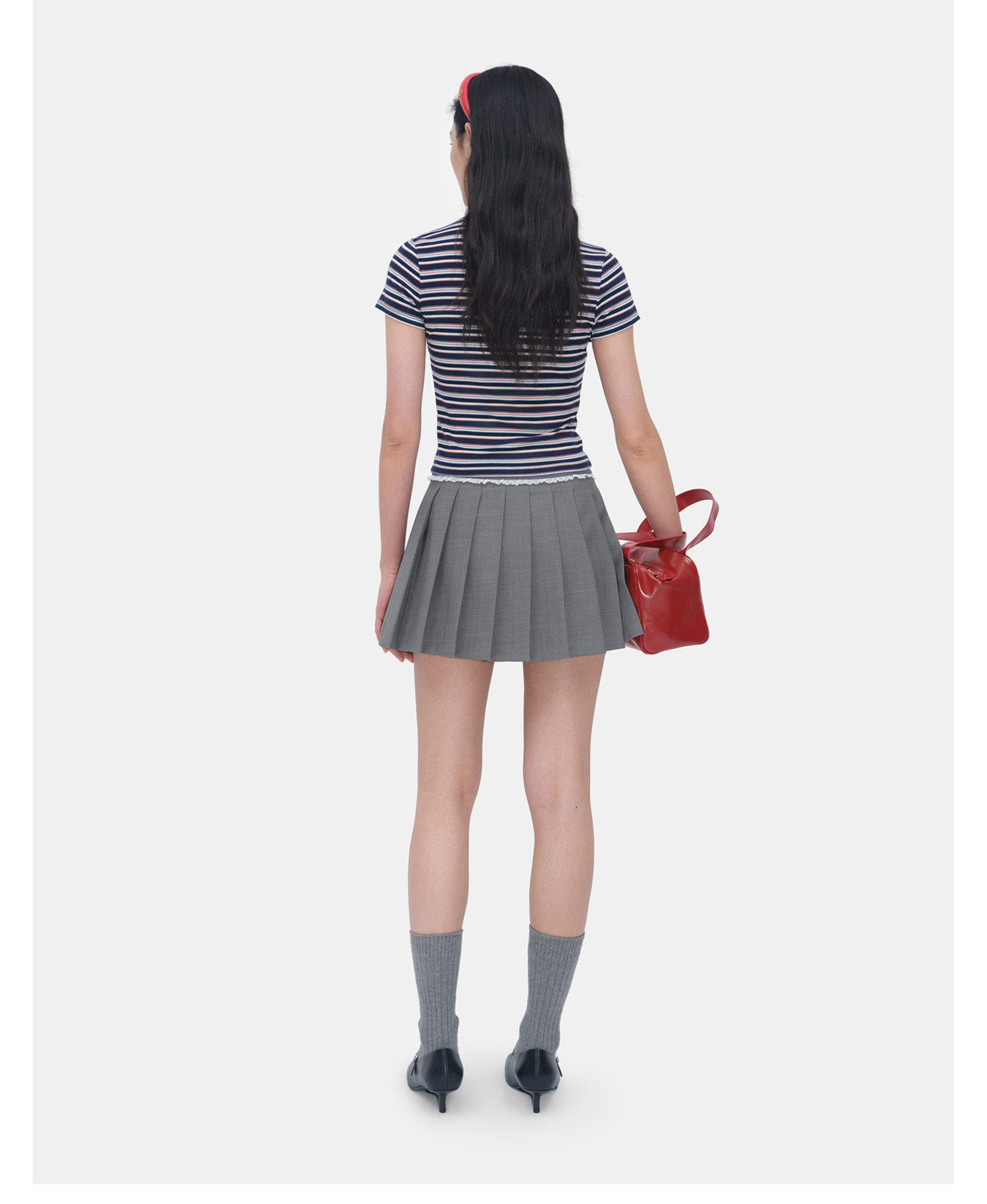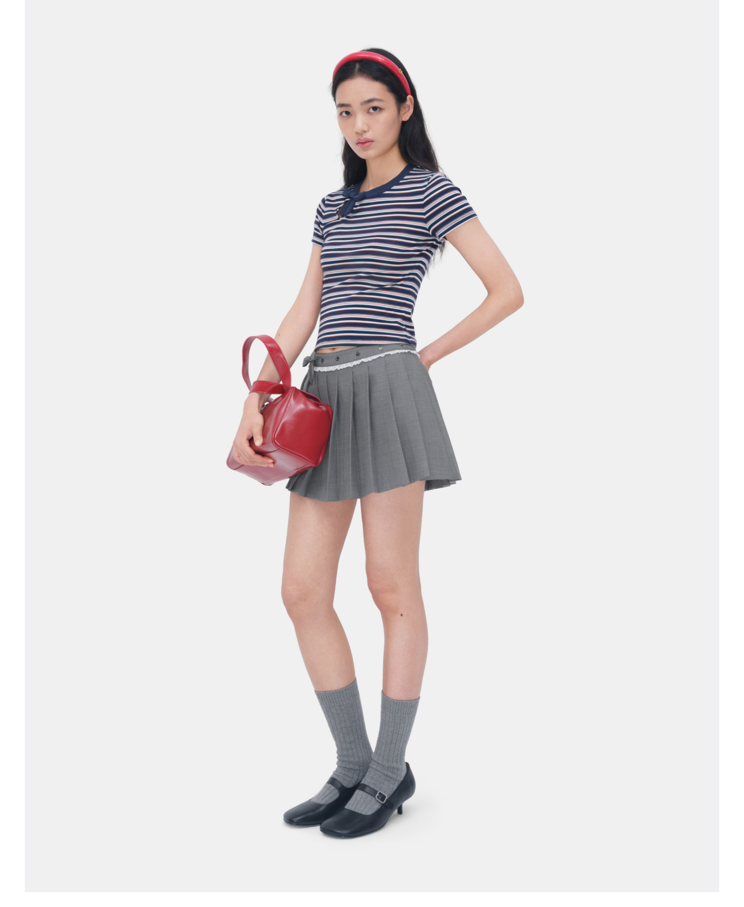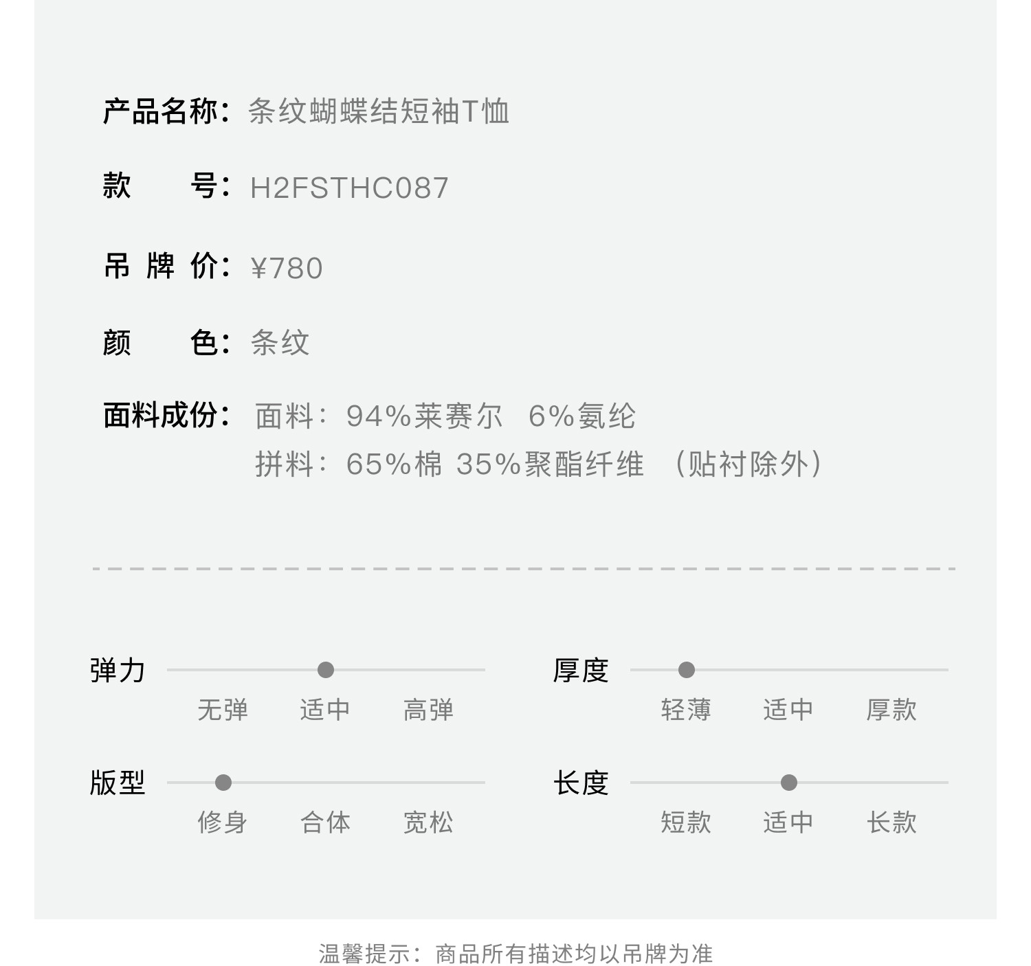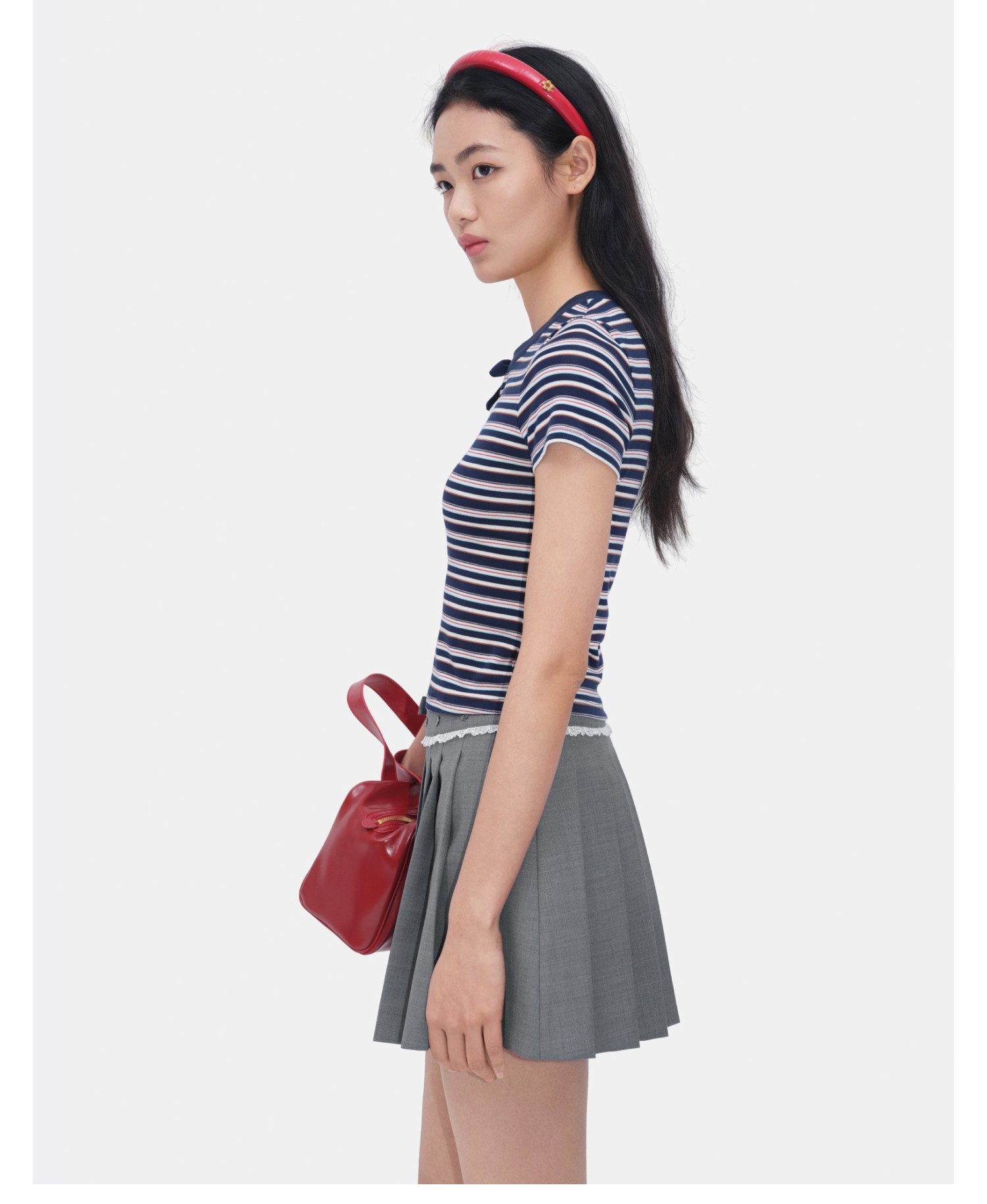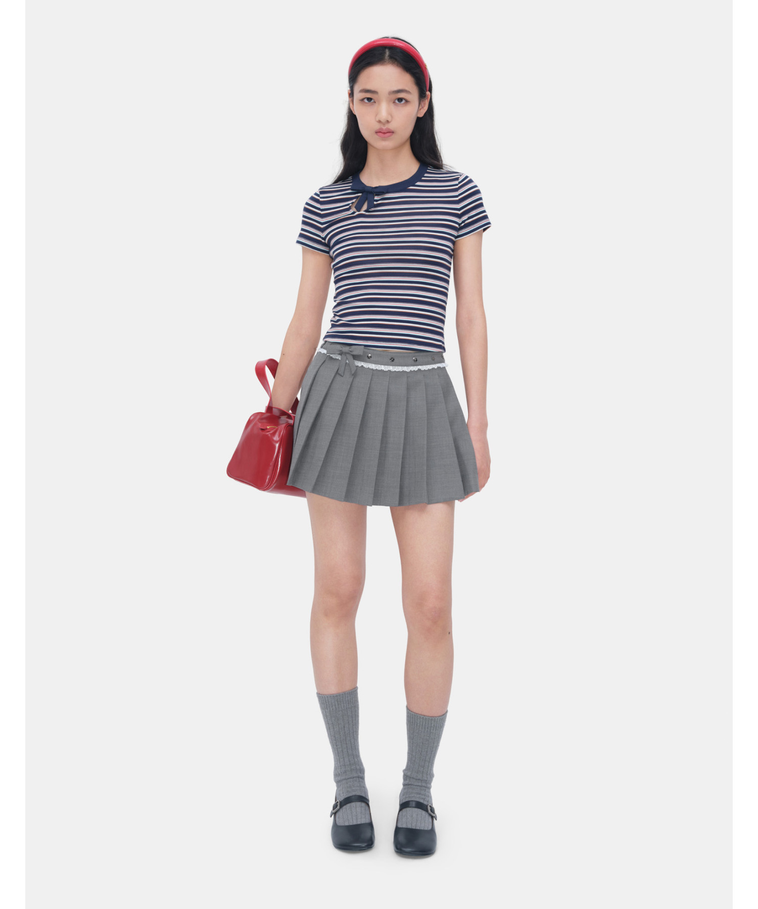 HERLIAN 2026年夏季新品条纹蝴蝶结女士修身百搭短袖T恤