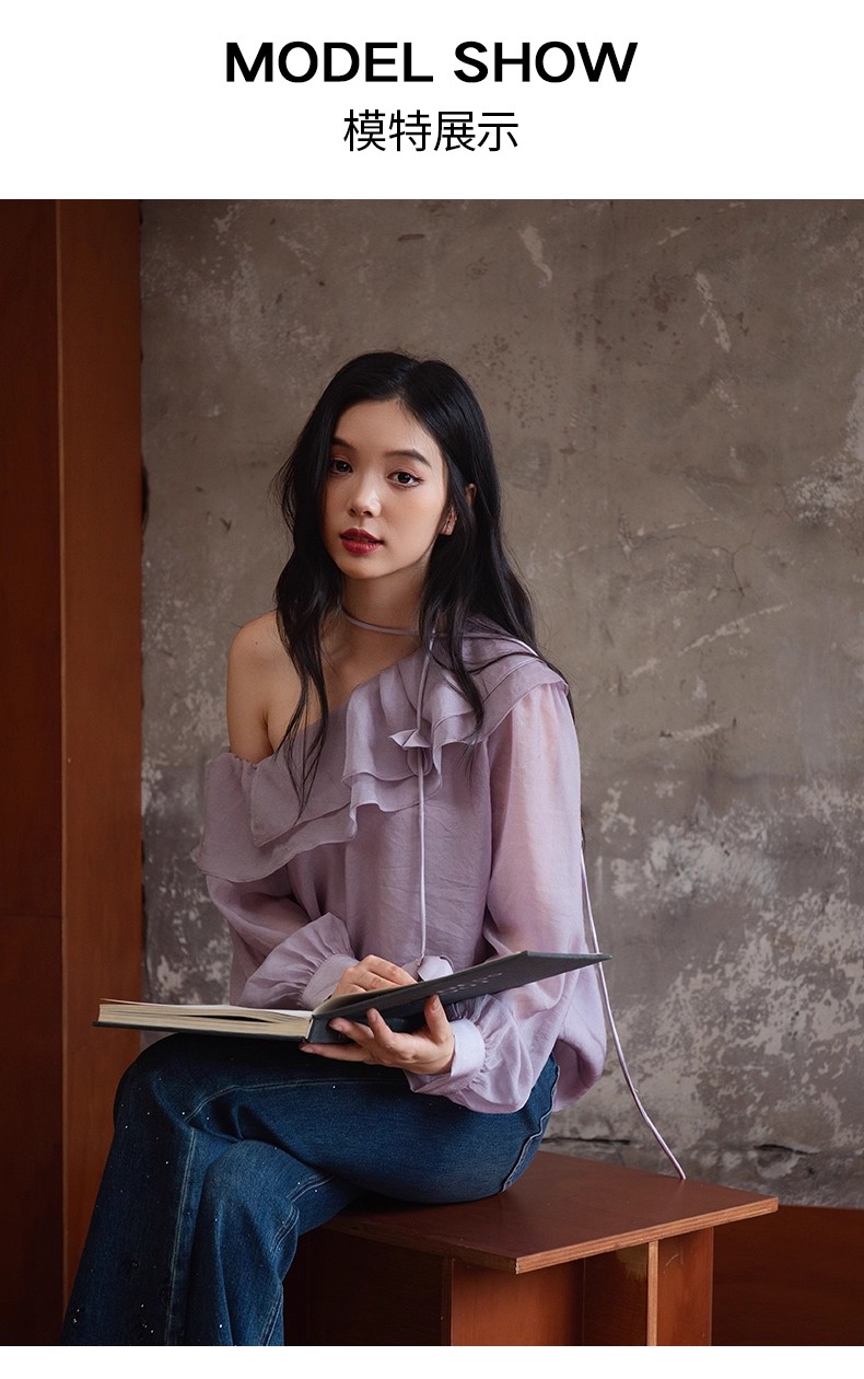 【门店同款】ENJOY秋季“谧色花颂”花朵飘带上衣 164246525