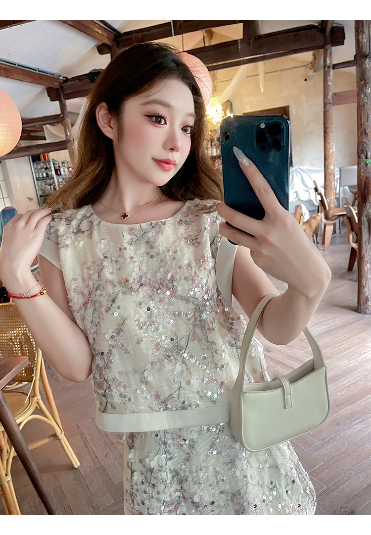 清仓捡漏 LINCHAOZHANG【紫罗兰】LD240209 拼接套装上衣 LD240210 拼接套装半裙