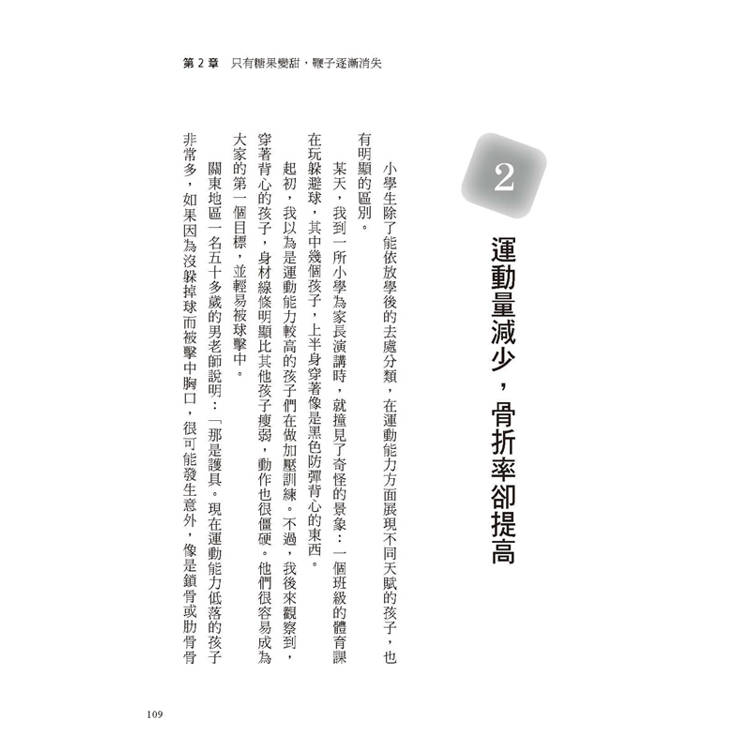 ‧體育課運動量日減,骨折率提高,因為不能準確判斷球速和距離,常被球打到。