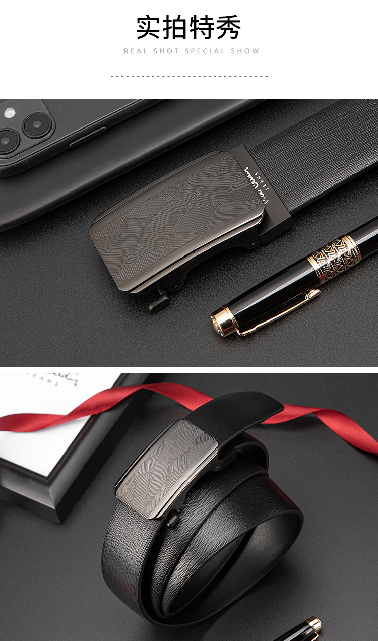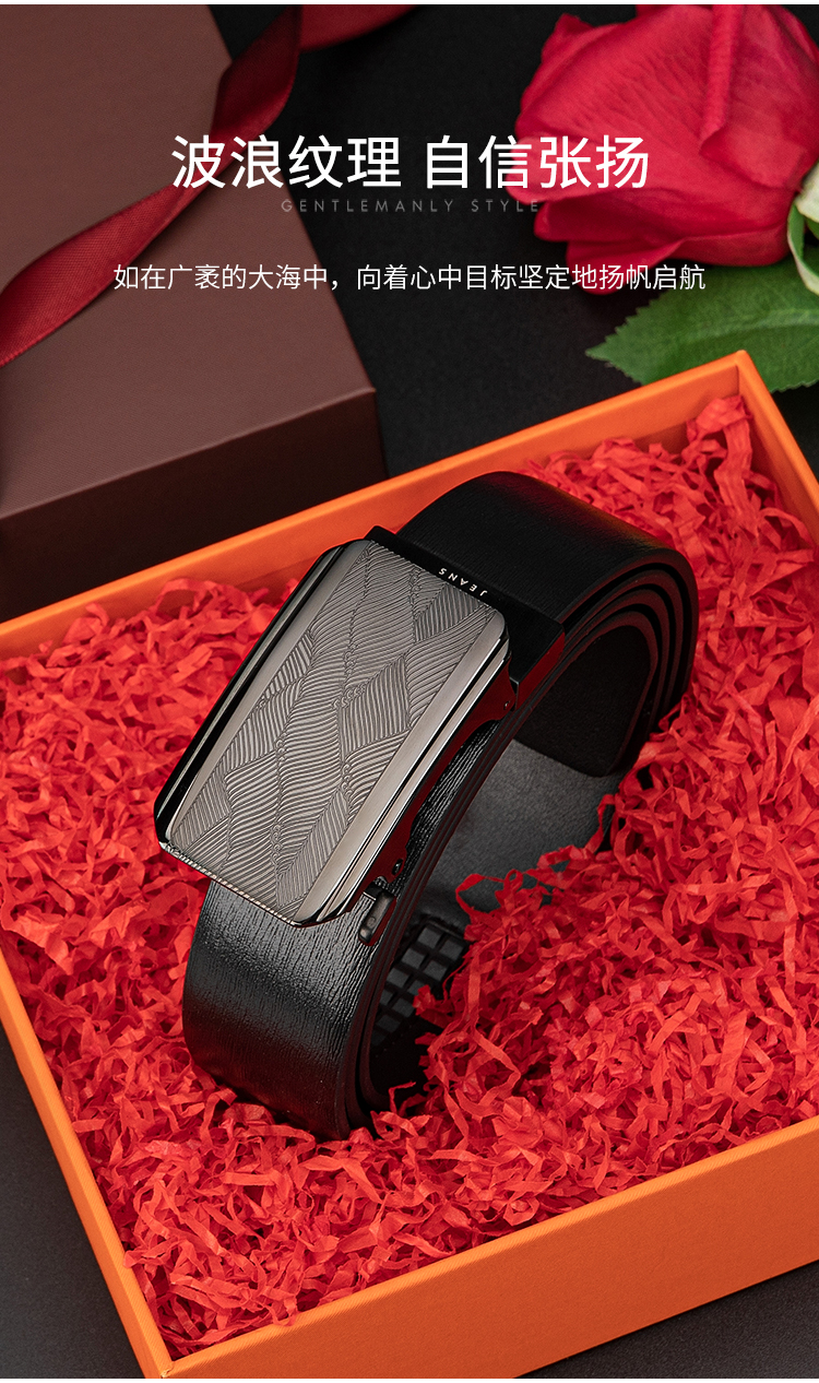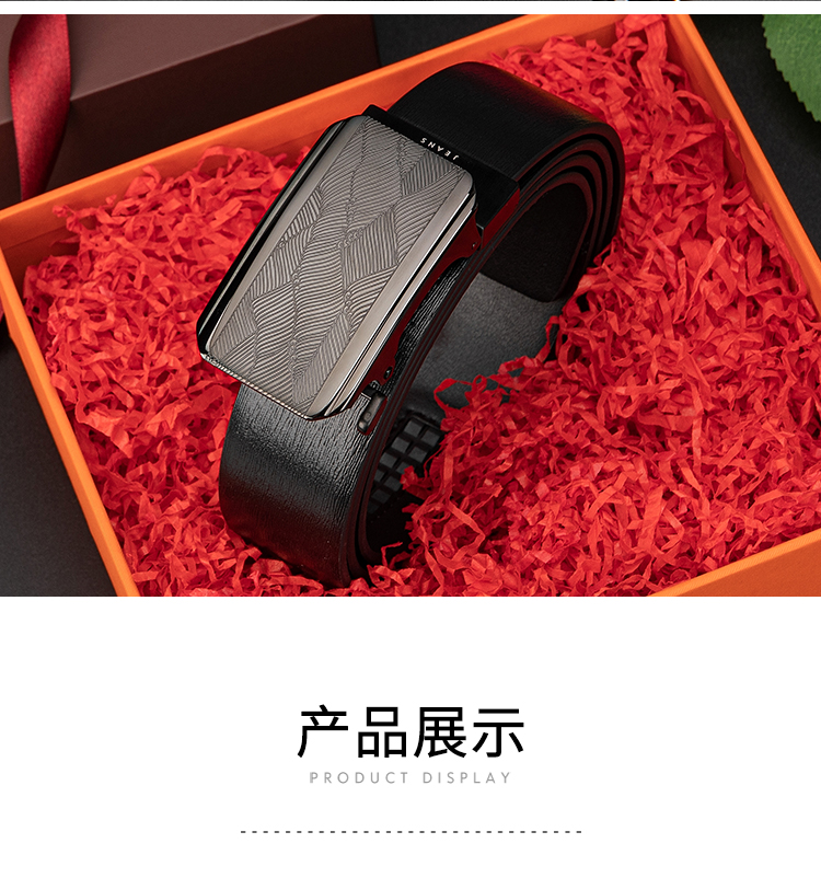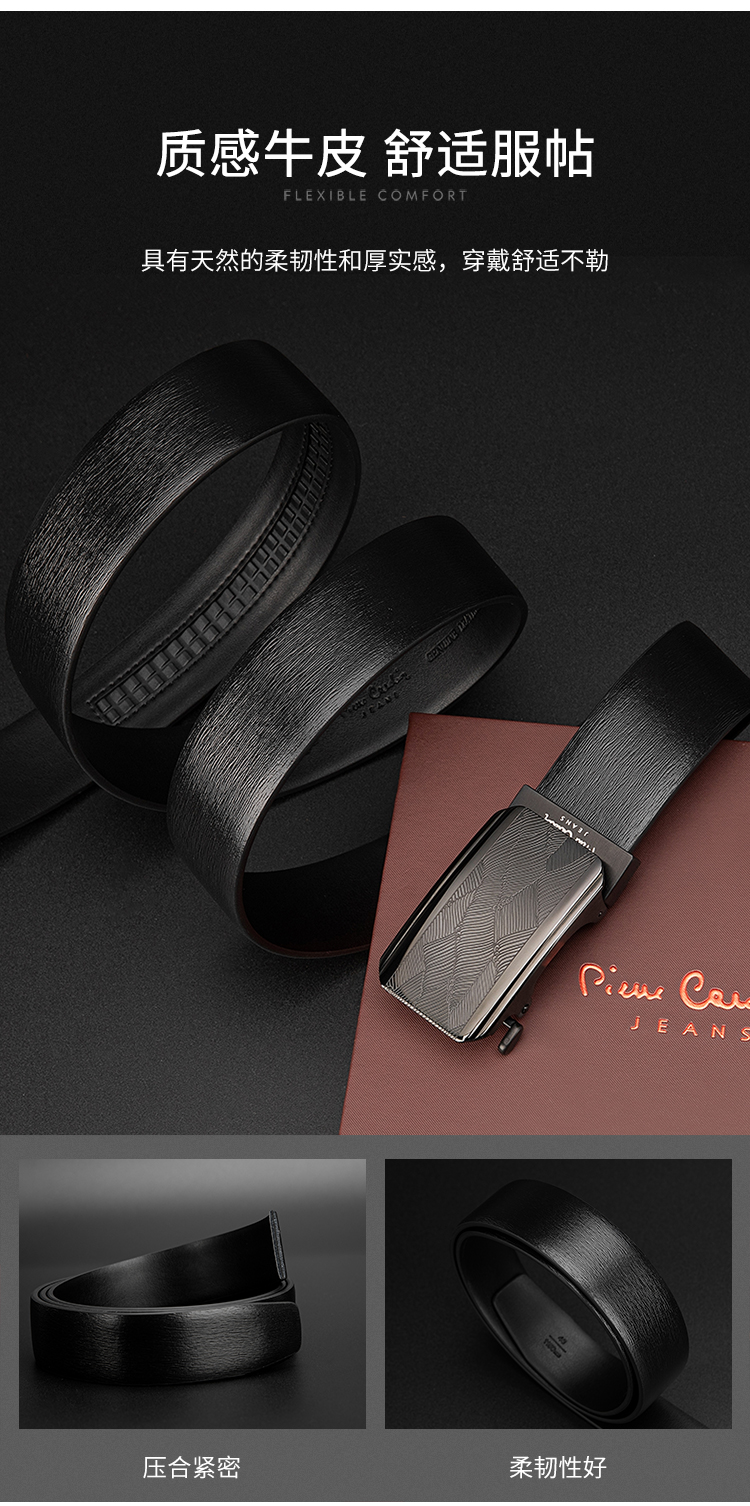【实木礼盒包装】皮尔卡丹牛皮皮带自动扣男士腰带高档木礼盒送礼