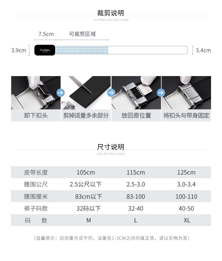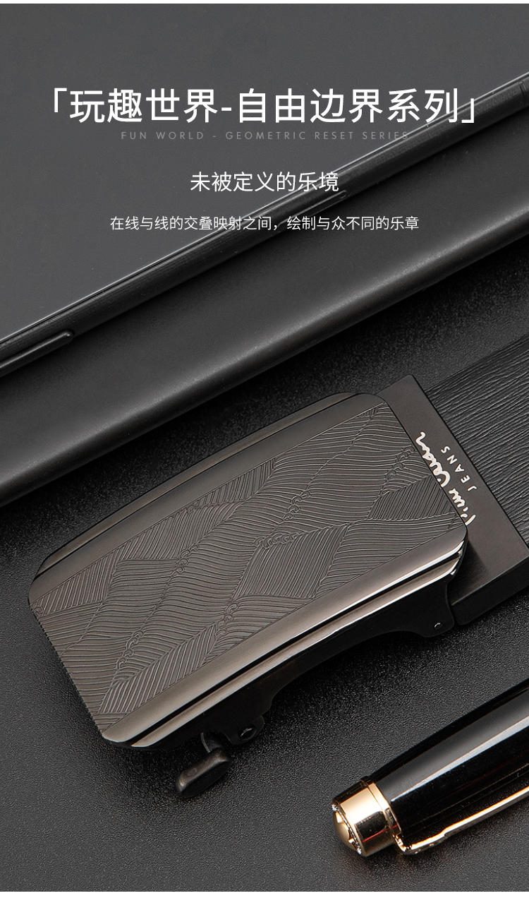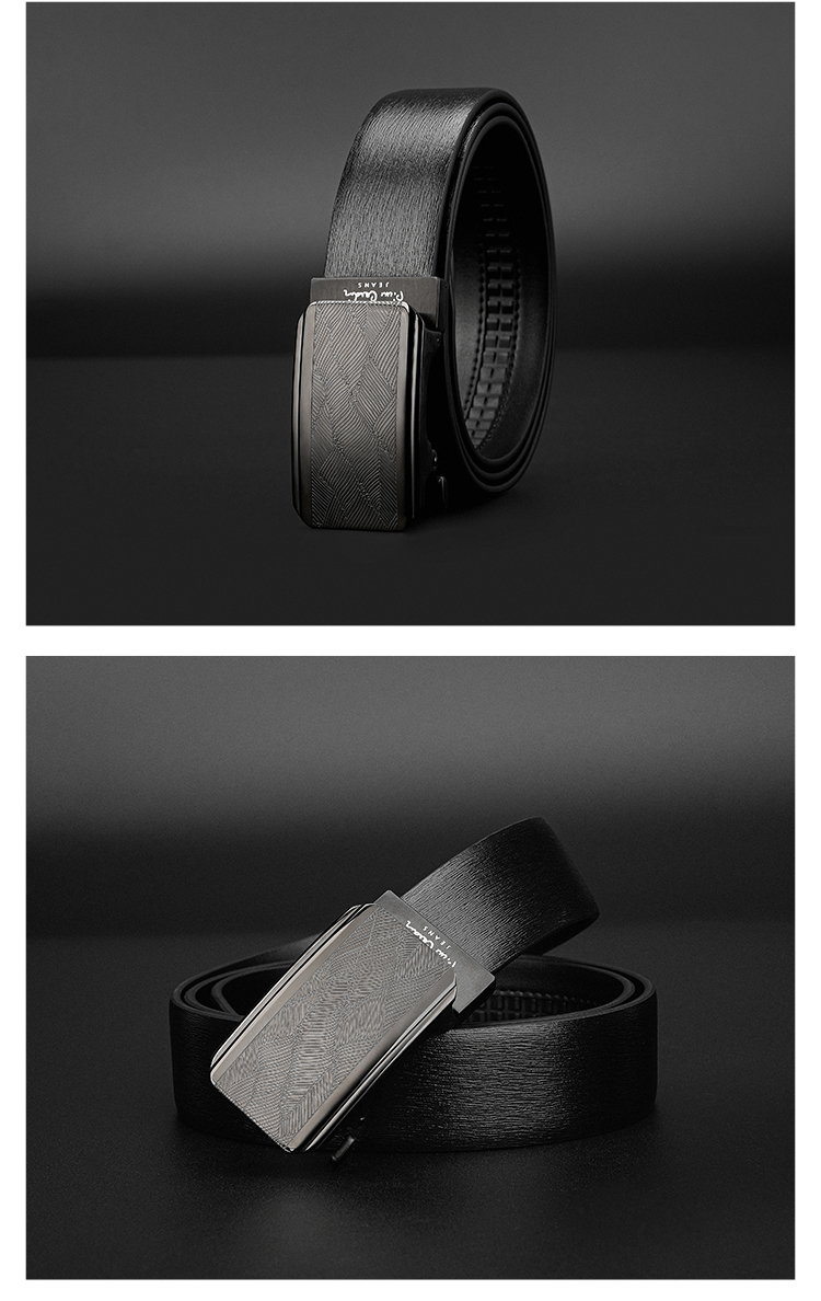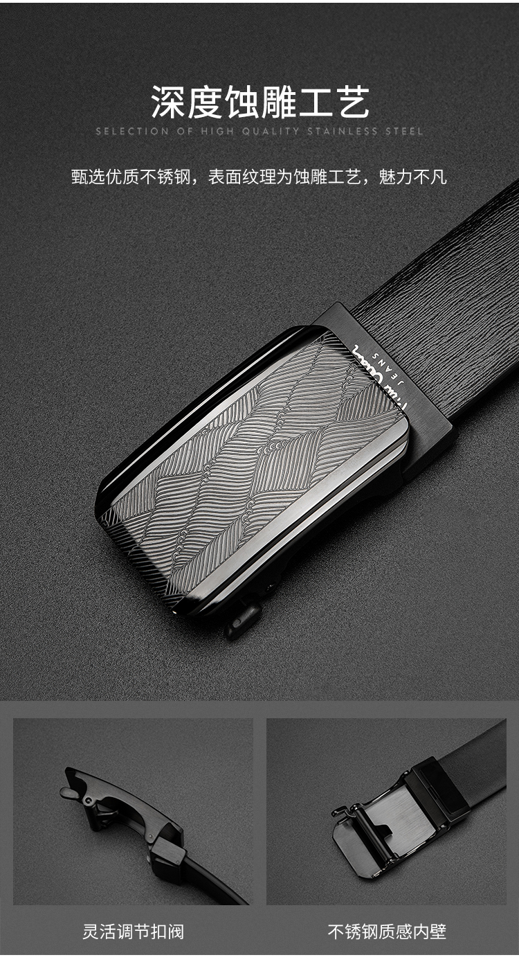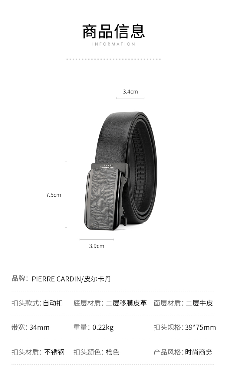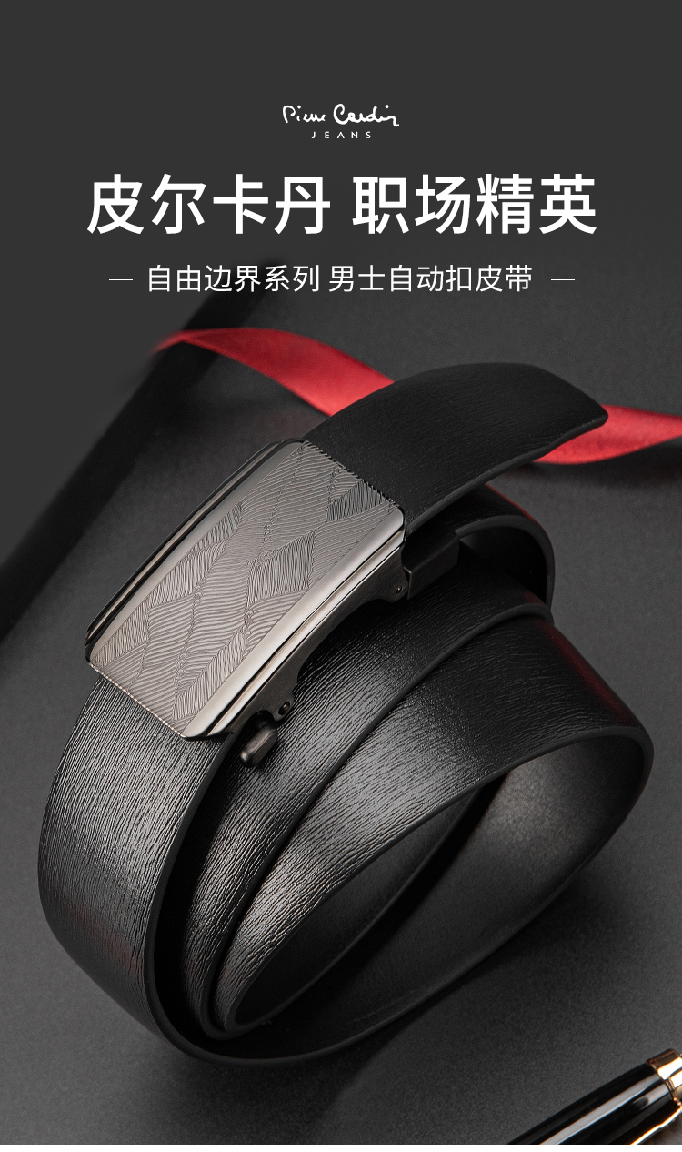皮尔卡丹皮带男真皮腰带不锈钢高级感花纹自动扣格子个性裤腰带商务牛皮裤带