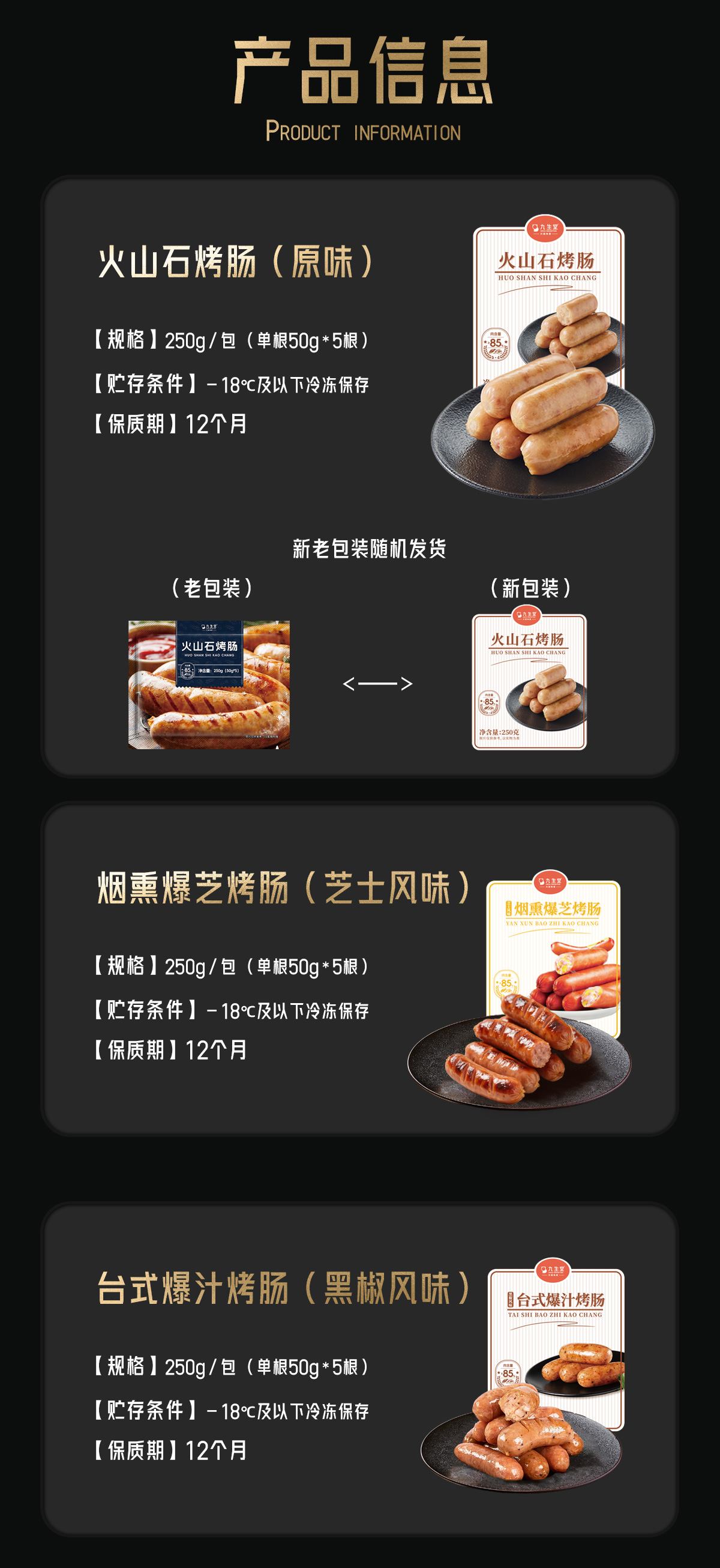 九生堂 烤肠系列(原味/黑胡椒/芝士)250g