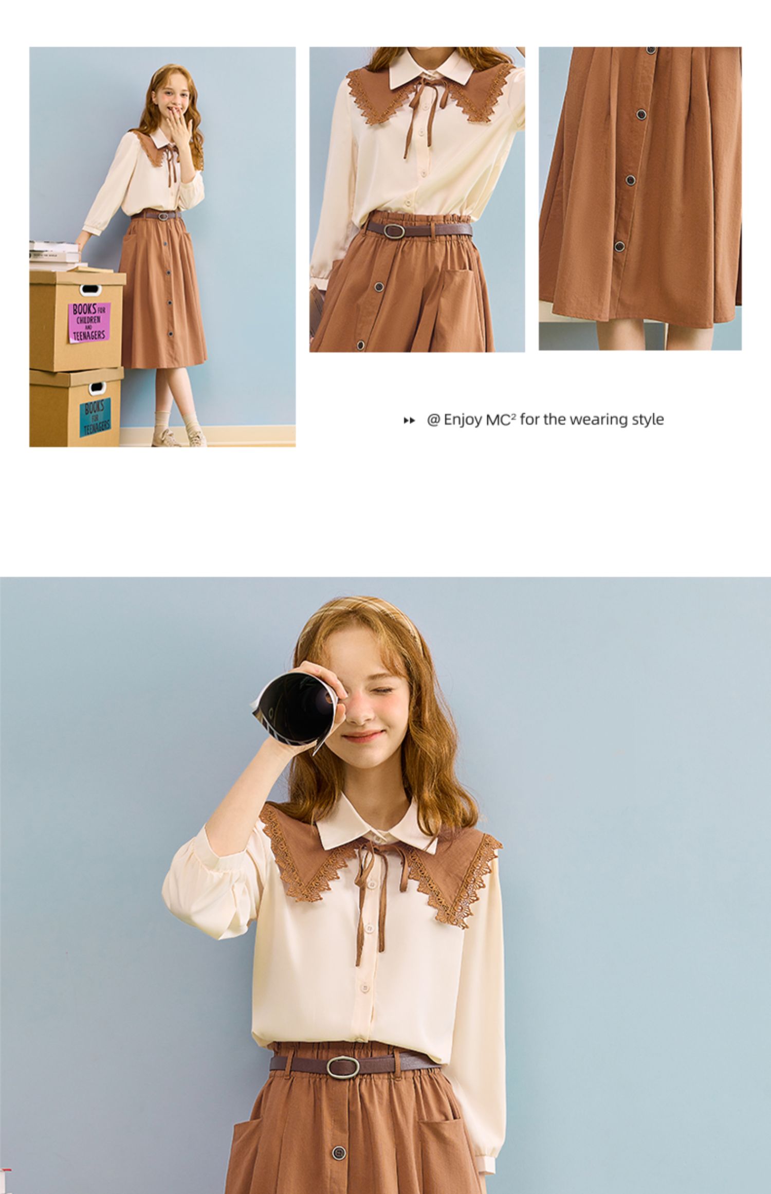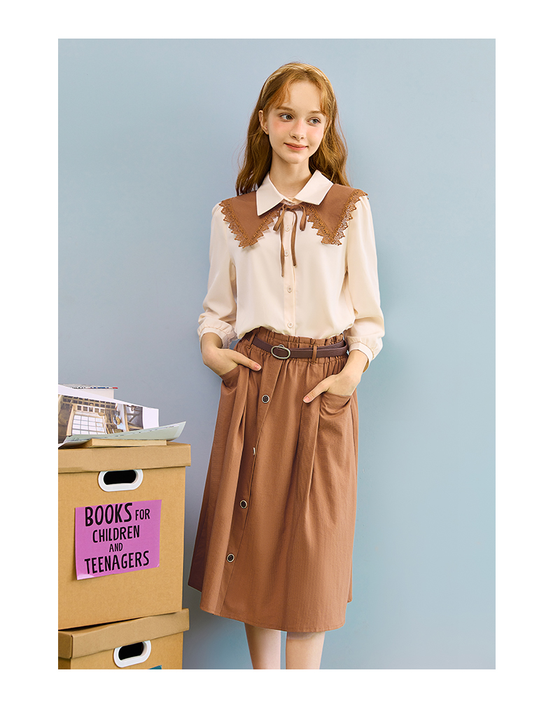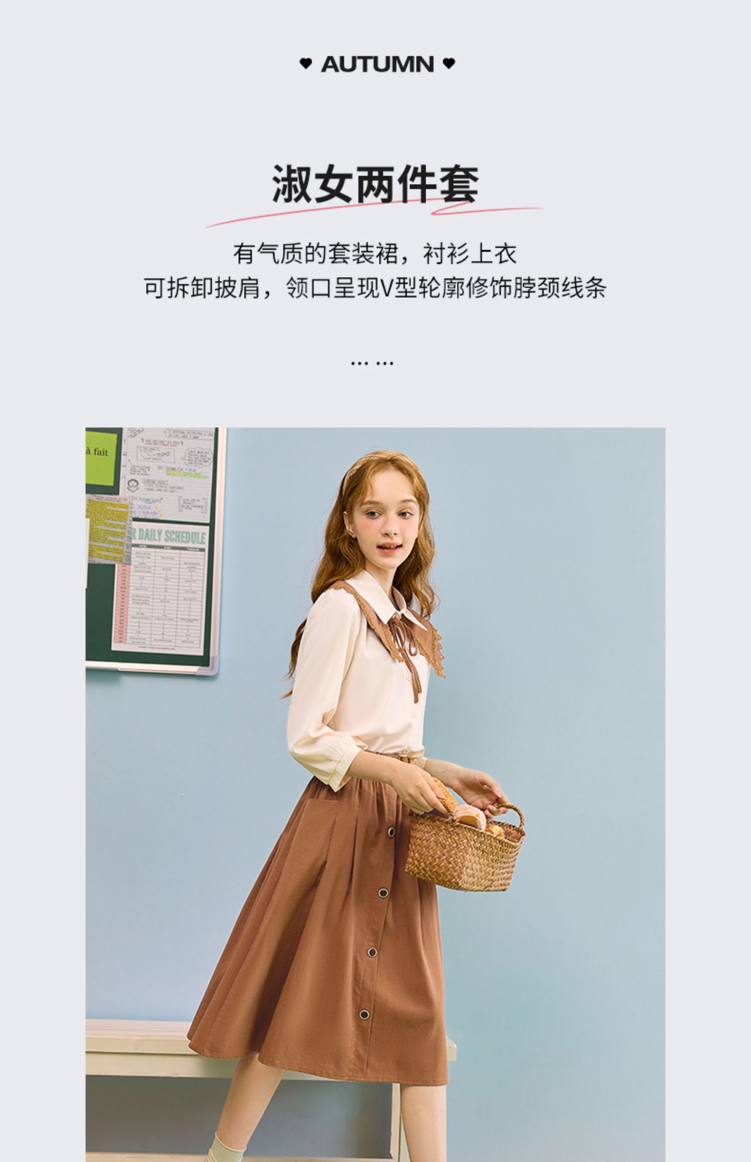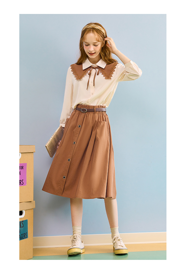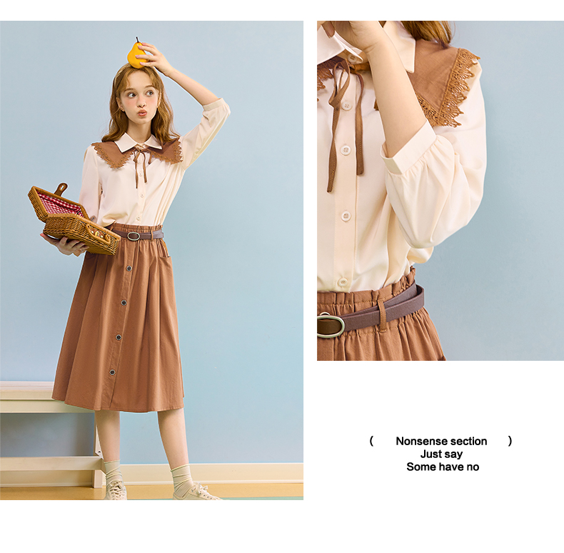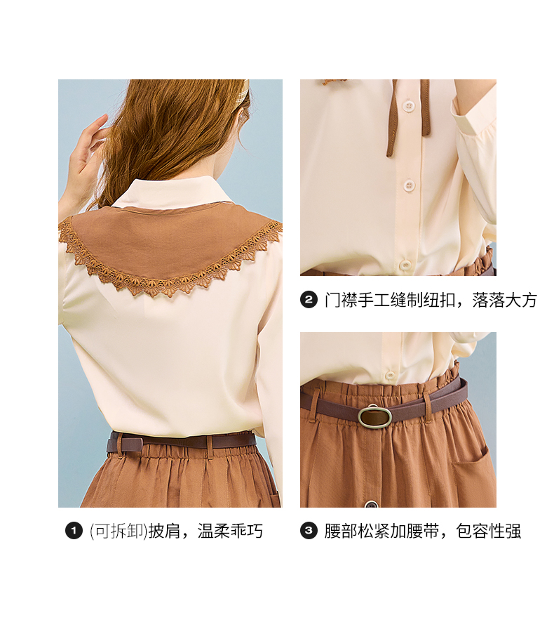 mc2七分袖衬衫半身裙两件套女装2023春季新款可脱卸披肩洋气套装