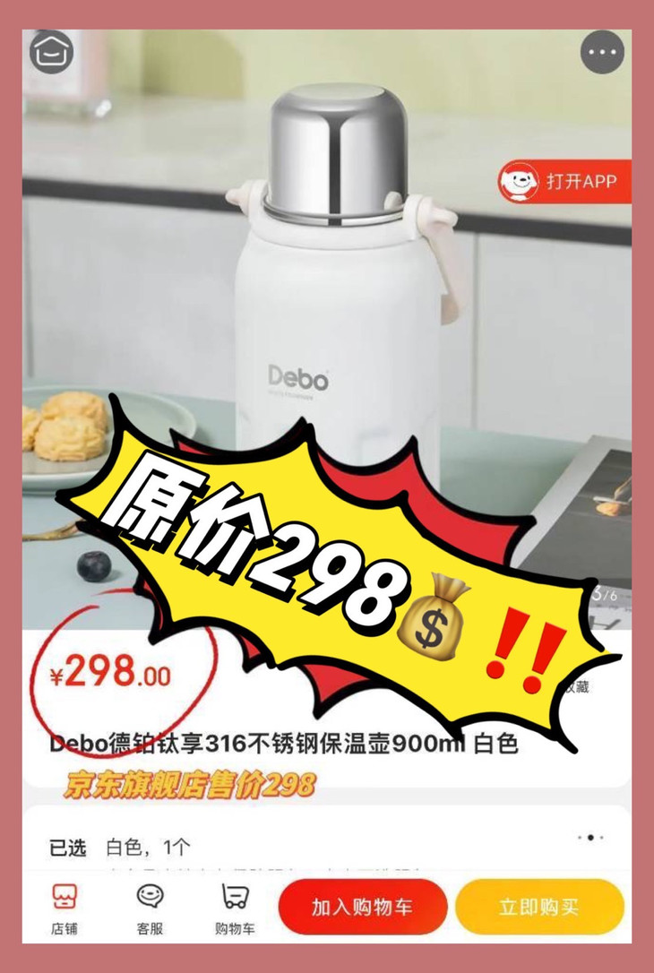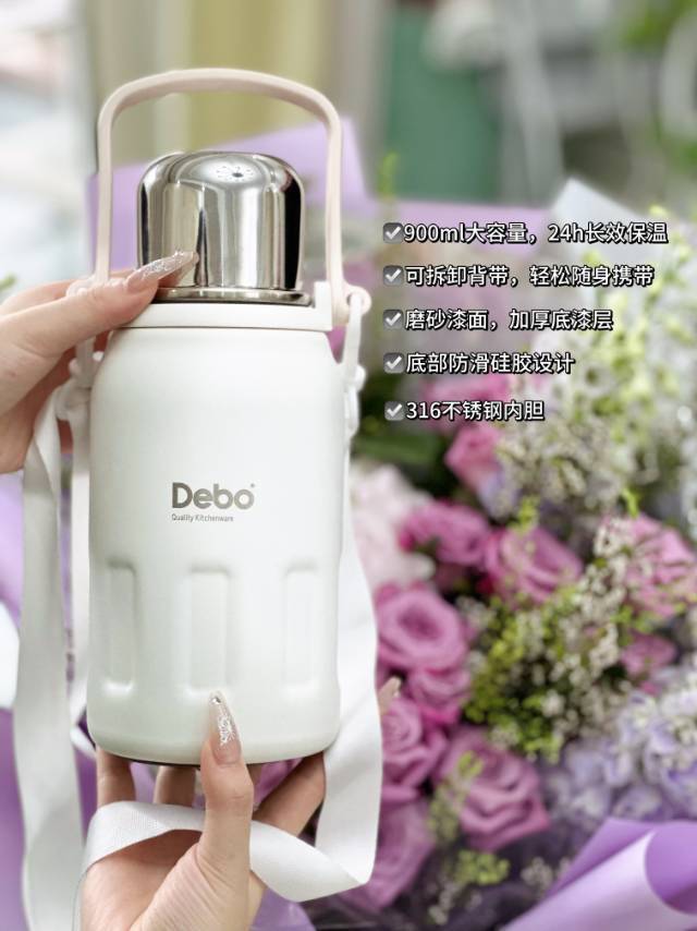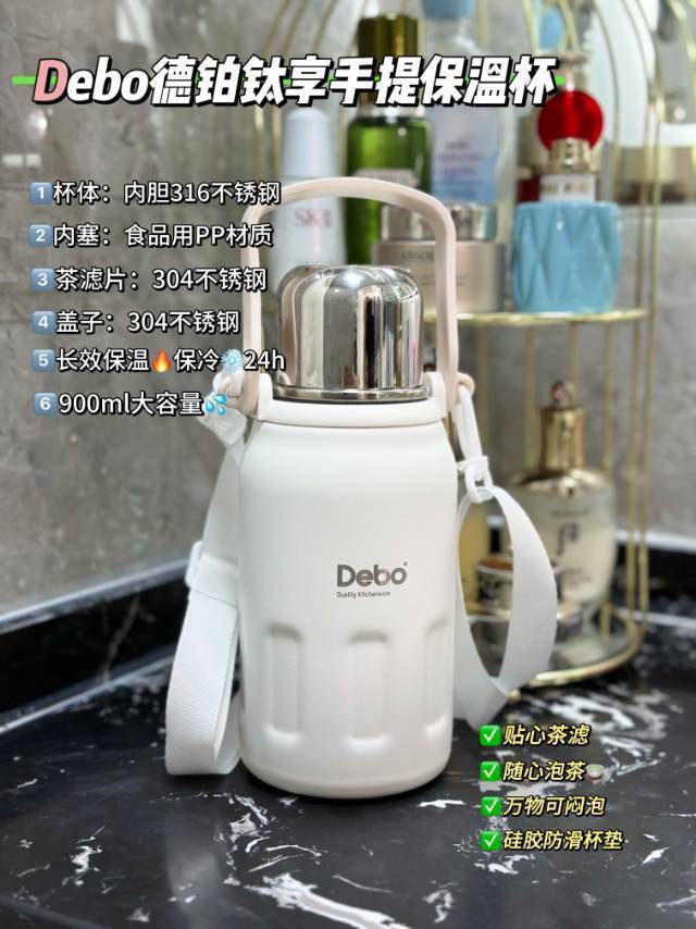 🌸900ml大容量➕316食品级不锈钢内胆✔️【德国🇩🇪Debo德铂钛享手提保温杯】 官旗卖¥200+,团购69.9💰带走