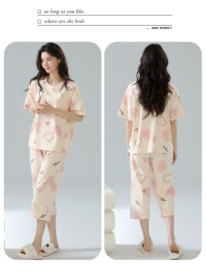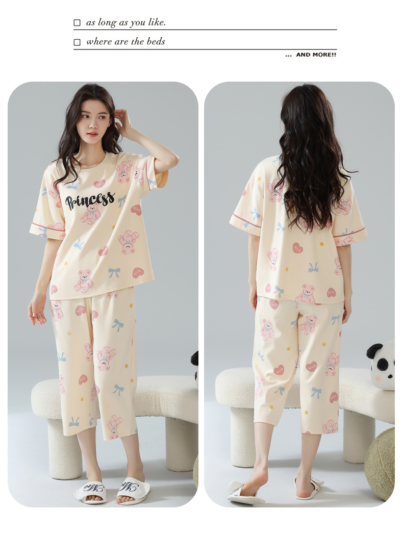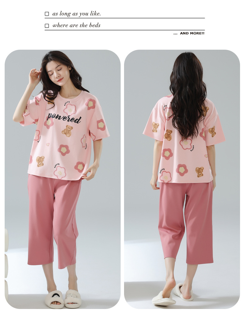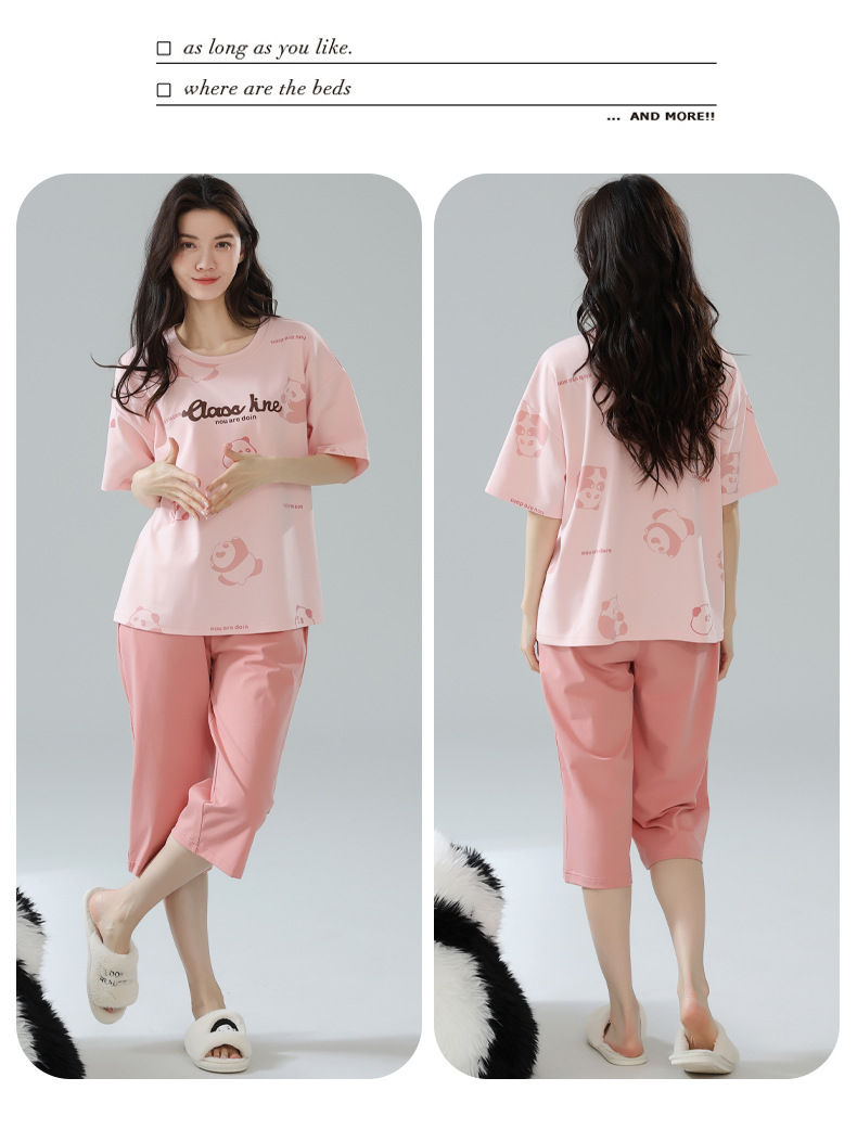 【免穿内衣防凸点】夏季新品纯棉带胸垫睡衣 可外穿休闲家居服短袖短裤两件套
