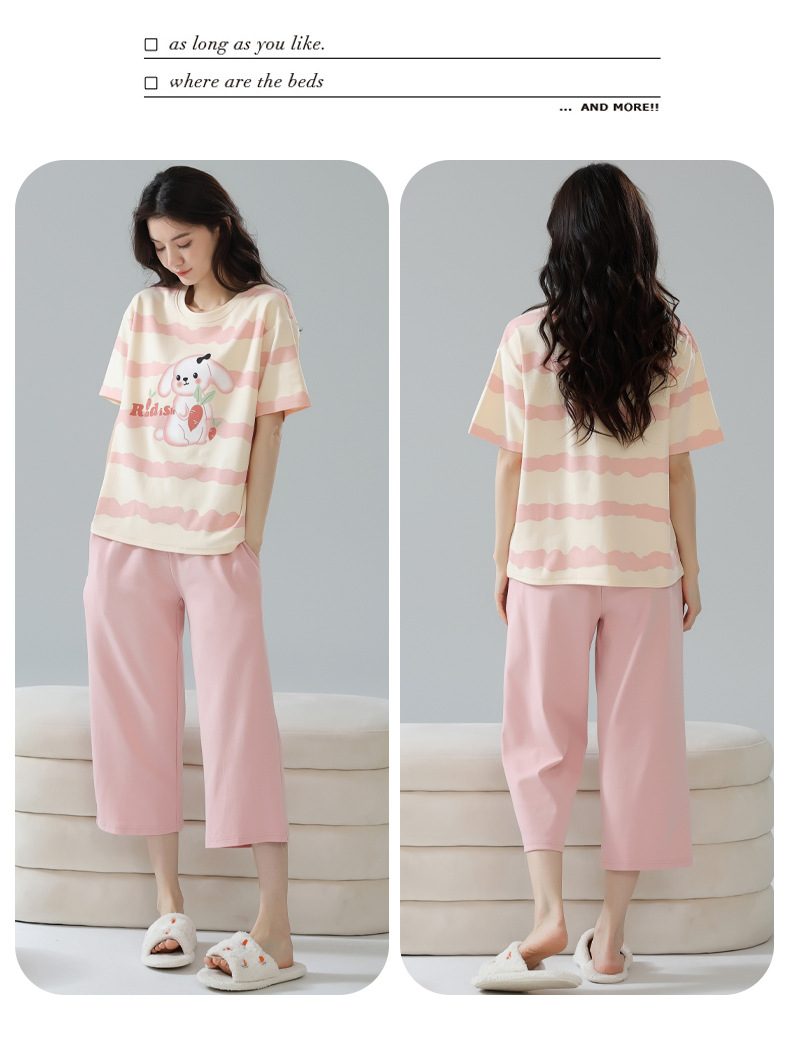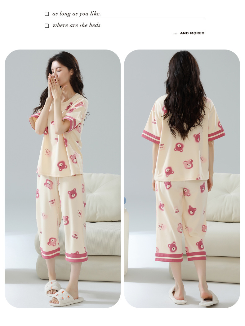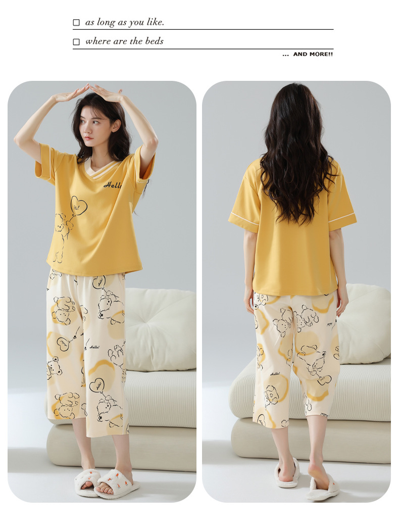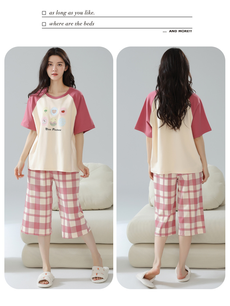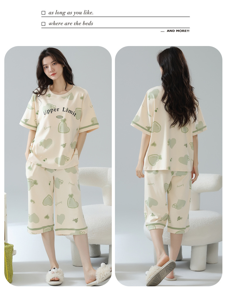 【免穿内衣防凸点】夏季新品纯棉带胸垫睡衣 可外穿休闲家居服短袖短裤两件套