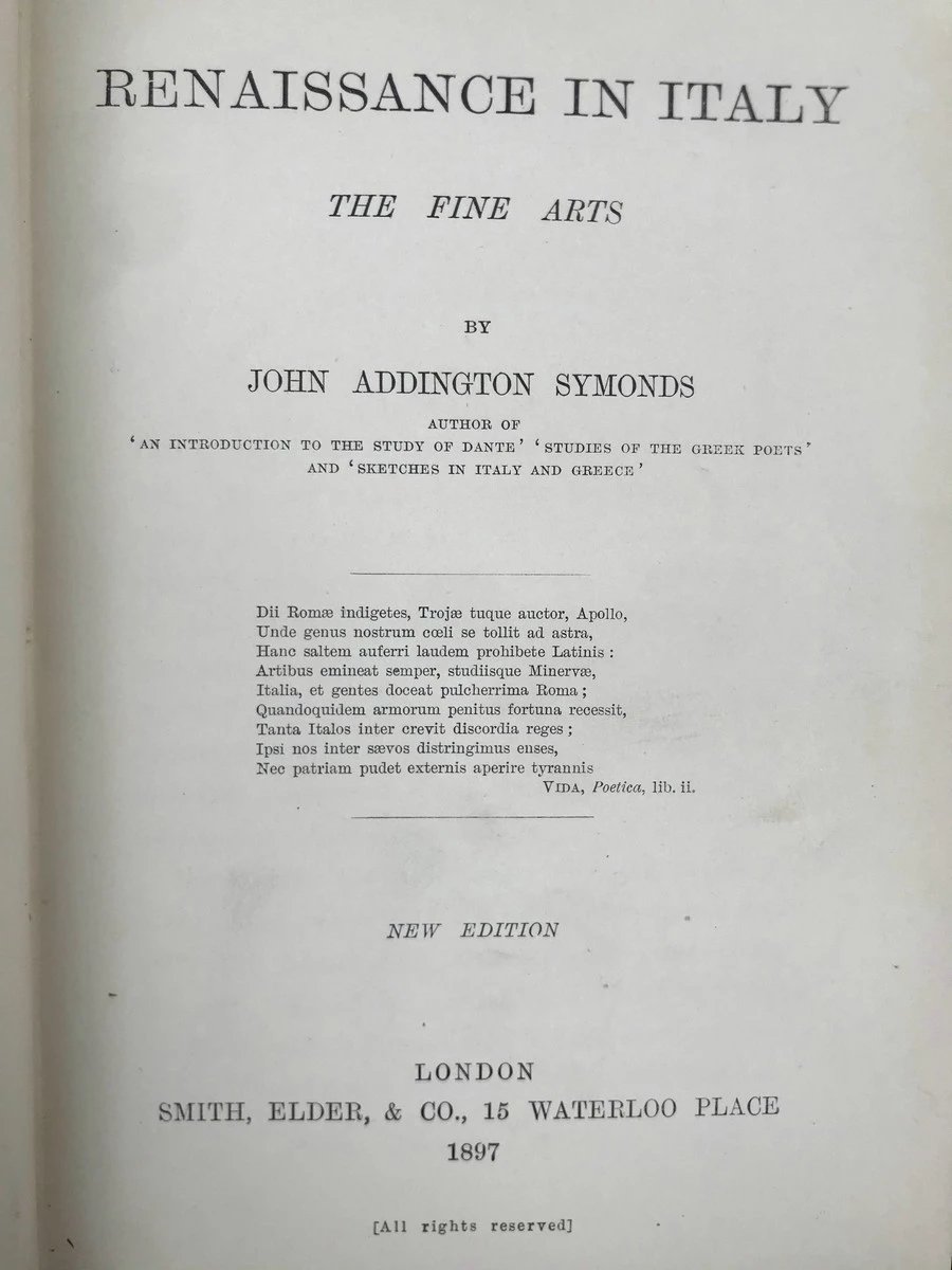1897年 文艺复兴时期的意大利艺术 漆布精装32开
