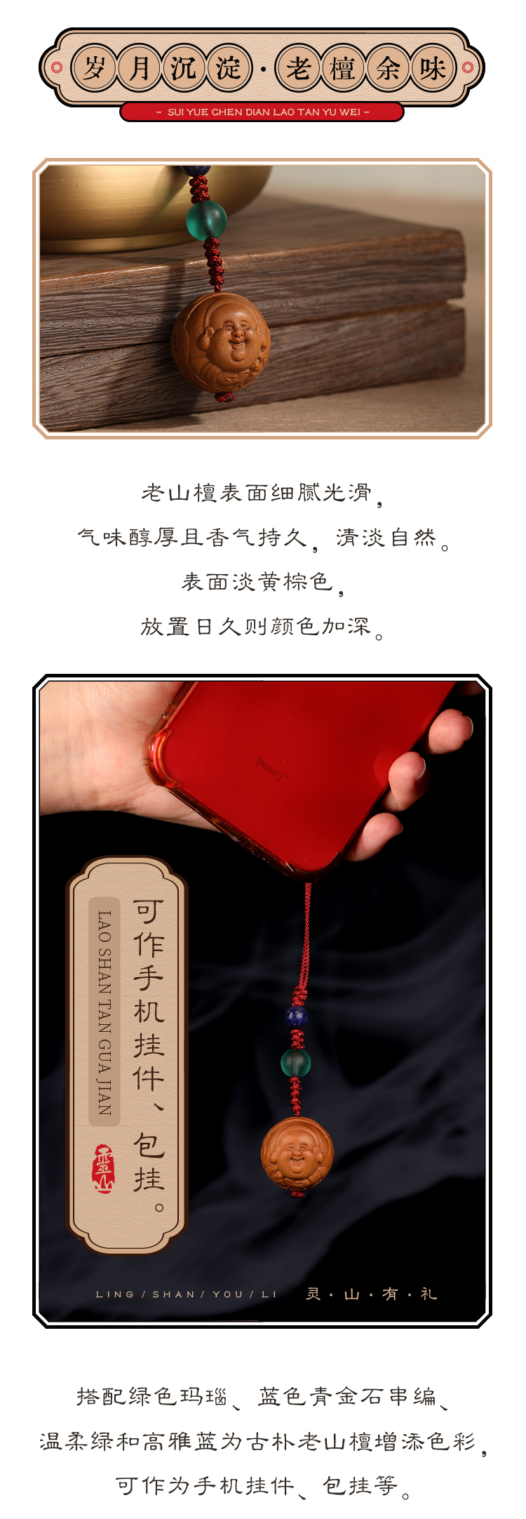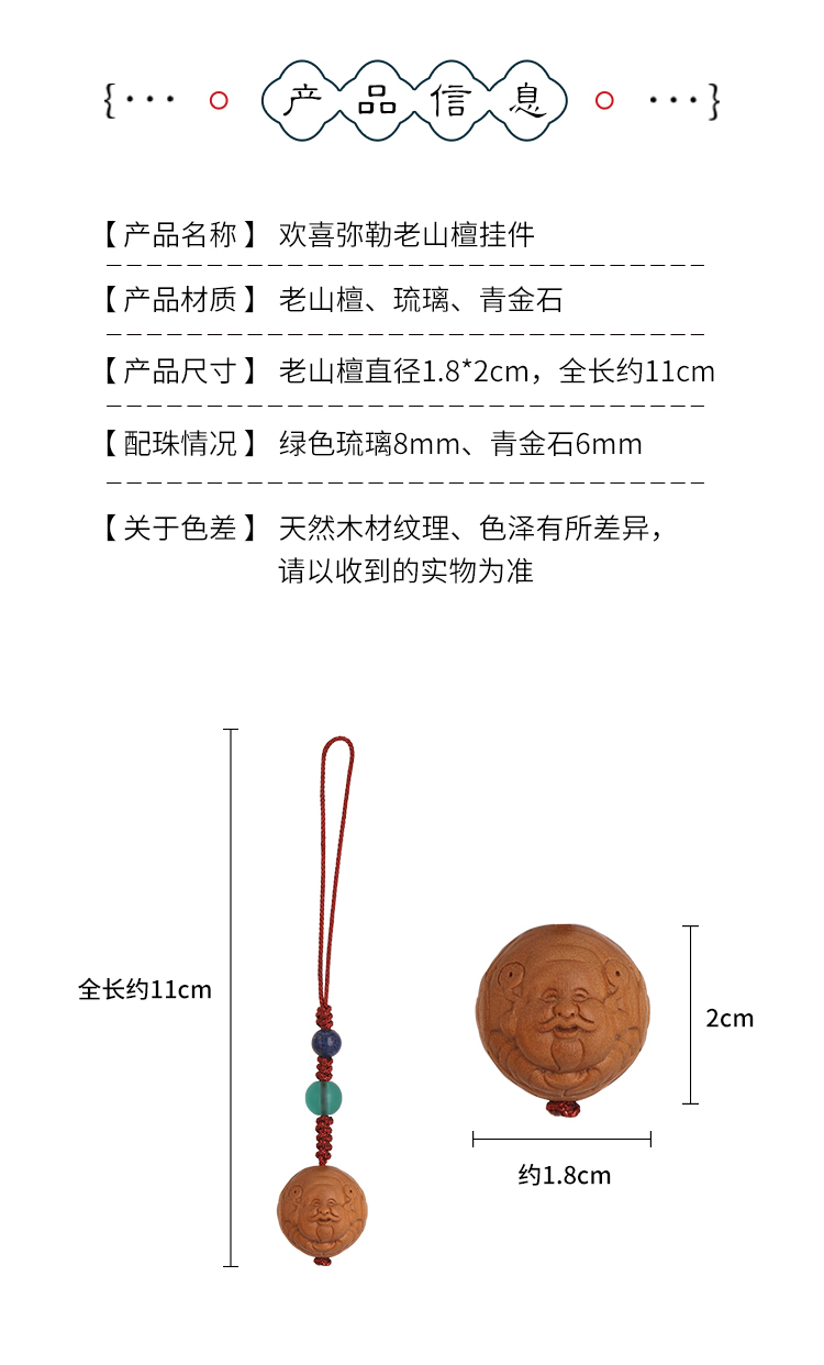 灵山木迦·欢喜弥勒老山檀挂件