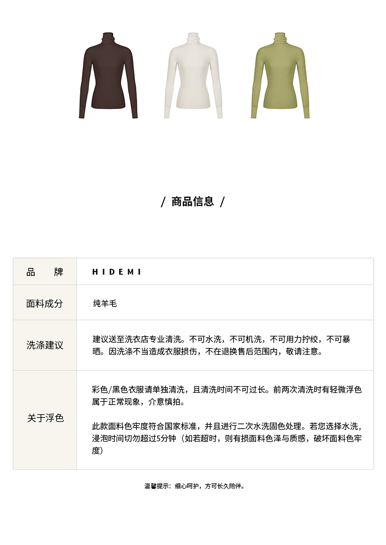 HIDEMI 美利奴超细羊毛无缝一体式云朵高领打底上衣
