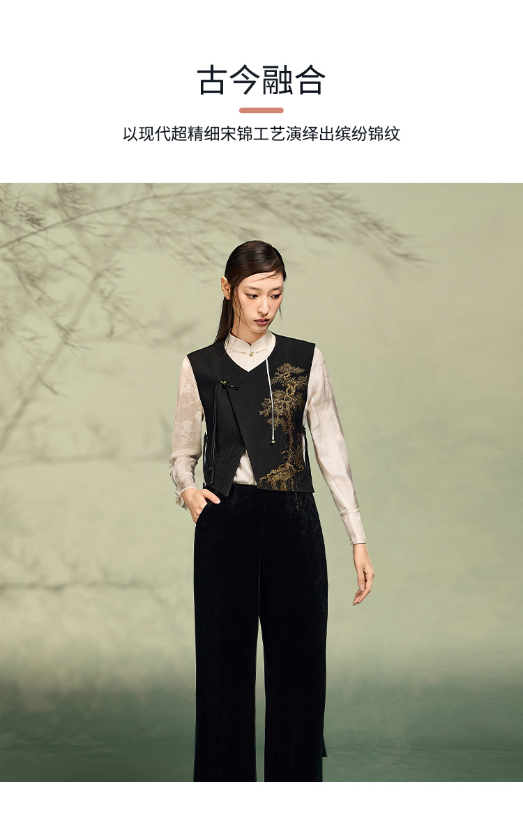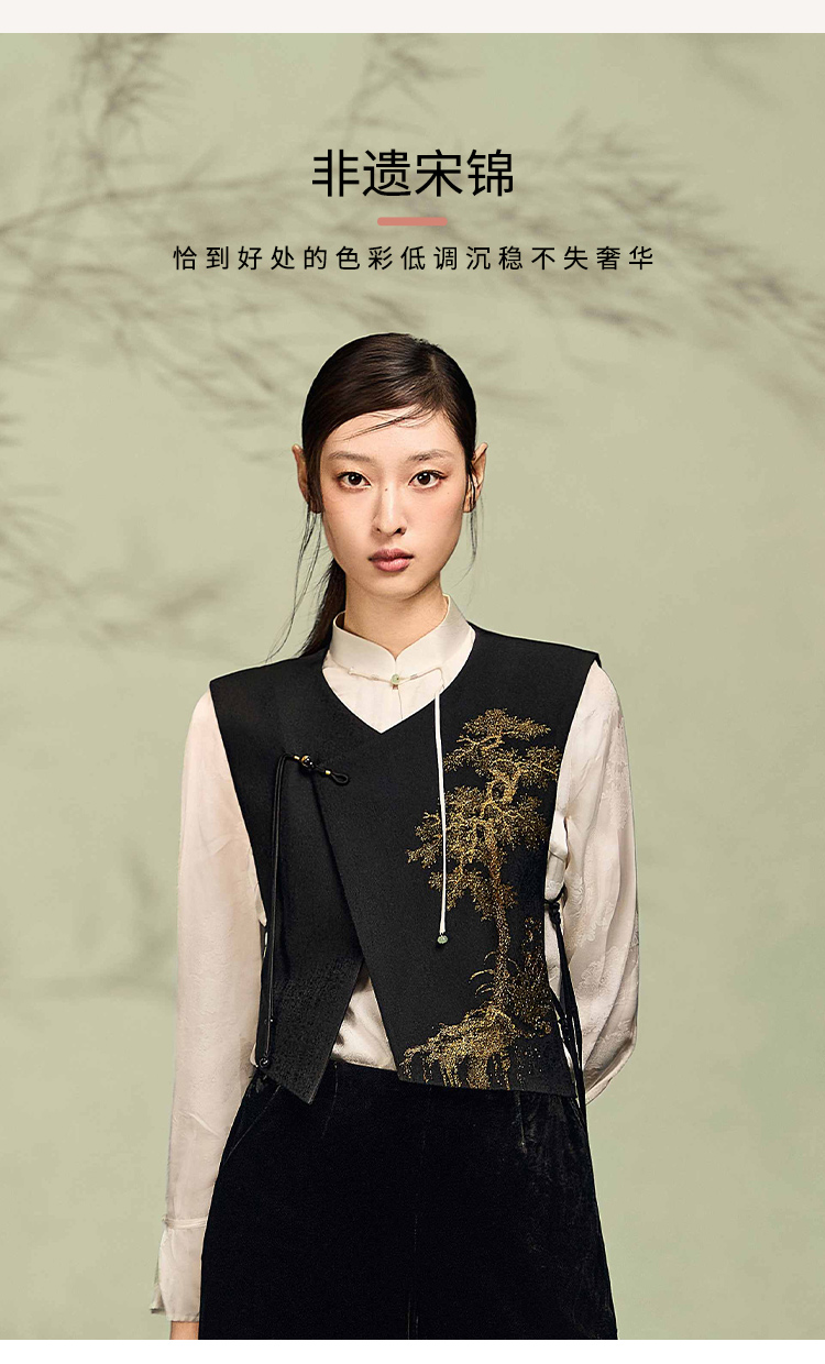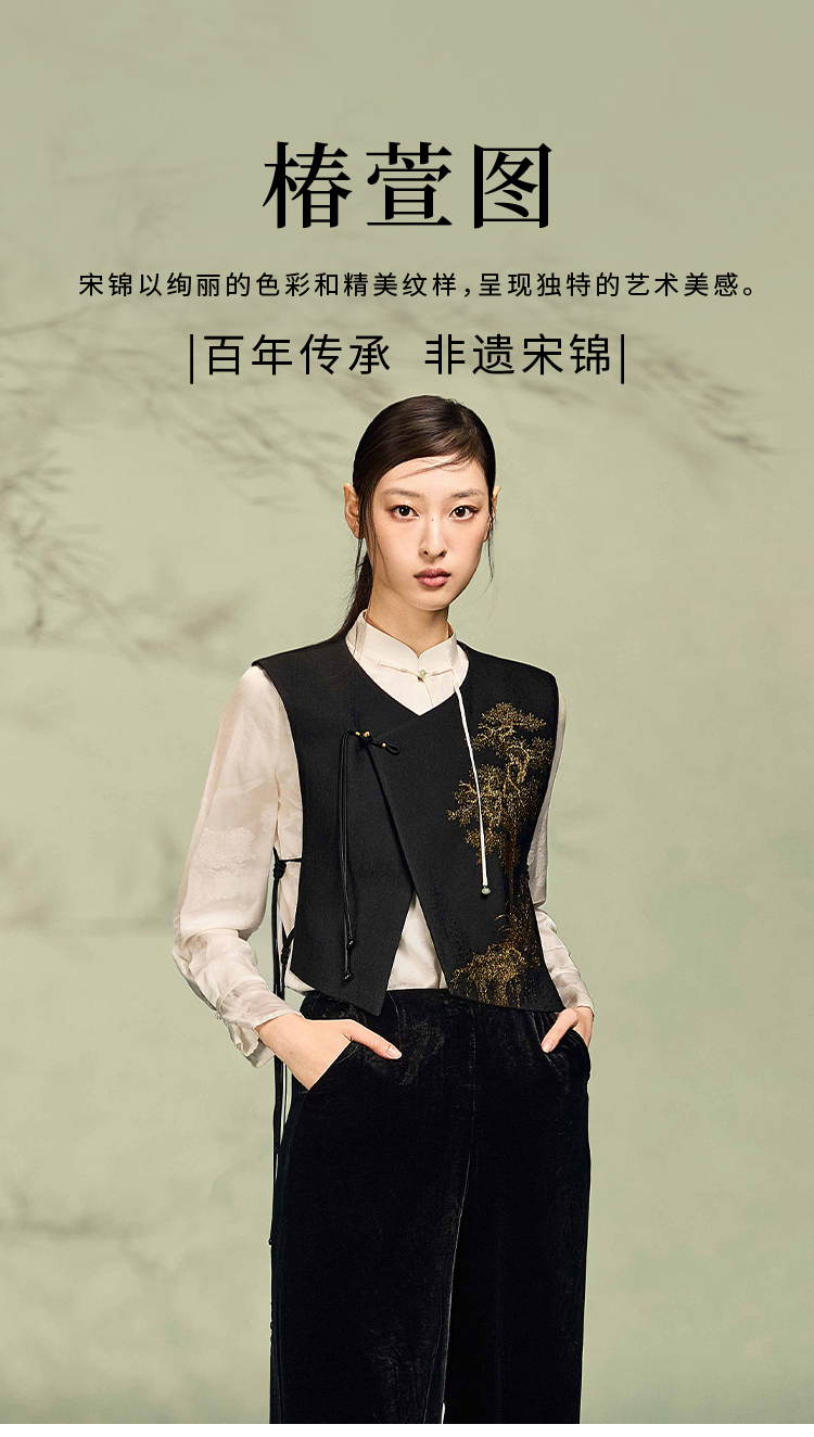 上久楷宋锦新中式轻奢女式马甲 椿萱图CY1045209002