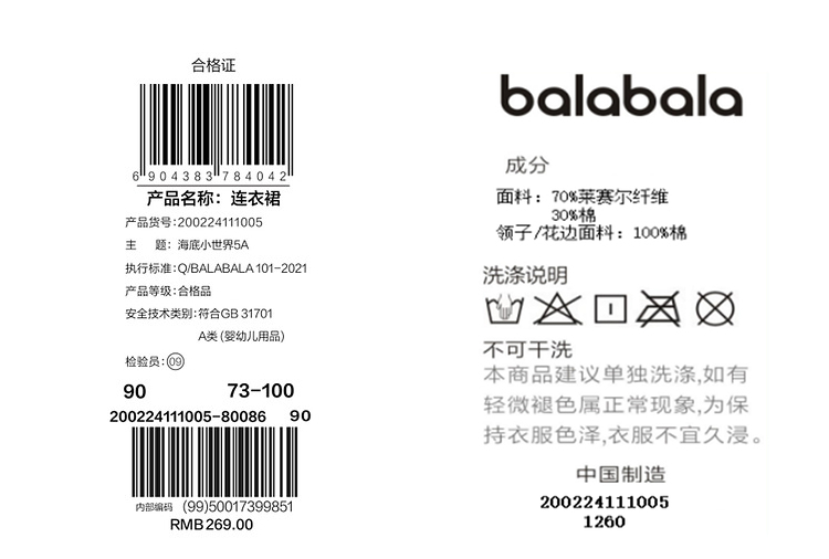巴拉巴拉宝宝连衣裙婴儿裙子儿童公主裙女童夏装甜美气质清爽时尚
