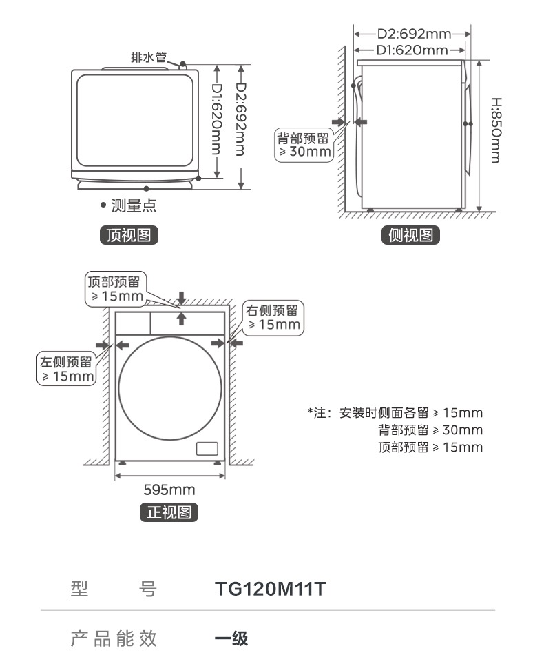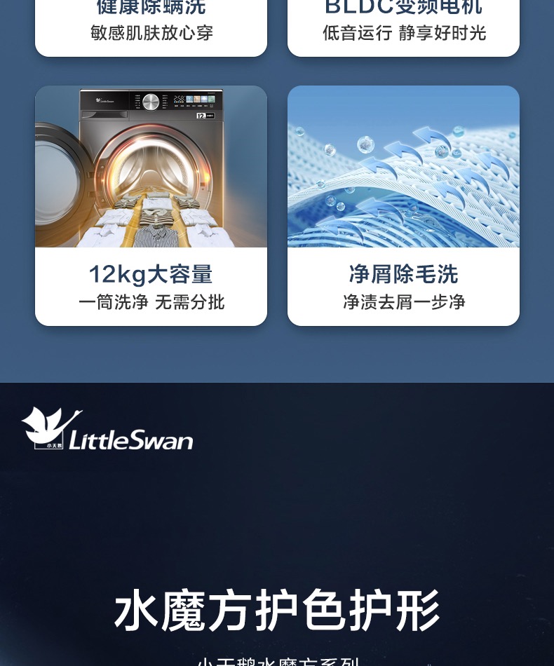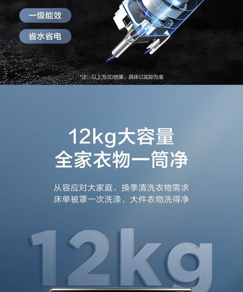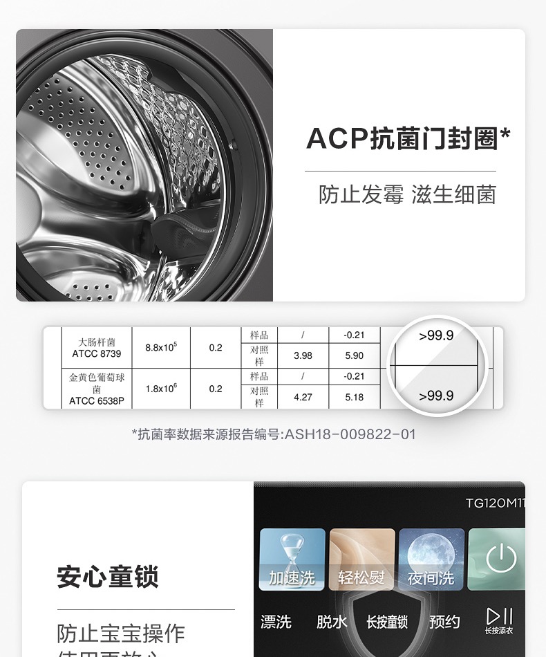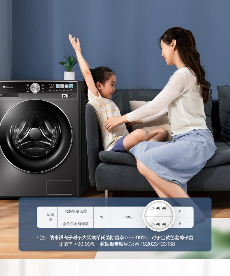 小天鹅(252199)洗衣机 TG120M11T 滚筒洗衣机 金属钛 220V,1Ph 50Hz 转速1200 带银离子