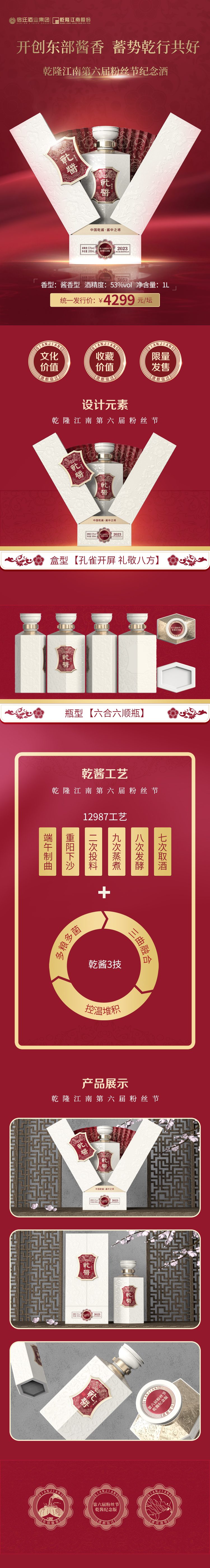 53度乾隆江南 乾酱第六届粉丝节纪念版白酒 酱香型 1L
