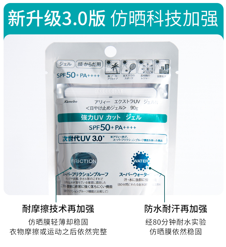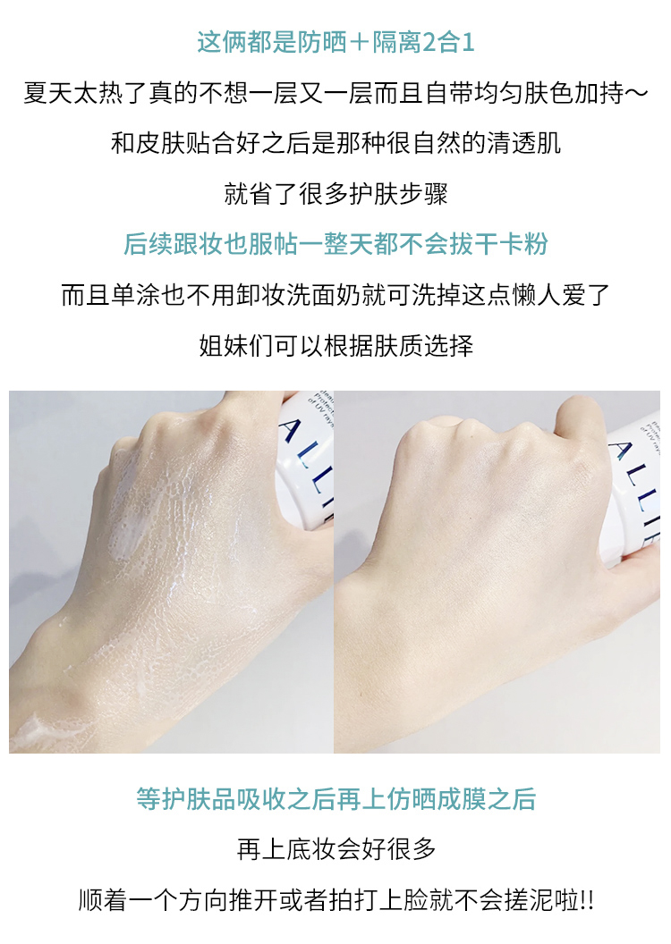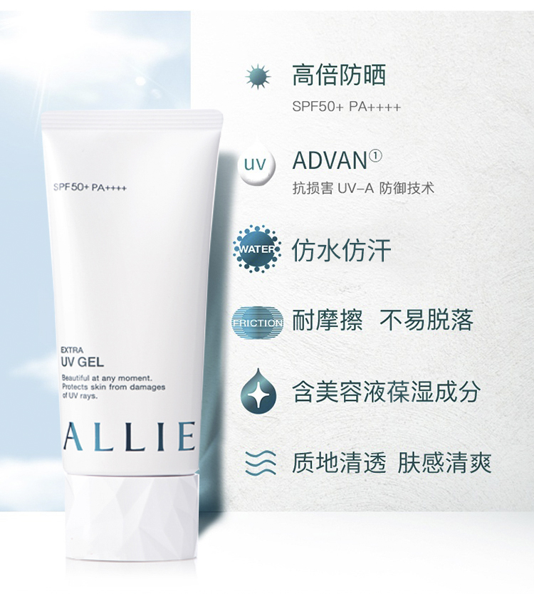 日本allie嘉娜宝防晒霜绿色面部防晒倍护水凝乳隔离防水防汗SPF50