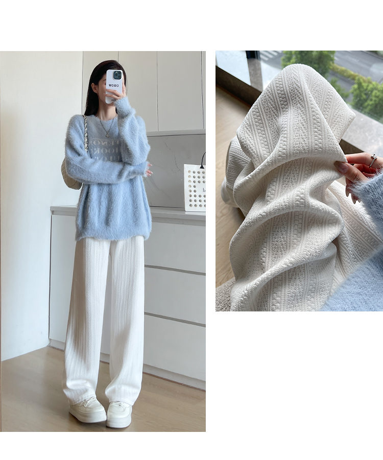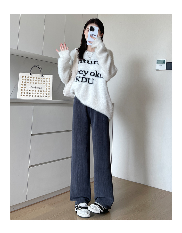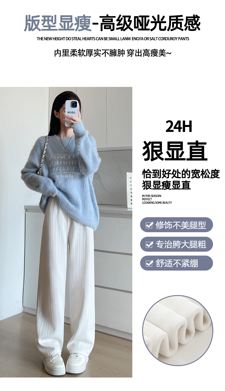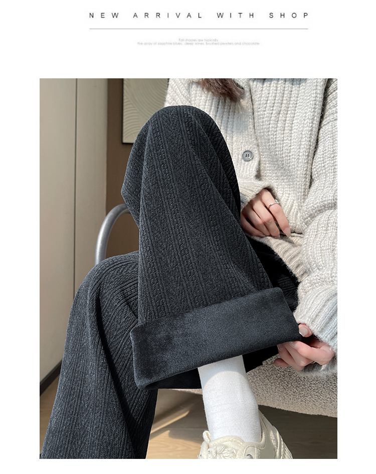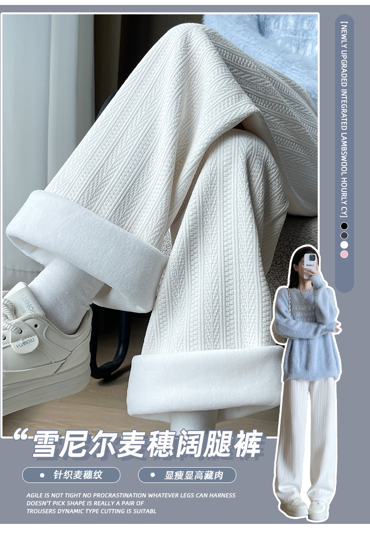 【YW】无忧购雪尼尔麦穗加绒阔腿裤秋冬显瘦高腰休闲直筒休闲裤Z224(截单后3-5天发货)