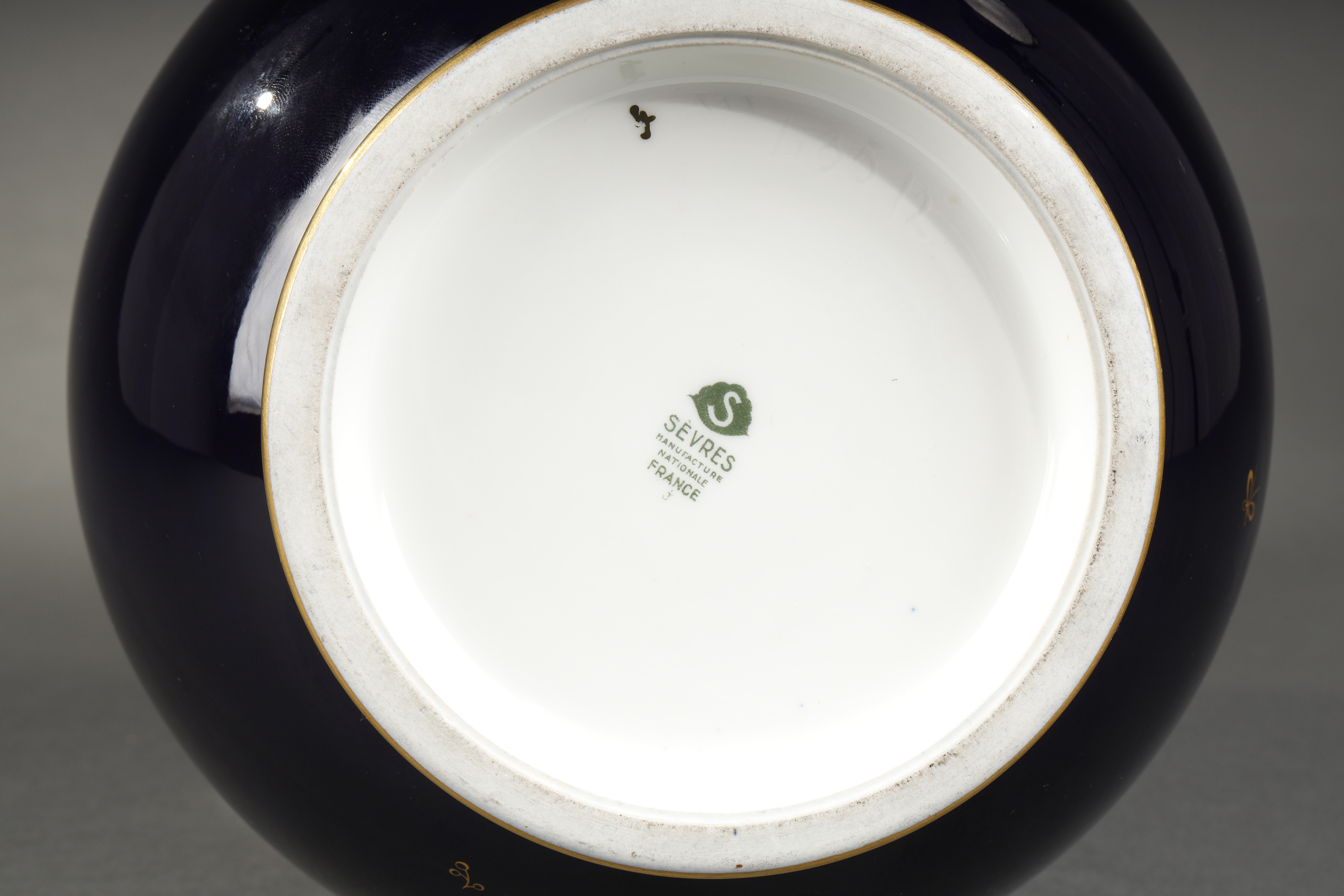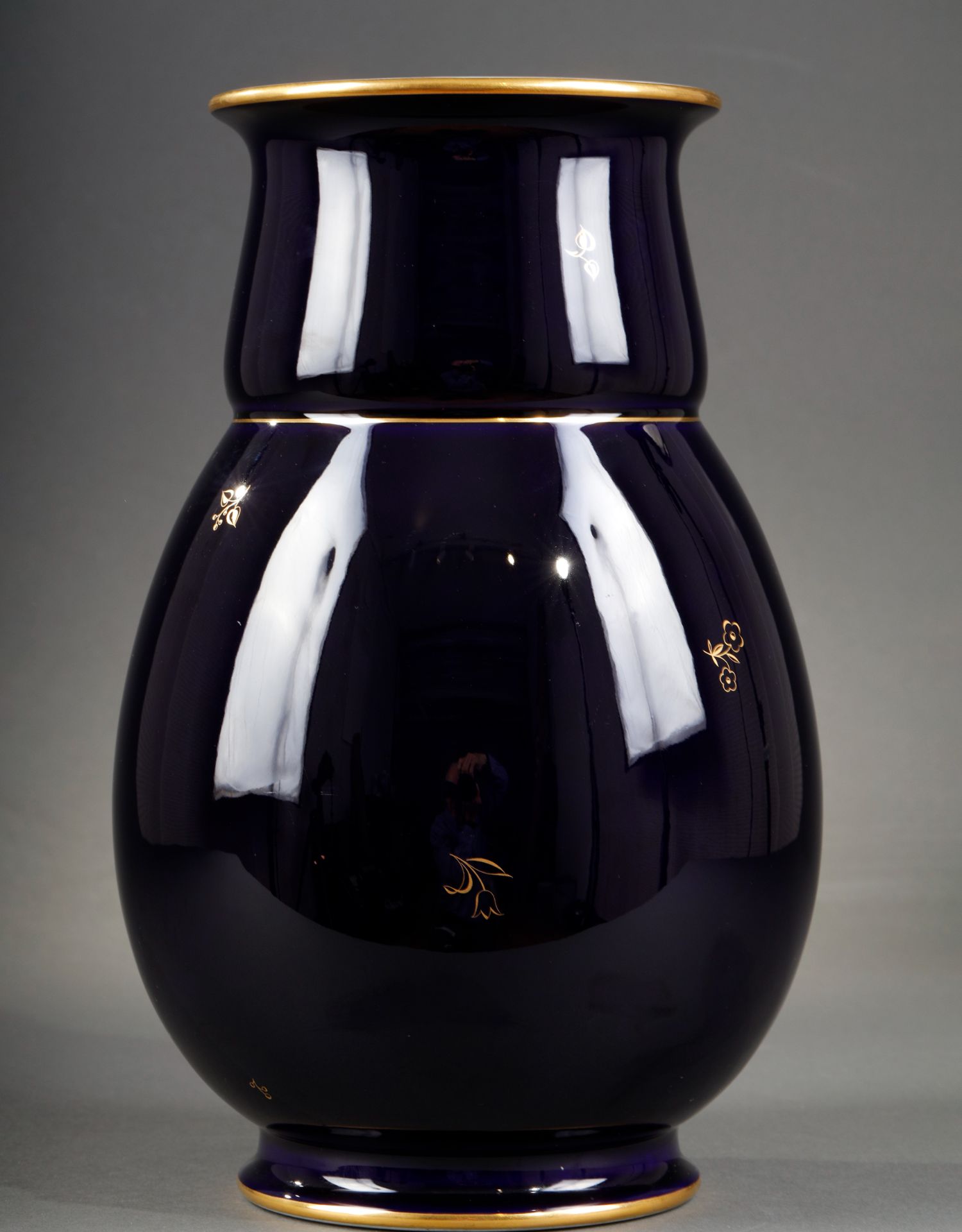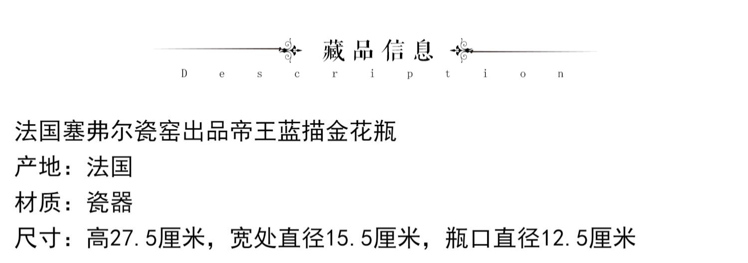 独角鹿西洋古董瓷器法国塞弗尔瓷窑出品帝王蓝描金花瓶