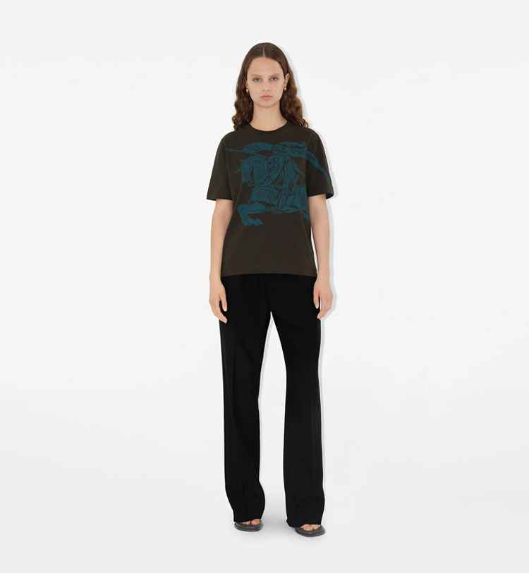 BURBERRY 巴宝莉 女士马术骑士徽标印花棉质圆领短袖T恤 深蓝色 8096377 C1170