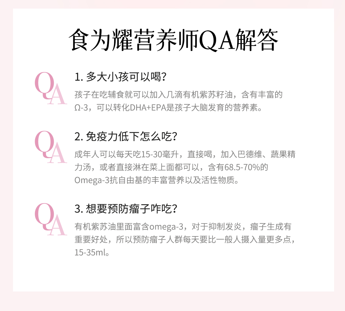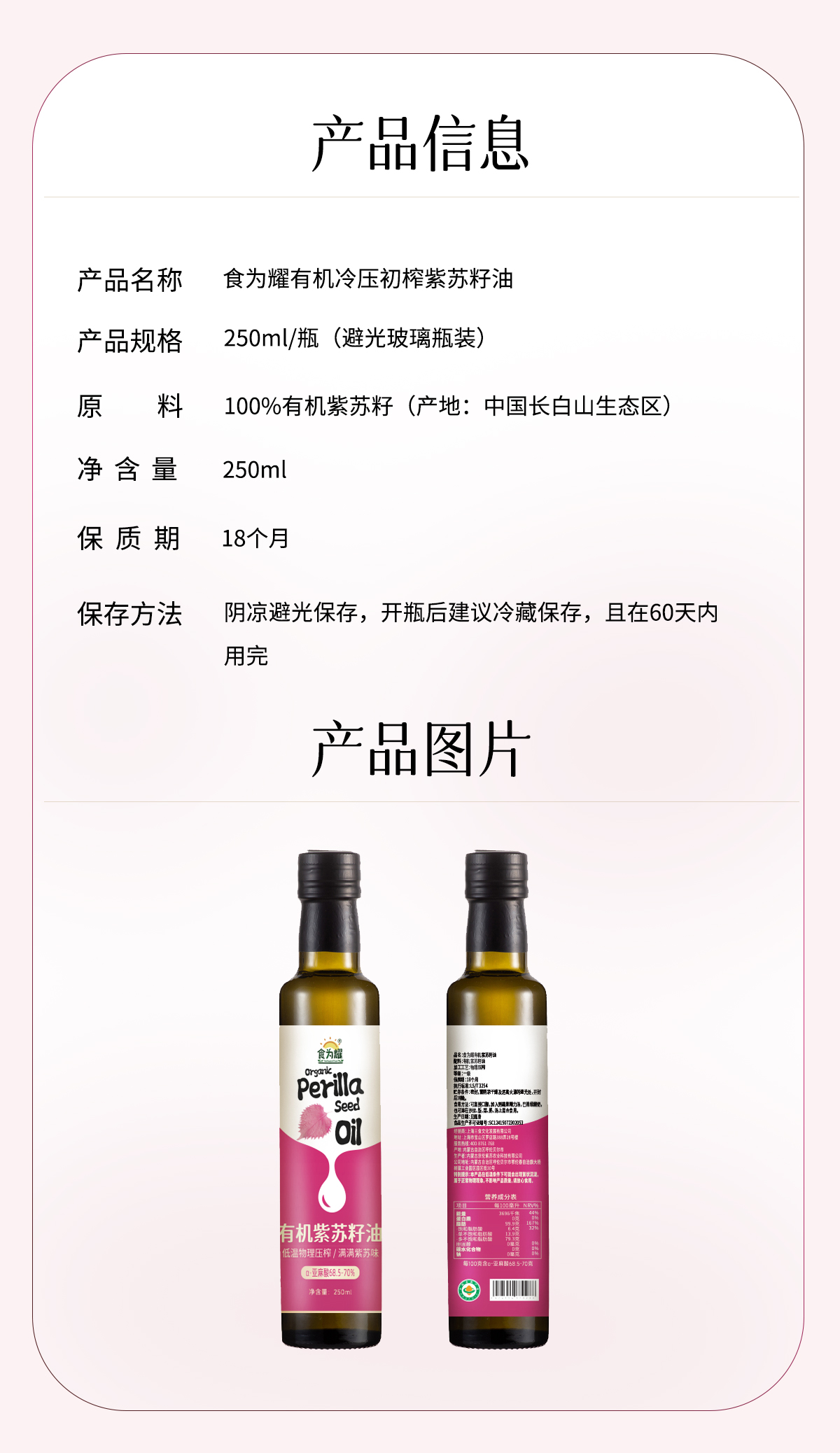 食为耀有机紫苏油250ml欧米伽3百分之70陆地鱼油