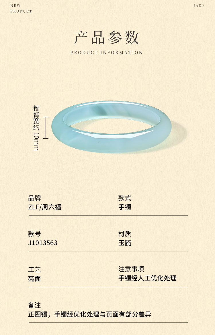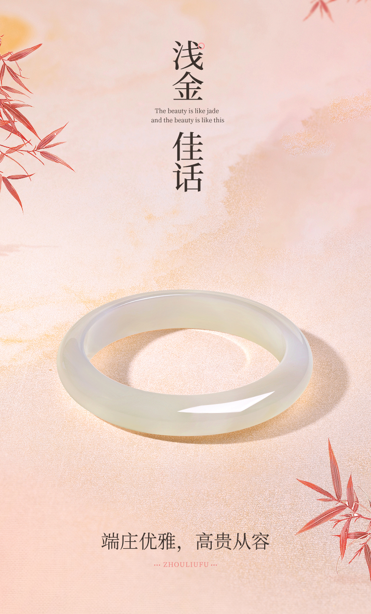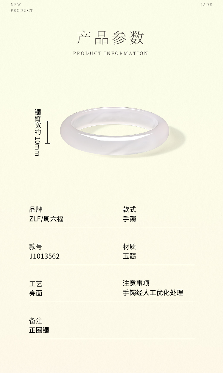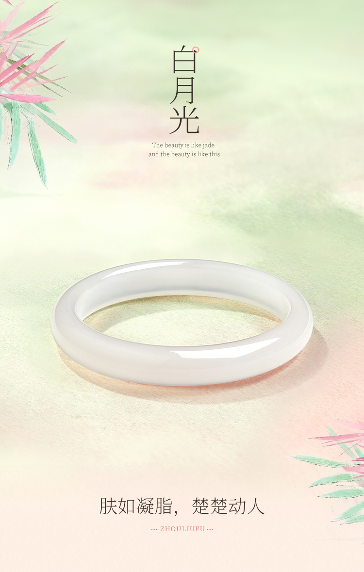 周六福白月光香槟白玉髓手镯宽条白透新中式国风送女友礼物