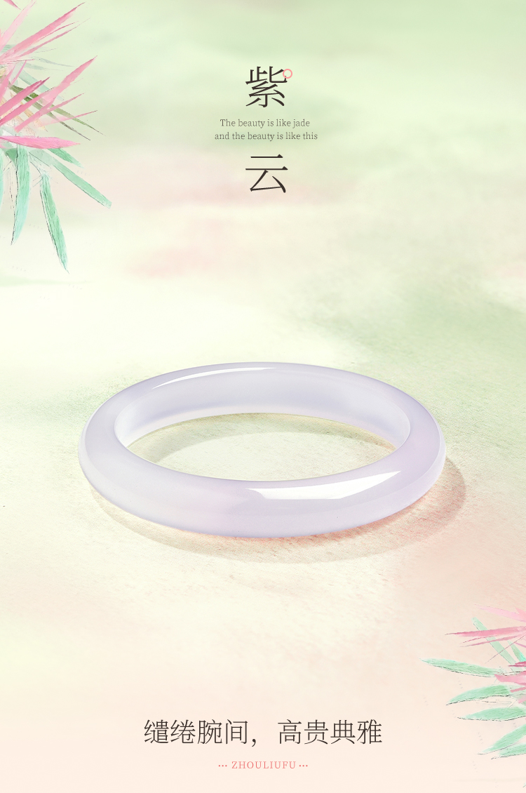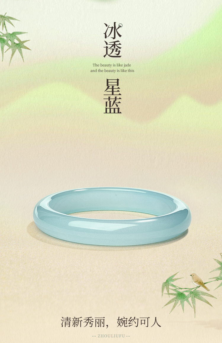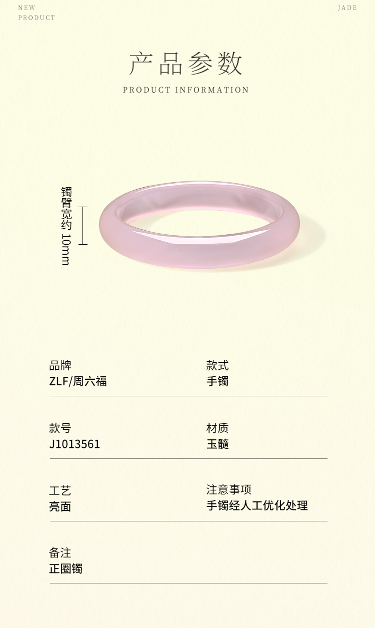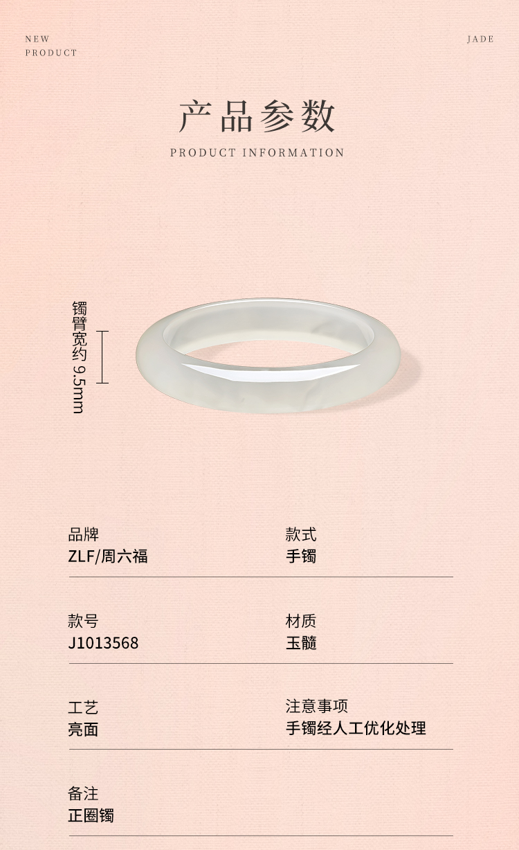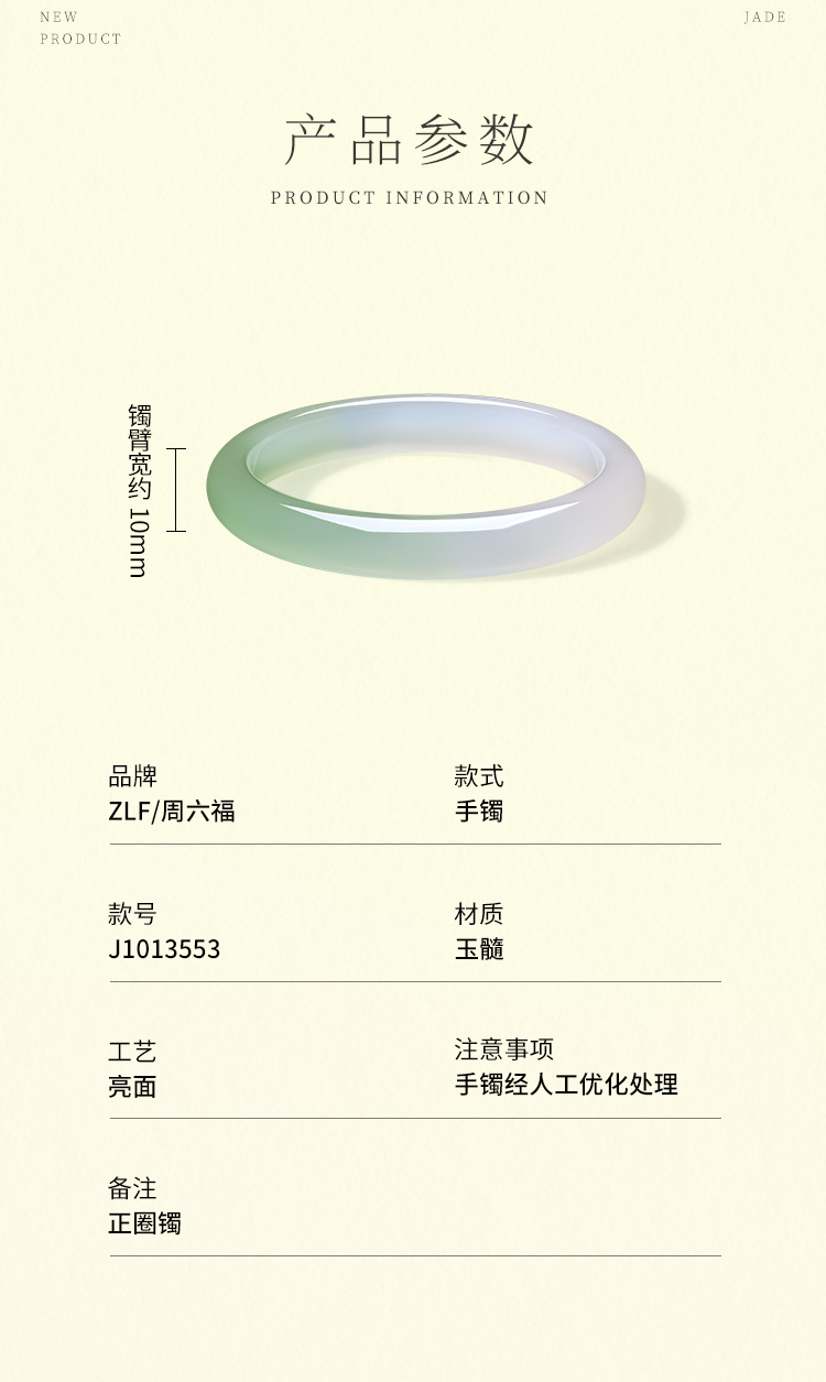 周六福白月光香槟白玉髓手镯宽条白透新中式国风送女友礼物